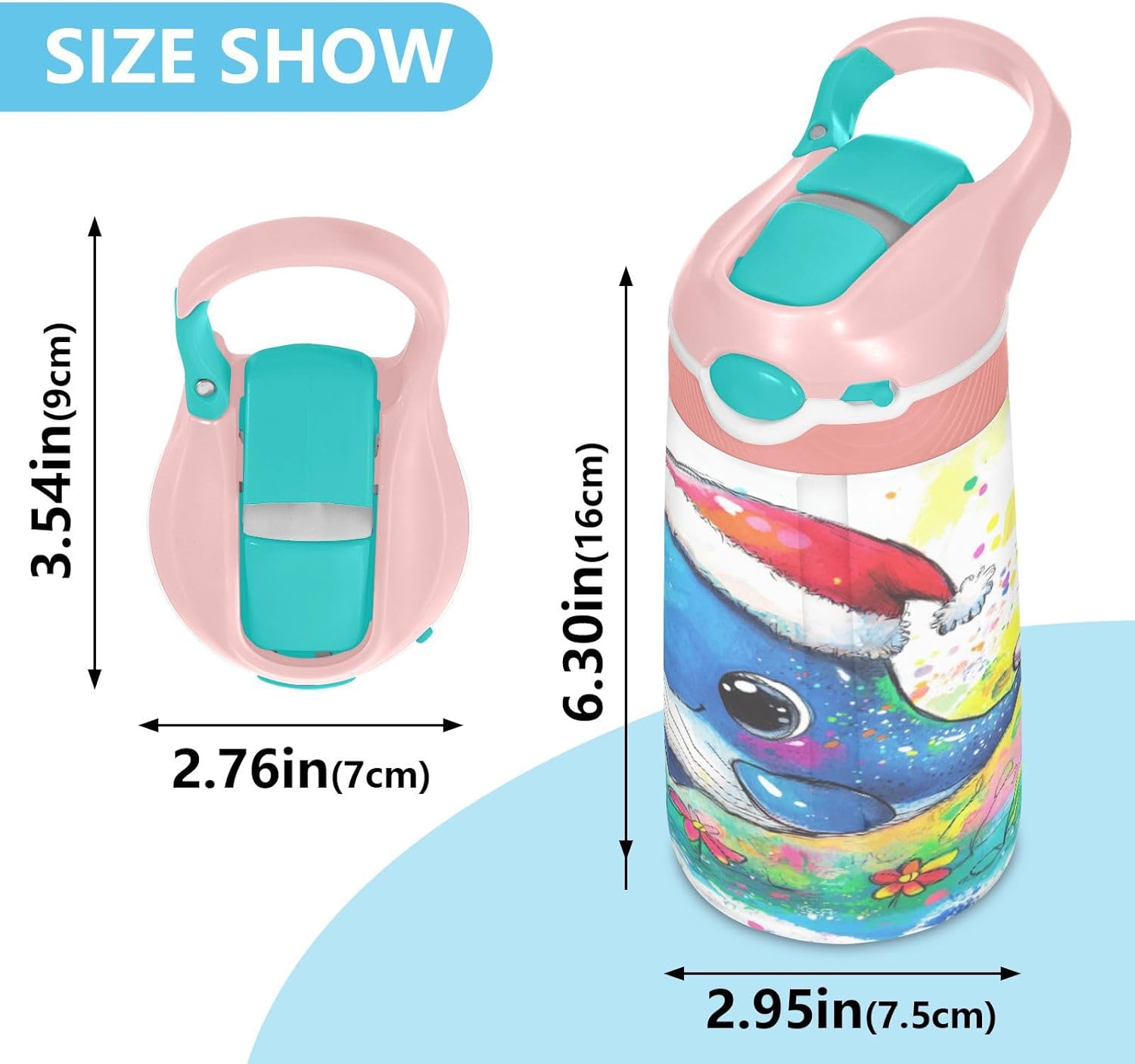 Materiale: questa borraccia sportiva da 16 x 7,5 cm con capacità di 480 ml è realizzata in tritan e silicone alimentare. Perfetto per le giornate scolastiche o per lo sport, è privo di elementi nocivi, affrontando le preoccupazioni dei genitori sui materiali non sicuri. Non adatto a bambini di età inferiore ai 3 anni! Design portatile: l'ampio manico è facile da impugnare per i bambini e il gancio del coperchio consente di attaccare la bottiglia d'acqua ai bambini. Niente più bottiglie perse durante le gite sul campo o le attività dopo la scuola. Funzionamento con una sola mano: il becco d'anatra si adatta alla bocca dei bambini, con una copertura antipolvere. L'interruttore a pulsante della borraccia per bambini è semplice da usare con una sola mano, in modo che i bambini possano bere mentre tengono una palla o un notebook. Blocco di sicurezza: il blocco del pulsante impedisce lo scoppio accidentale del becco d'anatra. Previene le perdite quando viene gettato nello zaino, mantenendo asciutti snack e compiti. Facile da pulire: tutte le parti della borraccia sportiva sono rimovibili per una pulizia accurata senza sporcare. Usa un detergente neutro e acqua calda: semplice per i genitori mantenere la pulizia per l'uso quotidiano.