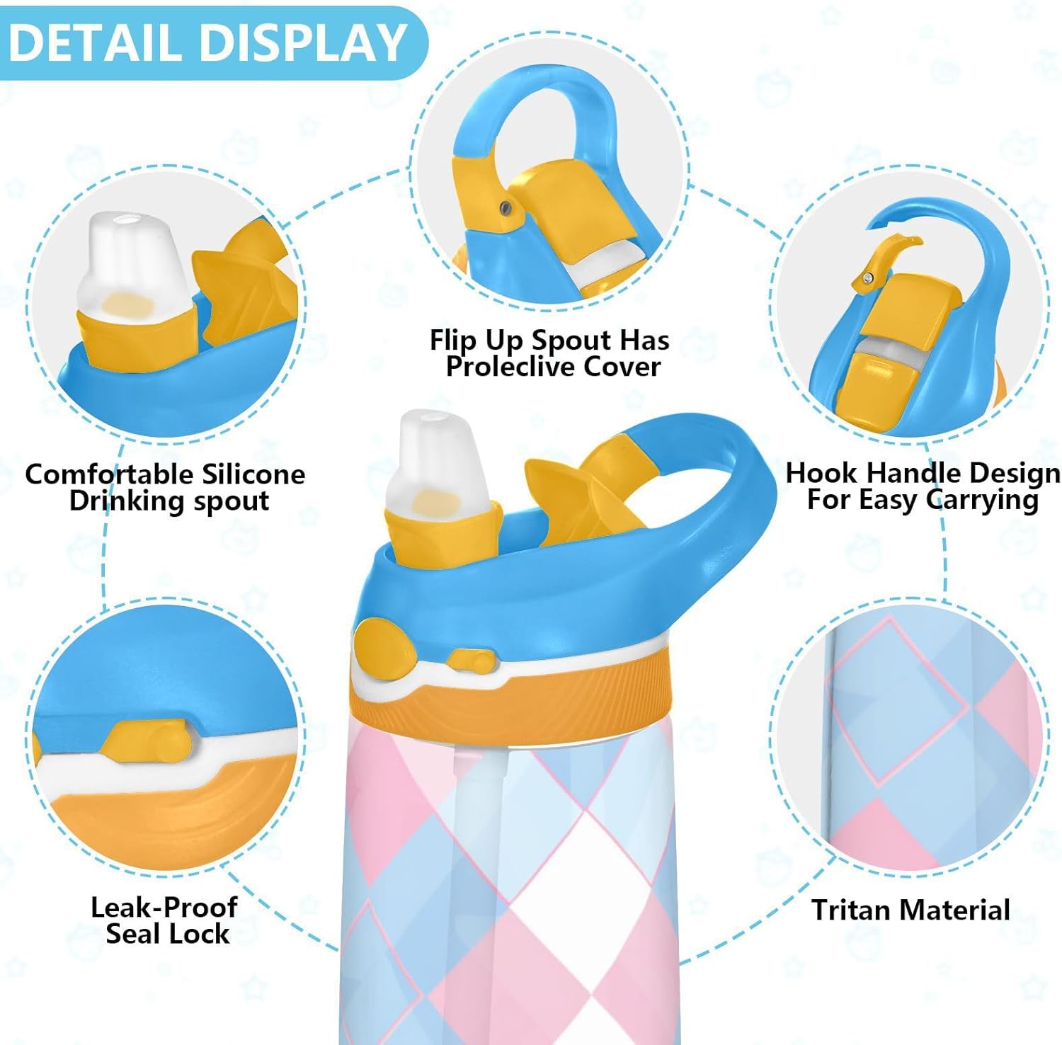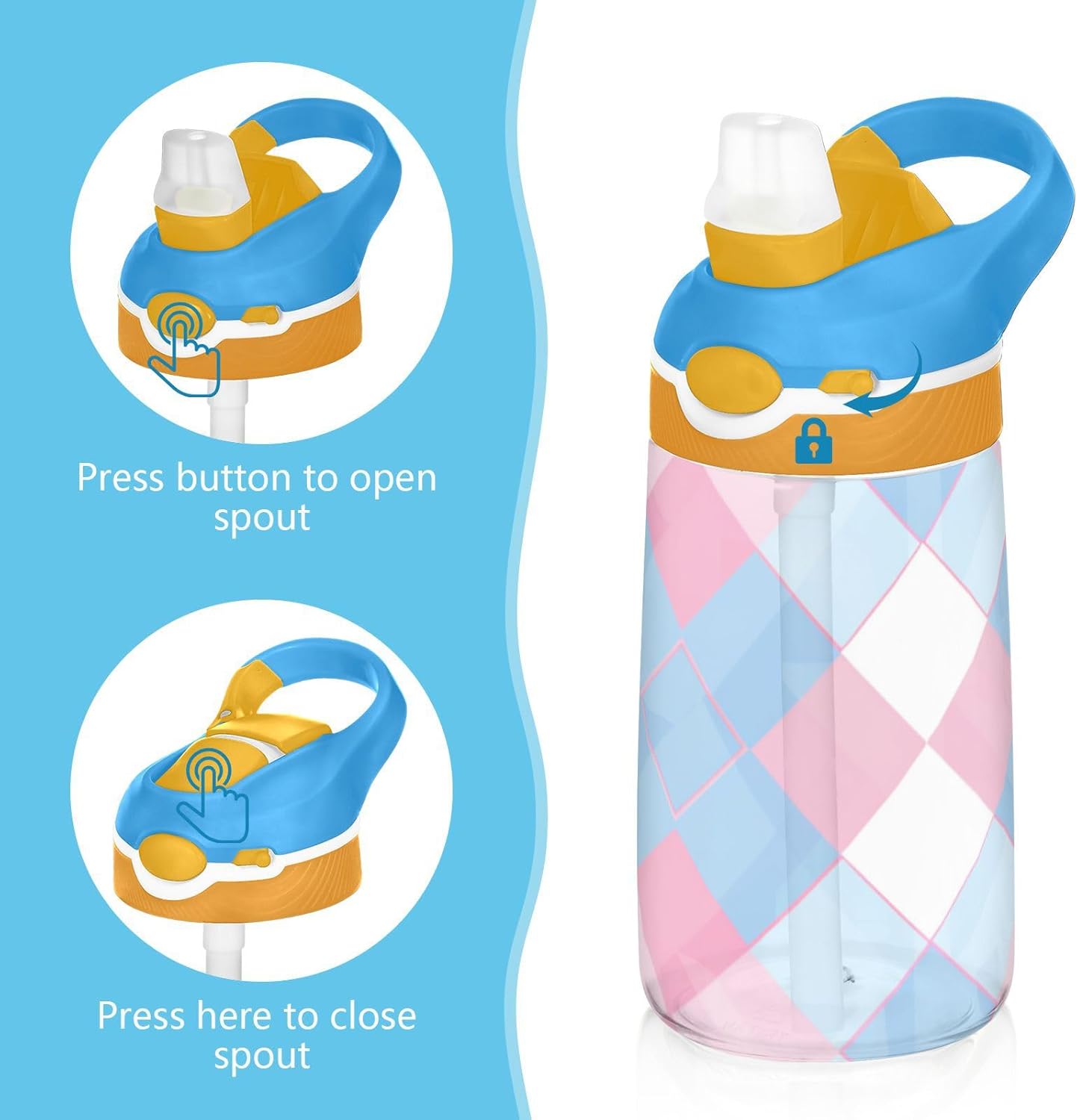 Materiale di sicurezza: il corpo in Tritan e il beccuccio in silicone alimentare garantiscono durata e sicurezza. Contiene 480 ml di acqua, perfetto per l'idratazione quotidiana. Non adatto a bambini di età inferiore ai 3 anni Design portatile: l'ampio manico e il gancio per coperchio rendono la borraccia per bambini facile da trasportare. I bambini possono appenderlo alle loro borse, evitando il fastidio di cadere durante la ricreazione o i viaggi in autobus. Funzionamento amichevole: il becco d'anatra si adatta bene, con una copertura antipolvere. L'interruttore a pulsante di Water Bottle Kids consente l'uso con una sola mano, in modo che i bambini possano idratarsi senza mettere giù i loro giocattoli o attrezzi sportivi. Blocco di sicurezza: il blocco del pulsante impedisce lo scoppio accidentale del becco d'anatra. Previene le perdite quando viene gettato nello zaino, mantenendo asciutti snack e compiti. Pulizia semplice: le parti completamente rimovibili evitano l'accumulo di sporco. Pulire con detergente neutro e acqua calda: facile per i genitori mantenere pulita la borraccia per bambini per l'uso quotidiano.