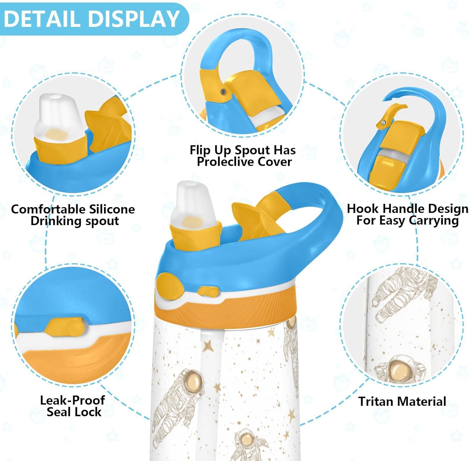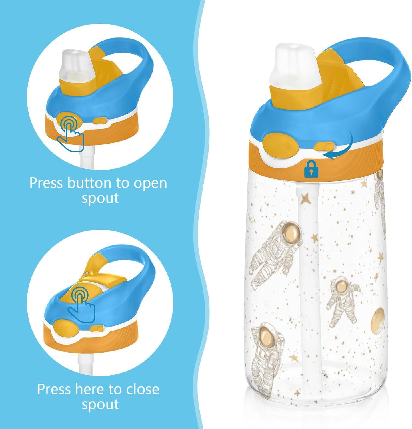 Materiale: questa borraccia da 16 x 7,5 cm con capacità di 480 ml è realizzata in tritan e silicone alimentare. Perfetto per le giornate scolastiche o per lo sport, è privo di elementi nocivi, affrontando le preoccupazioni dei genitori sui materiali non sicuri. Non adatto a bambini di età inferiore ai 3 anni! Design portatile: l'ampio manico è facile da impugnare per i bambini e il gancio del coperchio consente di attaccare la bottiglia d'acqua agli zaini. Niente più bottiglie perse durante le gite sul campo o le attività dopo la scuola. Funzionamento amichevole: il becco d'anatra si adatta bene, con una copertura antipolvere. L'interruttore a pulsante di Water Bottle Kids consente l'uso con una sola mano, in modo che i bambini possano idratarsi senza mettere giù i loro giocattoli o attrezzi sportivi. Blocco per evitare fuoriuscite: il blocco del pulsante della bottiglia d'acqua impedisce al becco d'anatra di fuoriuscire per errore. Niente più fuoriuscite negli zaini, mantenendo il pranzo e i libri asciutti. Facile da pulire: tutte le parti della borraccia sportiva possono essere smontate per evitare l'accumulo di sporco. Pulire con detergente neutro e acqua calda.