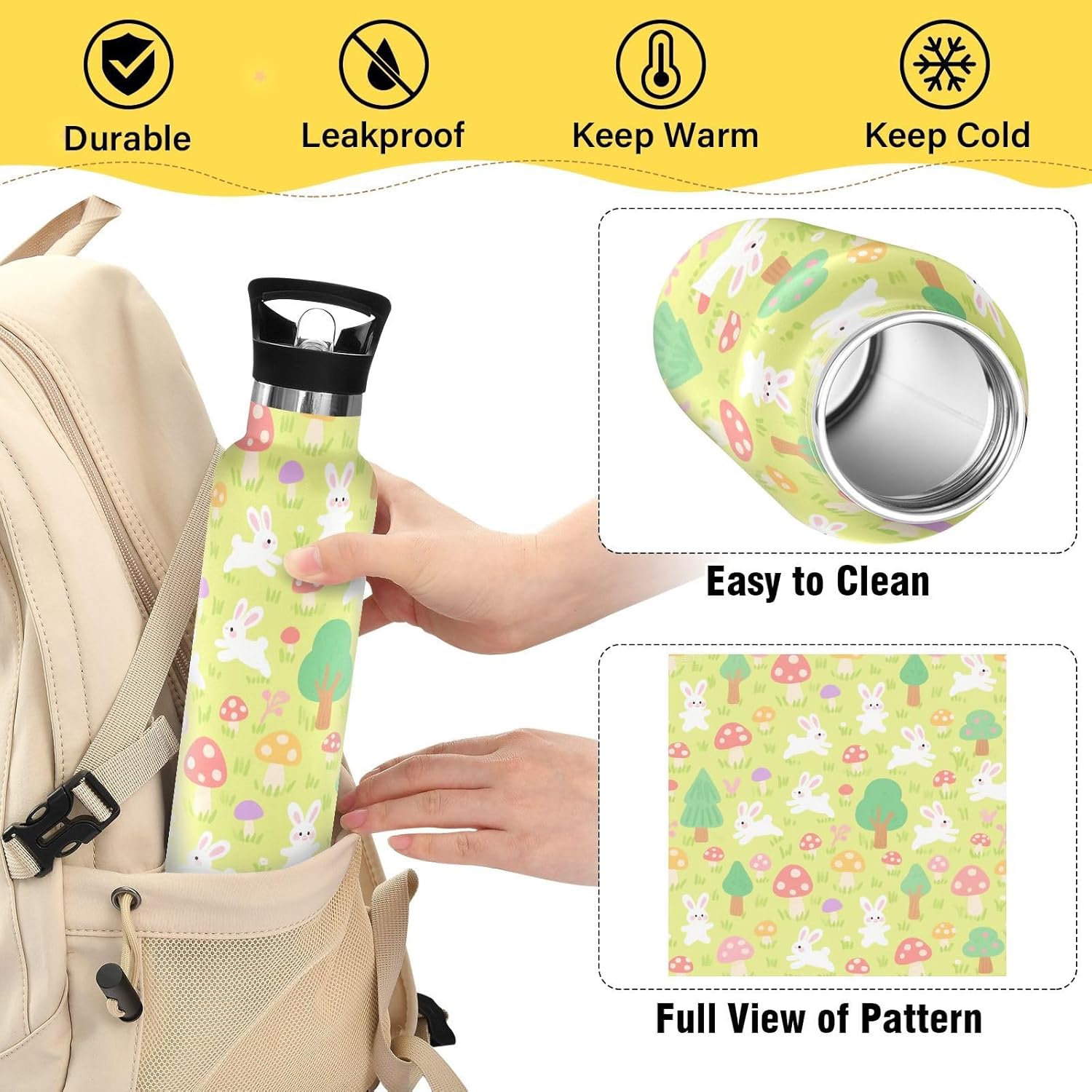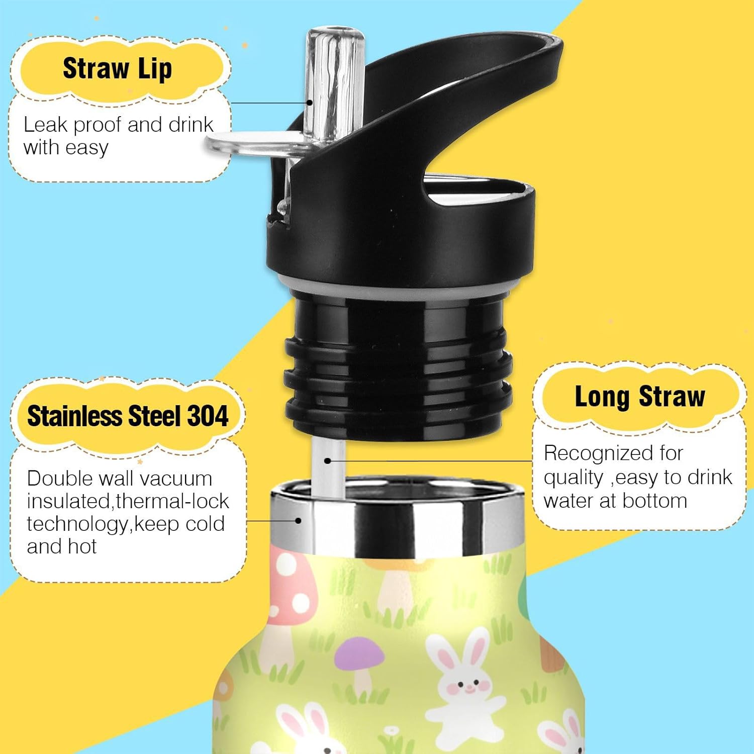 Isolamento premium: questa borraccia in metallo per bambini presenta una struttura sottovuoto a doppia parete. Lo strato esterno in acciaio inox per uso alimentare e il rivestimento interno con uno strato termoisolante e blocco sottovuoto offrono una grande ritenzione di calore e freddo. Dite addio alle bevande tiepide! Coperchio 2 in 1: i due coperchi possono essere cambiati in qualsiasi momento: la cannuccia per sorseggiare facilmente o un coperchio girevole per una rapida idratazione. A tenuta stagna Avventura Ready: meccanismo Twist-lock e guarnizioni in silicone rinforzato impediscono fuoriuscite anche capovolte negli zaini. Affidati per gite in kayak o metropolitane affollate. Caratteristiche portatile: il manico allargato consente di raccogliere queste bottiglie d'acqua riutilizzabili con solo due dita. È un gioco da ragazzi da portare durante le corse mattutine o le gite in bicicletta, in modo da poter rimanere idratati in movimento. Leggero e portatile: viene fornito con una maniglia per un facile fissaggio. Il design sottile si adatta alla maggior parte delle tasche delle borse e dei portabicchieri. Porta questa borraccia termica sportiva ovunque per rimanere idratato.