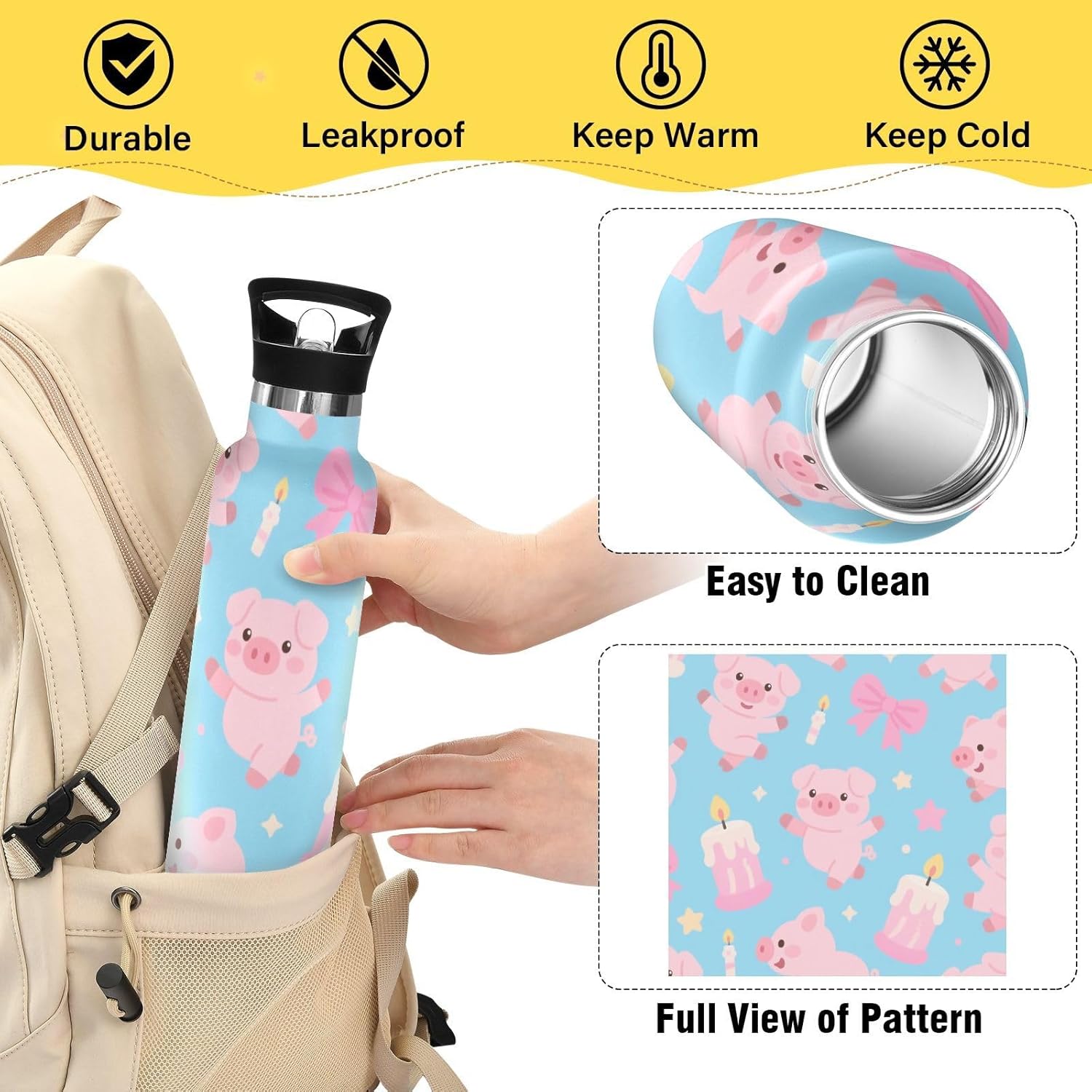 Resistenza isolata sottovuoto: realizzata con acciaio inossidabile a doppio strato e tecnologia sigillata sottovuoto, questa borraccia termica mantiene le bevande ghiacciate per 24 ore o calde al vapore per 12 ore, perfetta per maratone, escursioni o giornate impegnative in ufficio. Dite addio all'acqua tiepida durante gli allenamenti! Coperchio 2 in 1: con una cannuccia pieghevole, questa borraccia da palestra garantisce un facile sorseggio. È perfetto per gli allenamenti in palestra, dove puoi bere rapidamente. Design del coperchio: l'esclusiva valvola di rilascio dell'aria consente un flusso regolare durante le corse intense, senza scomode inclinazioni o rischi di soffocamento. Ideale per le pause di idratazione durante le lezioni Grande capacità: con una grande capacità di 590 ml, questa borraccia riutilizzabile è perfetta per rimanere idratati durante lunghi allenamenti o attività all'aperto. Questa borraccia riutilizzabile è ideale per attività all'aperto, palestra, lavoro o uso domestico. Portalo con te ovunque tu vada e rimani idratato tutto il giorno.