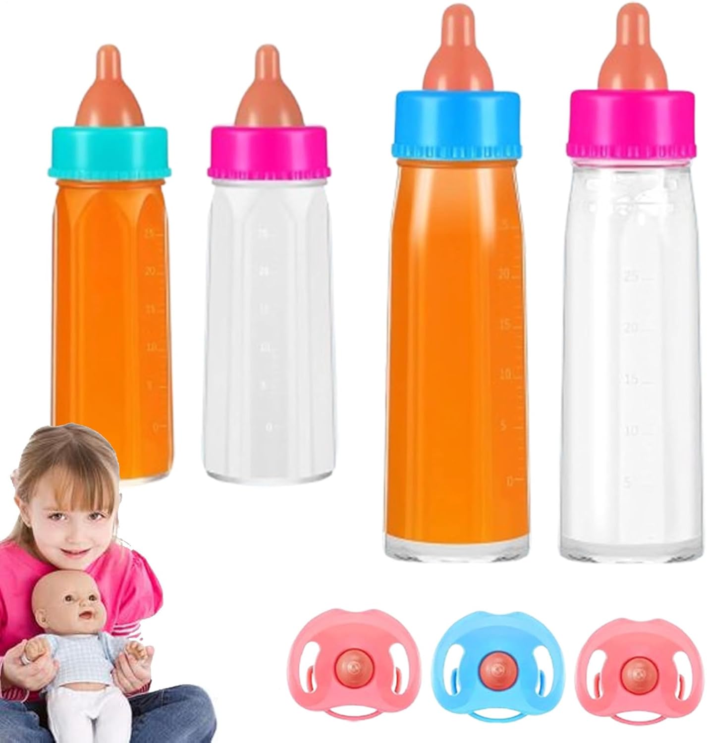 Interessante gioco di ruolo: il set di bottiglie di bambole per bambini fornisce bottiglie realistiche di latte e succo con liquidi che vanno, amplificando il di gioco divertente e fantasioso, stimolando la creatività e dando ai bambini un'esperienza di presa perfetta Aumenta l'apprendimento e lo sviluppo: le nostre bottiglie di bambole per bambini offrono un'esperienza piacevole ed educativa, consentendo ai bambini di imparare a prendersi cura adeguatamente delle loro bambole in modo divertente e interattivo Design sicuro e robusto: la nostra bottiglia di bambola per bambini è realizzata con materiale PP inodore, assicurando che resiste a un normale gioco da gioco, dando ai genitori la pace della mente Buoni regali: nutrimento 'empatia e della responsabilità, le nostre bottiglie di bambole per bambini fanno un regalo eccellente per qualsiasi occasione speciale. per favorire la creatività e l'immaginazione, è per sviluppare tratti premurosi, rendere ancora più speciali compleanni e festività Soddisfare le esigenze di gioco per bambini: con 4 affascinanti bottiglie di giocattoli e 3 ciucci , il nostro set di bottiglie di bambole per bambini crea un'esperienza di gioco completa e unica. Fornendo più possibilità fantasiose, tuo figlio godrà di ogni momento di divertimento interattivo