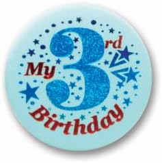 Bottone in raso per il mio 3° compleanno (blu) Accessorio per feste da 2 pollici