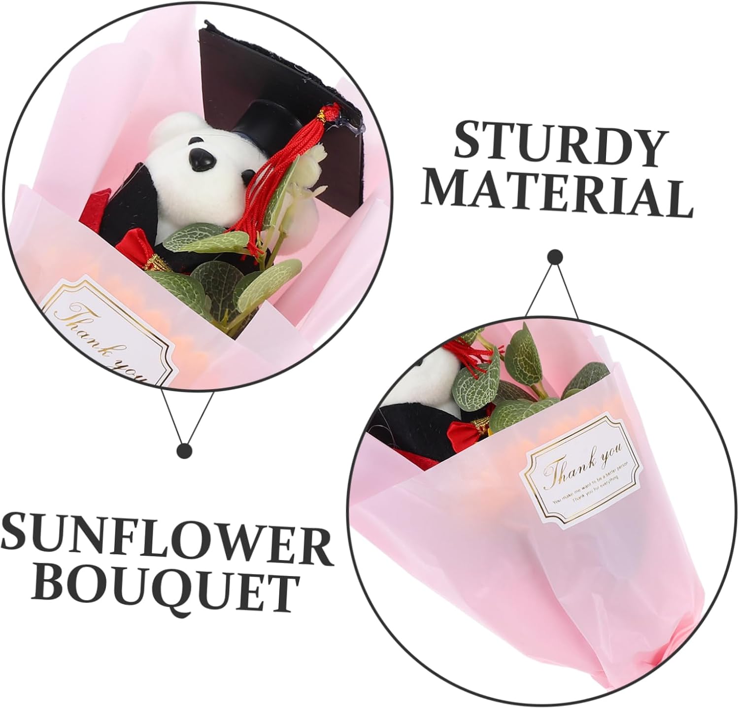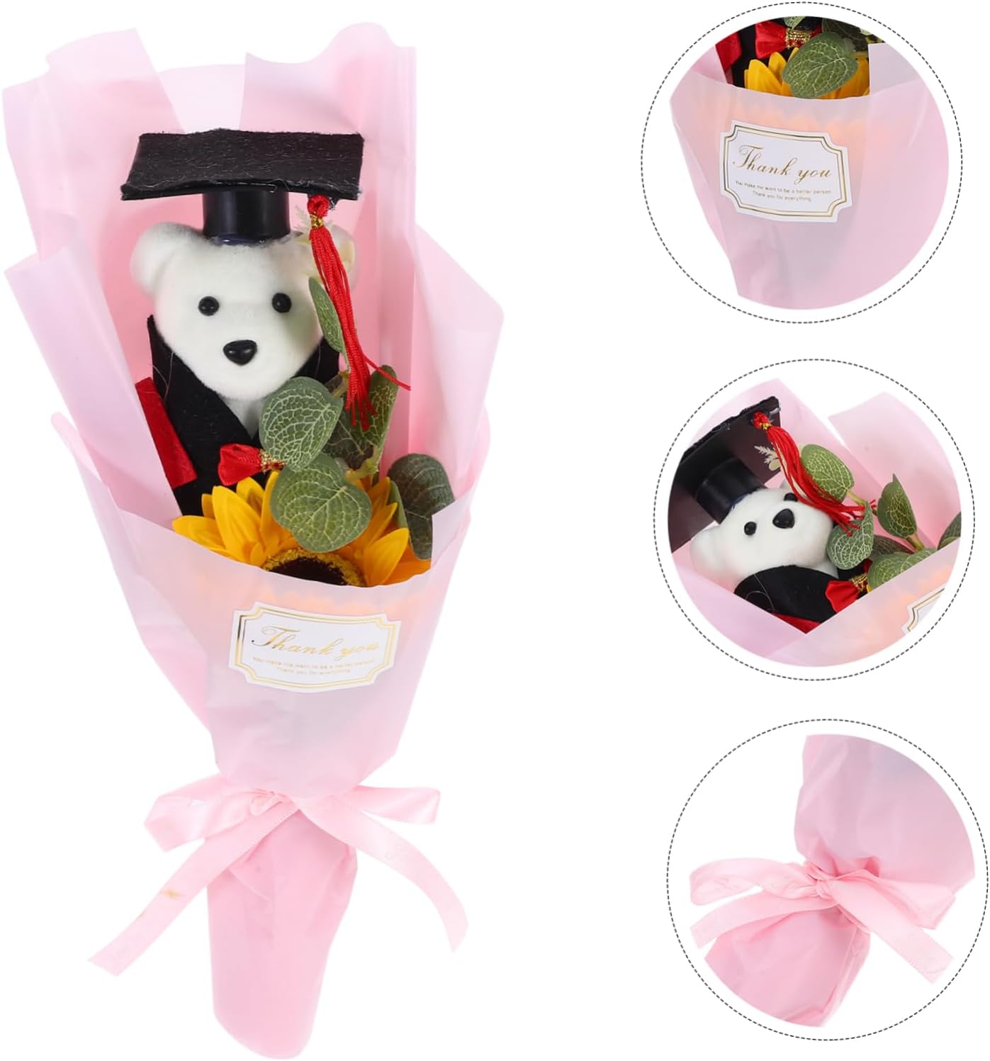 Unico e affascinante: il bouquet presenta un regalo di laurea: ideale per coloro che si diplomano e trasmette calorose congratulazioni e incoraggiamento per i loro impegni futuri Morbido e confortevole: il bouquet è morbido Decorativo e funzionale: questo bouquet funge sia da pezzo premuroso che decorativo, aggiungendo un tocco di fascino a chiunque Affascinante orsetto di peluche: l'inclusione di un simpatico orsetto di peluche migliora il fascino del bouquet, rendendolo una deliziosa aggiunta a qualsiasi festa di laurea
