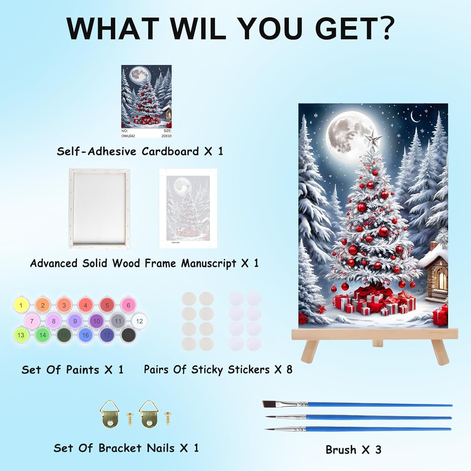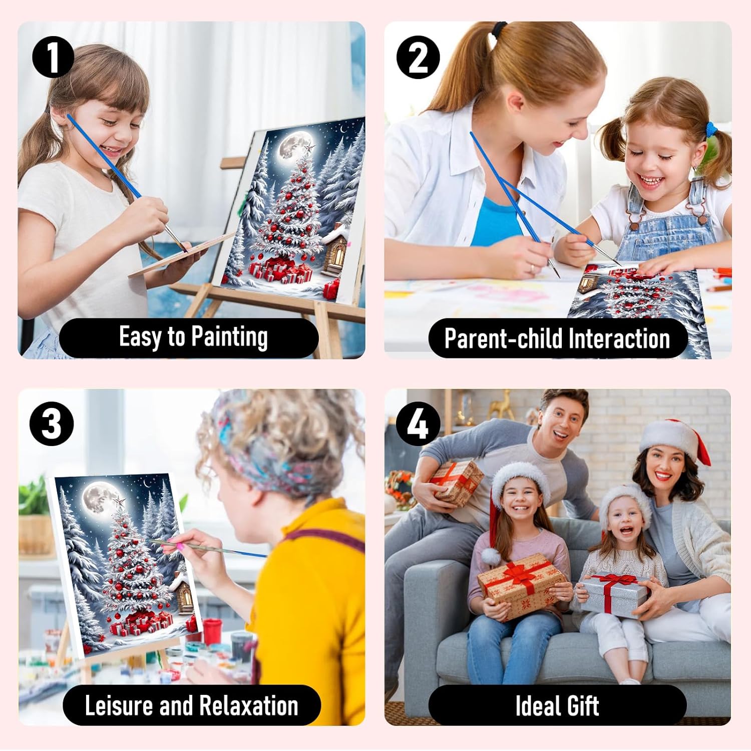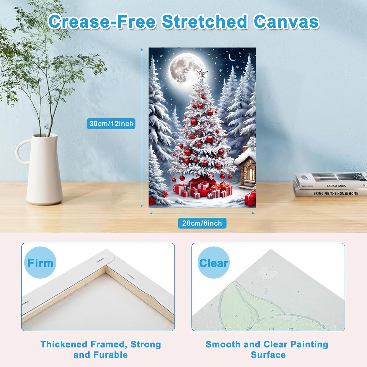 Bowetile Luna Natalizia e Albero Dipingere per Numeri per Adulti, Kit Paesaggio Lavoretti Creativi per Numeri per Principianti, Kit Pittura Acrilica Numerata Per Decorazione Della Casa 20x30cm