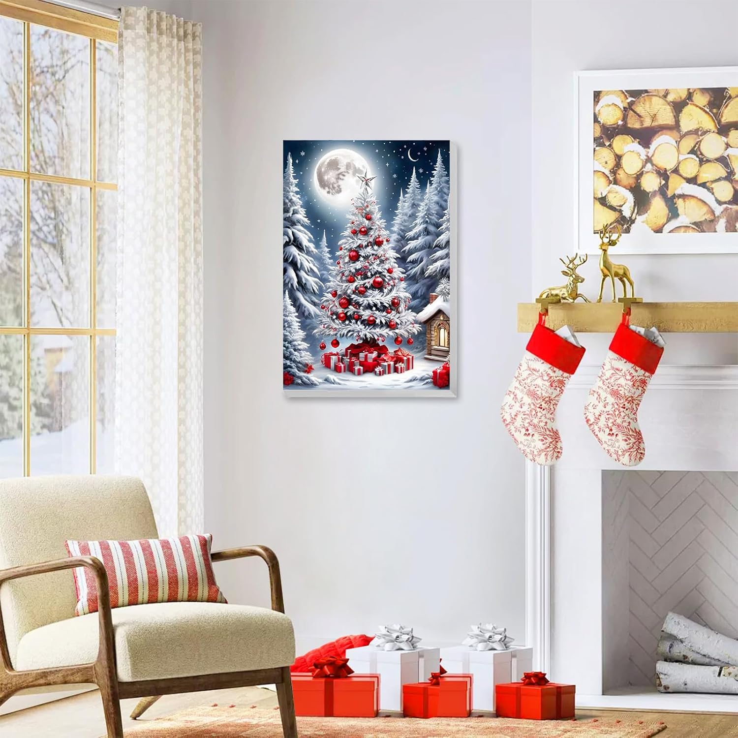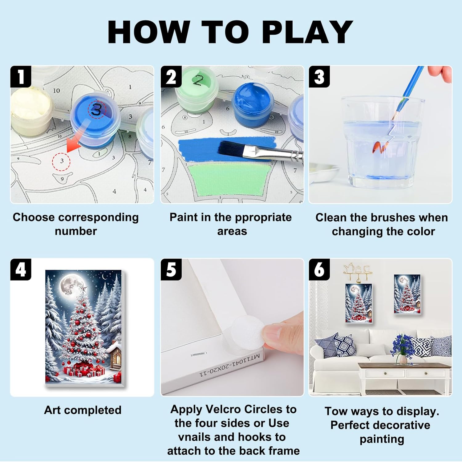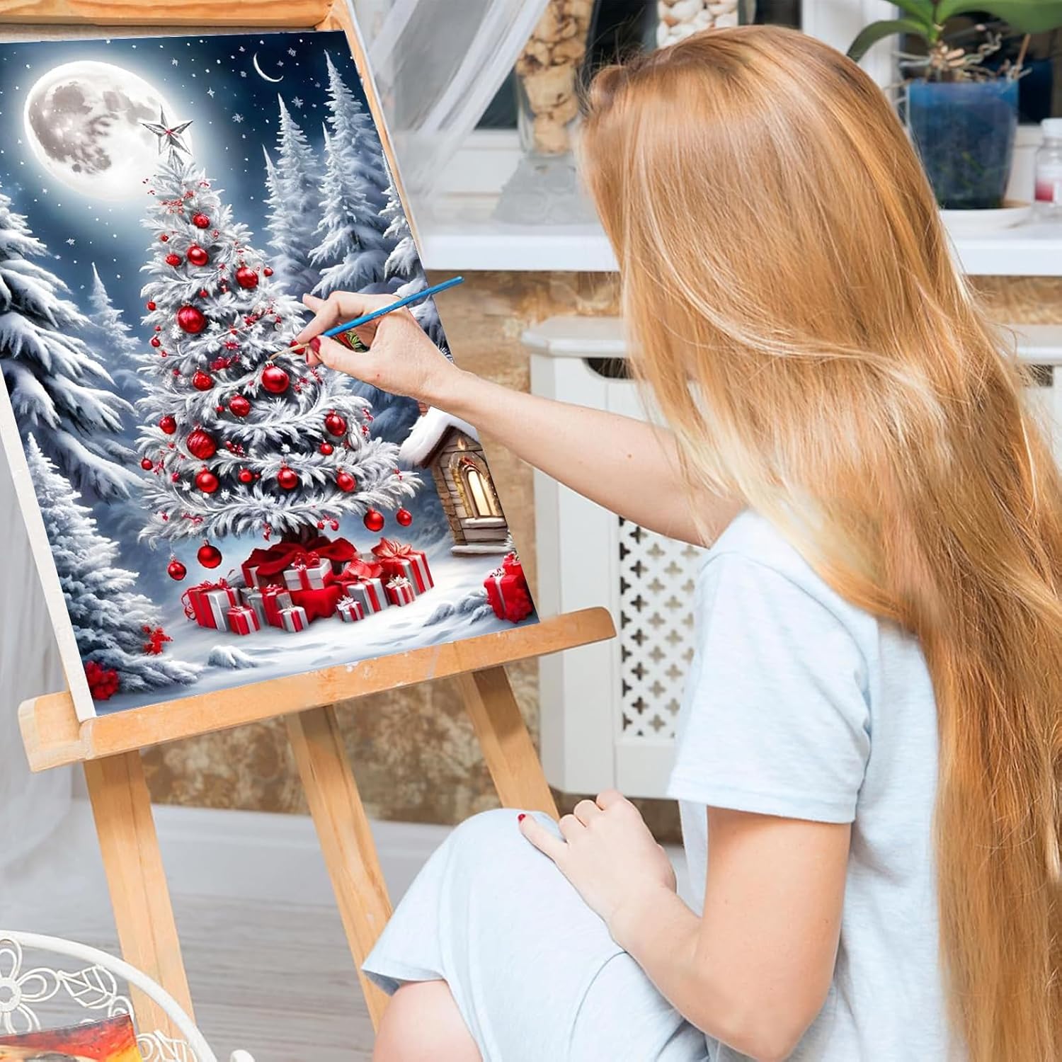 Bowetile Luna Natalizia e Albero Dipingere per Numeri per Adulti, Kit Paesaggio Lavoretti Creativi per Numeri per Principianti, Kit Pittura Acrilica Numerata Per Decorazione Della Casa 20x30cm