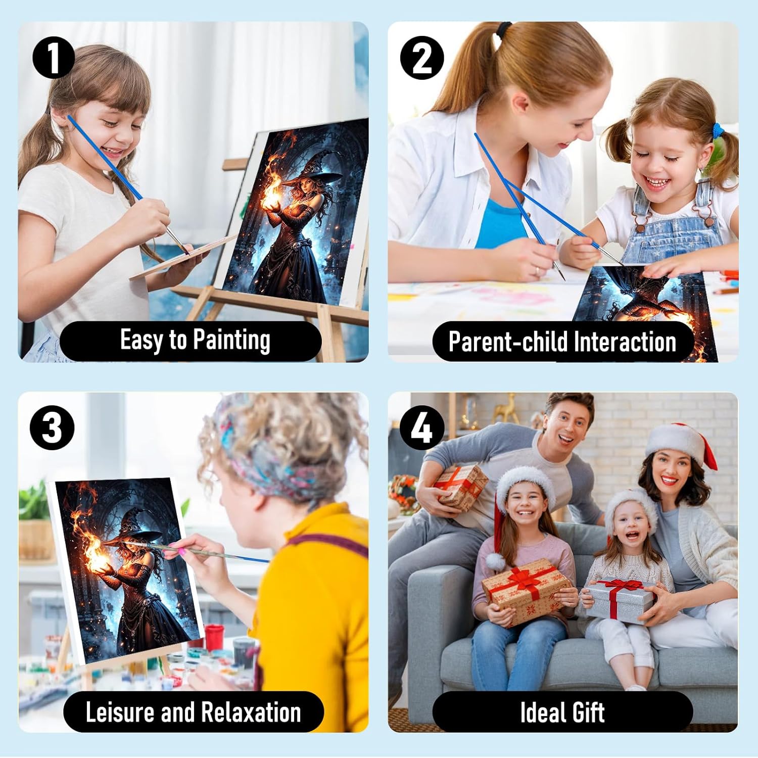 COSA RICEVERAI - Riceverai il kit di pittura per numeri Piccola Città Halloween per adulti con cornice. Ogni kit include: tela con cornice in legno x1, tela x 1, pennelli con punte diverse x 3, kit pigmento acrilico formulato x 1. Il kit di piantagione BOWETILE include ganci e punti autoadesivi sufficienti. Ti forniamo tutto il necessario per dipingere. Tela di Alta Qualità – 8x12 pollici Kit di Pittura per Numeri per Adulti con tela ad alta densità. Ogni tela presenta aree numerate che corrispondono esattamente ai colori acrilici. Si tratta di una vernice acrilica sicura e atossica per colori vivaci e duraturi con un'ottima copertura. Facile da lavare con acqua e sapone. Semplice da colorare e leggere, rendendo la creazione senza sforzo e piacevole per principianti e adulti Aggiungi divertimento fai-da-te alla vita - Gli Animali Pittura per Numeri con cornice è ideale per relax e intrattenimento nel tempo libero. Facile da usare, accessibile a principianti e tutte le età senza bisogno di competenze artistiche. Vernice acrilica sicura e salutare con colori vivaci e di lunga durata, ottima coprenza. Si lava facilmente con acqua e sapone. Semplice e divertente per principianti e professionisti Migliora Concentrazione & Pazienza – Completare il kit di Pittura per Numeri per adulti dona un grande senso di realizzazione grazie a risultati visivamente strabilianti. Seguire con successo i numeri per creare il proprio capolavoro rafforza la fiducia e l'autostima degli adulti. Migliora le abilità pratiche, riduce lo stress, allevia le emozioni e coltiva la pazienza Regali Originali e Articoli per la Casa -- Il kit di pittura per numeri su tela è un'ottima idea regalo per adulti o familiari in occasione di compleanni, Festa del Papà, San Valentino, Pasqua, Anniversari, Festa della Mamma, Ringraziamento, Halloween, Natale, ecc. I dipinti a olio dai colori intensi sono perfetti per essere appesi in camera da letto o in qualsiasi altro ambiente. Chi vedrà le vostre creazioni fai-da-te non potrà che elogiarle
