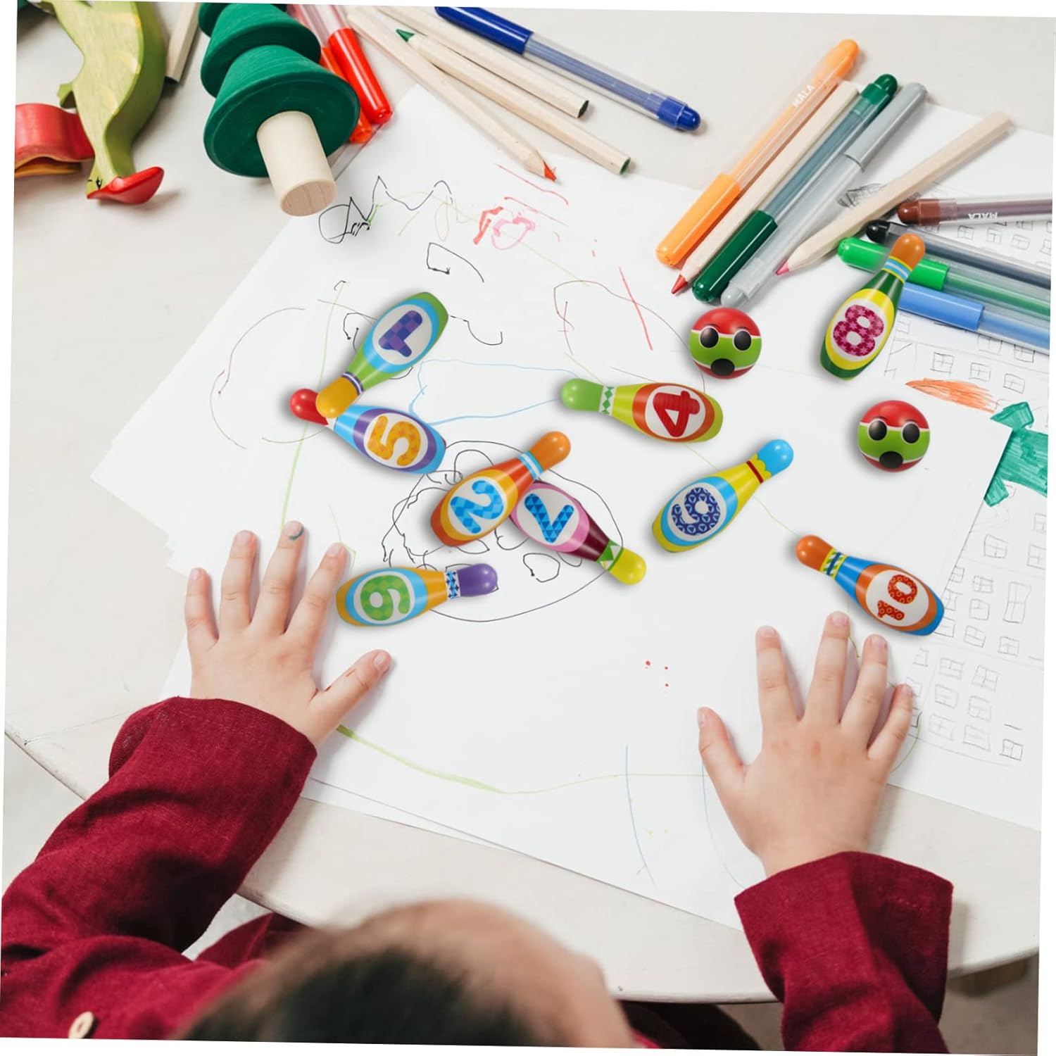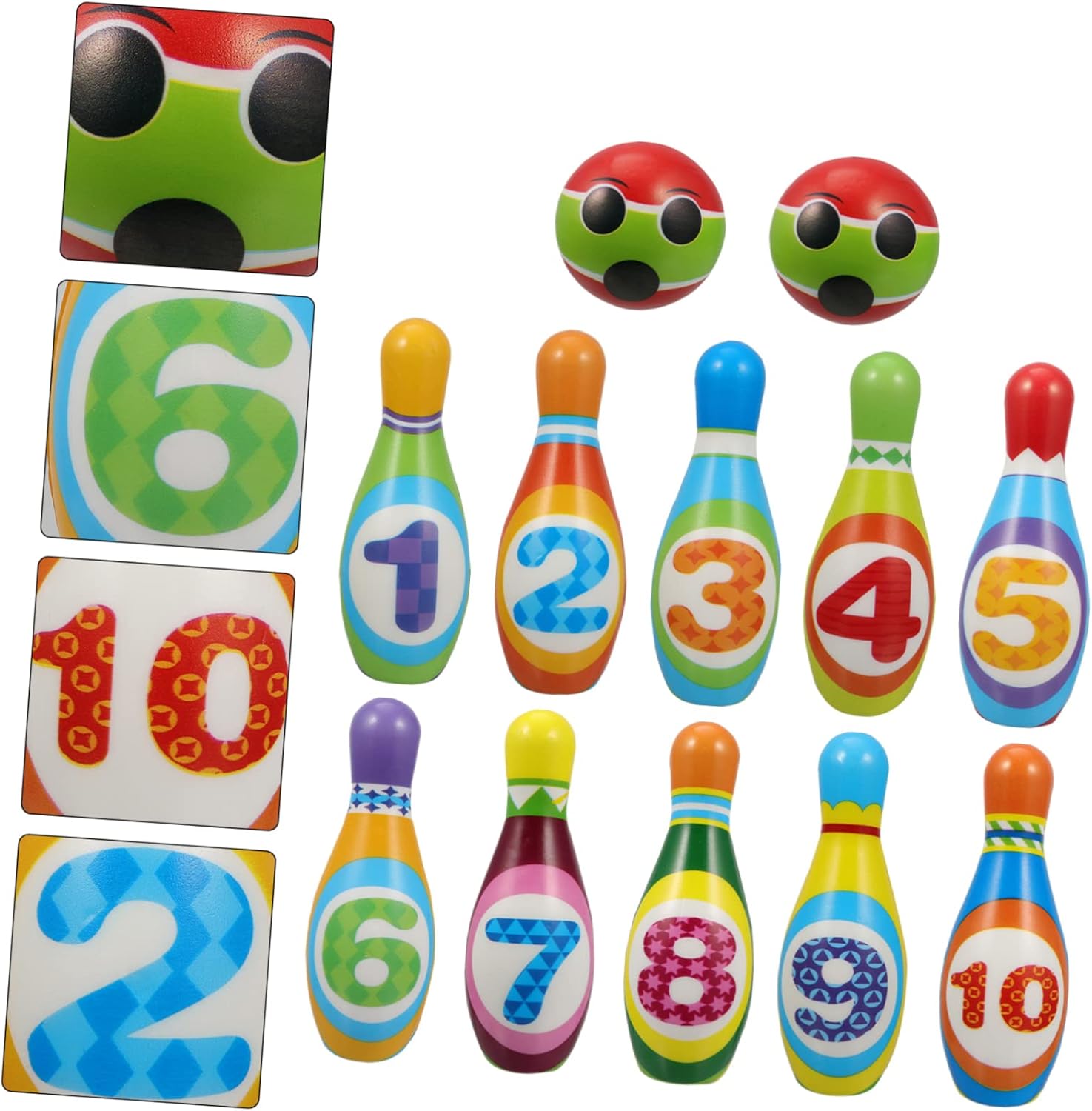 Palle da bowling per bambini - Con superficie liscia e senza sbavature, in modo da non ferire le mani dei tuoi bambini mentre giocano, Giochi da bowling Giocattoli da bowling per bambini - Questo giocattolo da bowling è adatto ai bambini per apprendere abilità numeriche ed esercitare interesse per lo sport. è un giocattolo educativo per il riconoscimento dei numeri. Giocattoli educativi per bambini: riunioni di famiglia, feste, campeggio, feste di compleanno, giochi per genitori, giocattoli da bowling per bambini. I giocattoli da bowling sono ottimi per i bambini per allenare le loro capacità di osservazione e la coordinazione occhio-mano. Aiuta anche a migliorare le proprie capacità matematiche, strategiche e logiche. Giocattoli educativi per bambini: dai bambini ai nonni possono davvero divertirsi con il set da bowling, un giocattolo educativo per imparare i numeri.