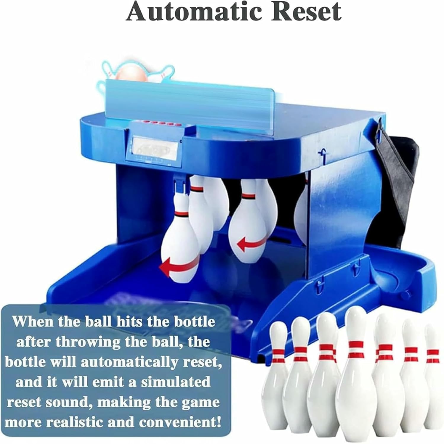 ➤ Set di bowling di prim'ordine: questo set include 6 perni di plastica non tossici e 2 palline da bowling, garantendo un tempo di gioco sicuro e divertente. ➤ Emozionante punteggio LED: sperimentare un gameplay interattivo divertente da solo o con un amico.Il marcatore a LED tiene automaticamente traccia dei tuoi punteggi, aggiungendo all'eccitazione e alla competizione. ➤ Conveniente ritorno a sfera: dopo ogni lancio, i pin si ripristinano con un suono realistico, creando un'esperienza di gioco immersiva. ➤ Facile da configurare: questo set di bowling elettrico portatile è perfetto per l'uso domestico.Il suo design liscio e pieghevole lo rende rapido da impostare e facile da archiviare quando non in uso. ➤ Entertainment di Parent-Child: il bowling è divertente, interessante, competitivo e abile, i giochi possono avvicinare le persone, è un ponte di comunicazione tra famiglia e bambini, rendendo la famiglia andare d'accordo in modo più armonioso e gioiosamente.