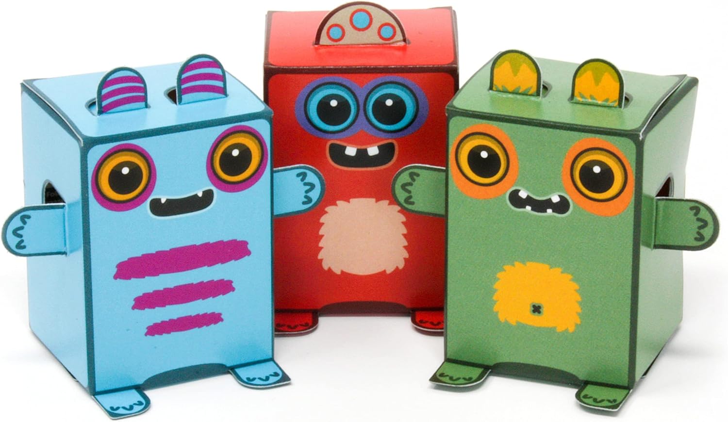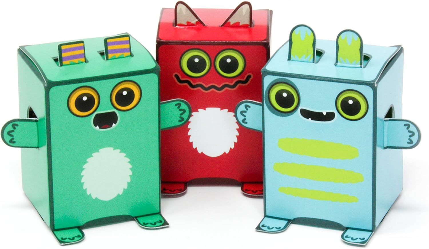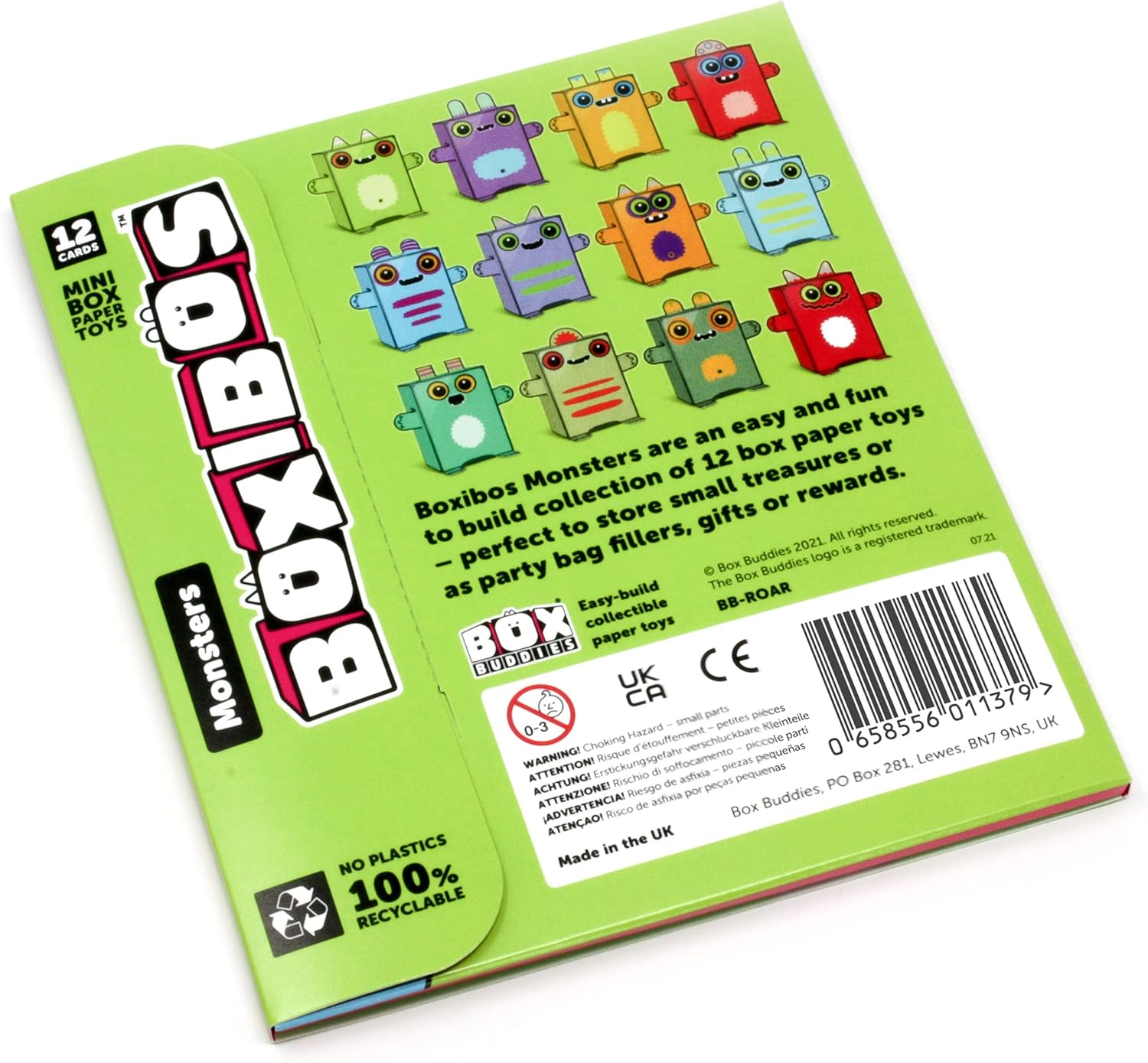 Una collezione facile e divertente di mini box mostro personaggi 12 personaggi di carta mostro divertenti e colorati in ogni confezione I Boxibos sono perfetti come sacchetti per feste, regali di Halloween, premi o ricompense per i bambini Facile e divertente da costruire in un simpatico giocattolo per mostri in carta, senza bisogno di tagliare o attaccare Costruito mini box personaggi stanno intorno 50 millimetri di altezza