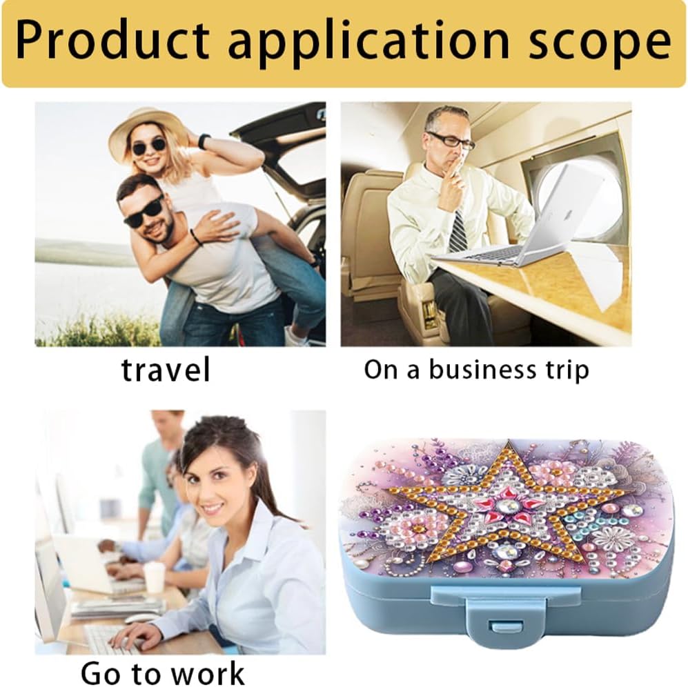 4. Opzione regalo unica: come regalo distintivo, le scatole di stoccaggio delle pillole d'arte di diamanti adatte a occasioni come festività, compleanni e laurea, trasmettendo cure e benedizioni ad amici e familiari. 2. Portabilità compatta: il distributore di pillole per la pittura di diamanti è progettato per essere compatto e facile da trasportare, rendendolo perfetto per viaggi, lavoro e fitness, soddisfacendo le esigenze di farmaci quotidiani. 1. Creatività personalizzata: i consumatori possono scegliere tra vari motivi e colori di pittura di diamanti per creare un'esclusiva custodia per pillola a punta diamante 5D, mettendo in mostra la loro personalità e creatività. 3. Utilità artistica: la decorazione unica di pittura a diamante aggiunge un tocco artistico alla scatola della pillola del kit di pittura di diamanti, rendendolo sia strumento pratico che un bellissimo accessorio che migliora la qualità della vita. Custodia per pillola a punta diamante 5d Diamond Dispenser Art Travel Custodia per arte artigiane