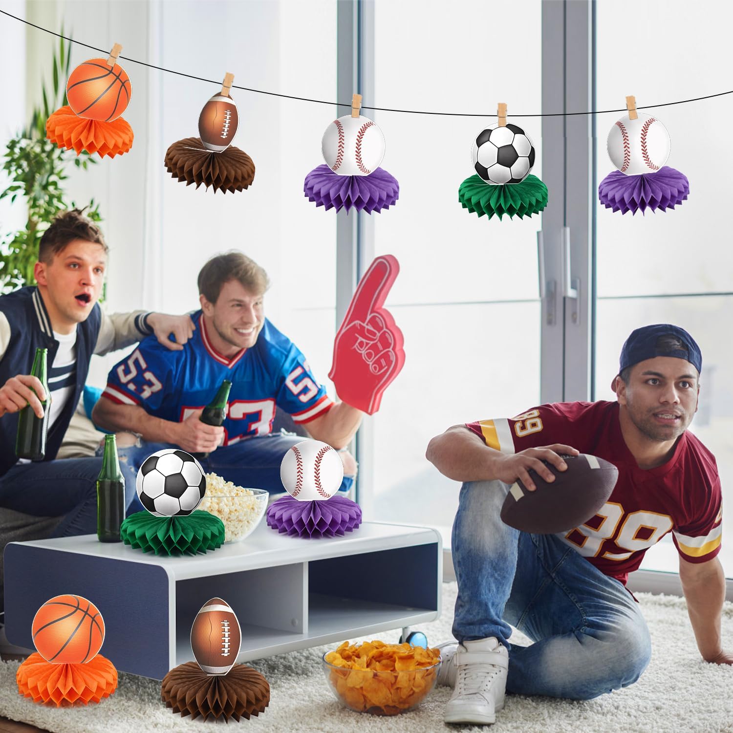 Set completo: include 12 centrotavola sportivi a nido d'ape (3 baseball, 3 calcio, 3 basket e 3 design di calcio).Quantità sufficiente per incontrare varie decorazioni per feste. Materiale premium: realizzato con materiale di carta durevole con stampa resistente allo sbiadimento, queste decorazioni sportive a nido d'ape sono leggere e robuste e presentano colori vivaci e motivi a sfera realistici che mantengono la loro vivacità durante il tuo evento. Assemblaggio facile: ogni fulcro viene fornito con adesivi pre-attaccati per una configurazione rapida.Incollare la base alla parte fissa della carta e attaccare l'altra metà della base, semplicemente svolgersi e visualizzare in pochi secondi. Design del tema sportivo: la struttura 3D a nido d'ape e il design sportivo accattivante (calcio, basket, baseball e palloni da calcio) li fanno deliziare gli appassionati di sport di tutte le età.Perfetto per creare un'atmosfera sportiva vibrante per le feste sportive sia per bambini che per adulti. Ampia applicazione: questi centrotavola sportivi per il tavolo sono adatti per feste di compleanno, banchetti sportivi, celebrazioni di squadra, eventi scolastici e decorazioni per la giornata di gioco.Sono anche regali eccellenti per atleti e appassionati di sport.