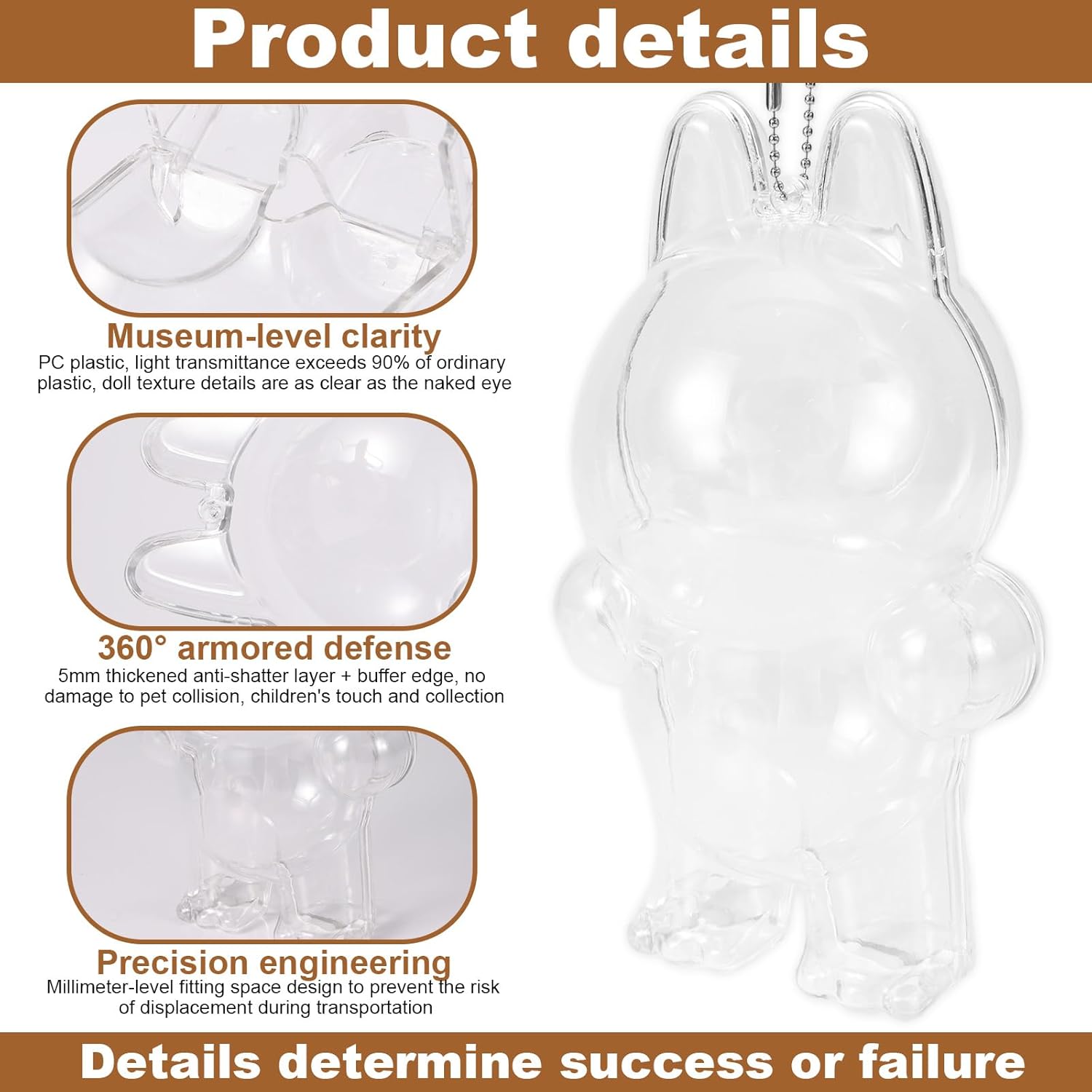 Il prodotto include: Riceverai 2 protezioni per bambole in 2 stili, 1 per bambole in piedi e 1 per bambole sedute, e verranno fornite con 2 catene abbinate. Bambole non incluse. Dimensioni del prodotto: custodia da seduta: 17x10 cm; Custodia in piedi: 15,5x8,5 cm; Lunghezza catena: 10 cm. Compatibile con bambole di prima e seconda generazione. Si prega di verificare le dimensioni prima dell'acquisto. Materiale premium: realizzate in plastica PC trasparente di qualità, queste custodie protettive sono robuste, durevoli e resistenti alle crepe, fornendo una protezione affidabile senza compromettere la visibilità. Portatile con catena: ogni custodia è dotata di una catena staccabile per un facile fissaggio su zaini o borse da viaggio, permettendoti di trasportare in sicurezza le tue bambole mentre sei in movimento. Esposizione e regalo perfetti: il design cristallino mette in mostra le tue bambole da ogni angolazione, ideale per scaffali, scrivanie o espositori da collezione. Un regalo premuroso per gli amanti delle bambole e i collezionisti.