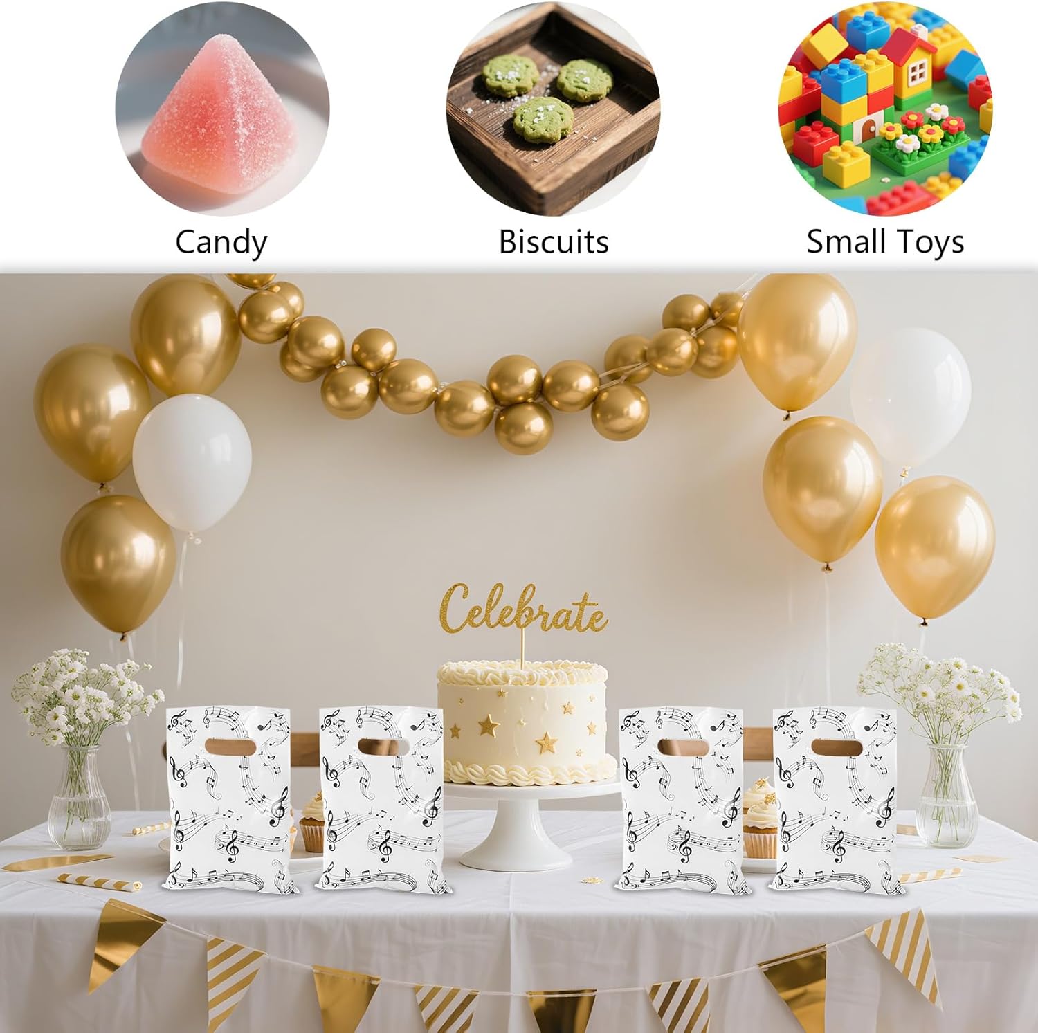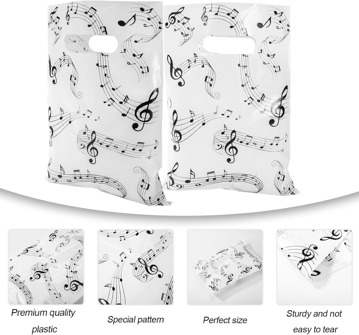 Prodotto incluso: riceverai 50 sacchetti regalo Music Note, sufficienti per soddisfare le tue esigenze di utilizzo, regalo e condivisione. Dimensioni del prodotto: la dimensione di questi sacchetti regalo a tema musicale è di circa 25x17 cm. Le dimensioni ridotte sono facili da trasportare e offrono spazio sufficiente per riporre snack, giocattoli, souvenir e regali. Materiale premium: questi sacchetti per caramelle con note musicali sono realizzati in plastica di alta qualità, resistente e non facile da strappare, deformare e sbiadire. Le maniglie sono anche abbastanza robuste da sopportare un certo peso e possono essere riutilizzate. Design speciale: queste borse per note musicali sono classiche in bianco e nero e le note musicali nere sono eleganti e aggraziate, come se danzassero nel vento. Sono perfetti per professionisti e dilettanti che amano la musica e lasceranno una profonda impressione in chiunque li riceva. Ampie applicazioni: questi sacchetti regalo per feste musicali possono contenere snack, caramelle, biscotti, cioccolato, giocattoli e piccoli regali. Sono molto adatti per confezioni regalo e decorazioni in festival musicali, feste musicali, feste di compleanno, matrimoni, anniversari, addii al celibato e qualsiasi altra celebrazione.