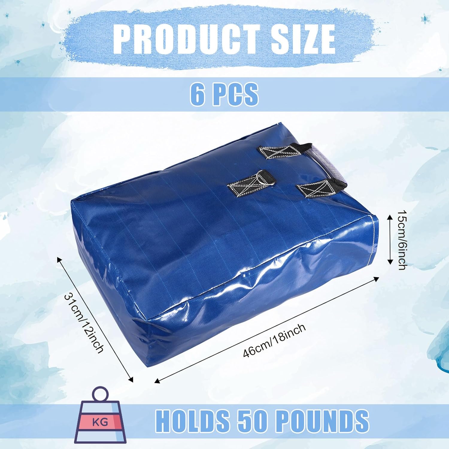 Uso versatile: questo set comprende 6 sacchi di sabbia in vinile (46x31x15 cm), che forniscono un peso sufficiente (sabbia non inclusa) per stabilizzare case gonfiabili, scivoli d'acqua e rifugi all'aperto. Un must per gli organizzatori di eventi e i proprietari di case. Materiale robusto: realizzati in vinile durevole e resistente agli agenti atmosferici, questi sacchi di sabbia sono costruiti per resistere alle condizioni esterne. Perfetto per proteggere case gonfiabili, tende e tettoie in tutte le stagioni. Chiusura sicura con gancio e anello: ogni sacco di sabbia è dotato di una guarnizione rinforzata con gancio e anello per mantenere la sabbia saldamente all'interno. Previene le fuoriuscite e garantisce un uso duraturo per le tue installazioni all'aperto. Pratici ganci in metallo: dotati di robusti ganci in metallo per un facile aggancio e fissaggio dell'ancora. Ideale per legare gommoni, tende e tendalini, anche in caso di vento. Design di riempimento semplice e portatile: basta riempire i sacchetti di plastica con la sabbia, quindi posizionarli all'interno dei sacchetti di sabbia in vinile e sigillarli. Leggeri e portatili, sono perfetti per una rapida installazione e conservazione.
