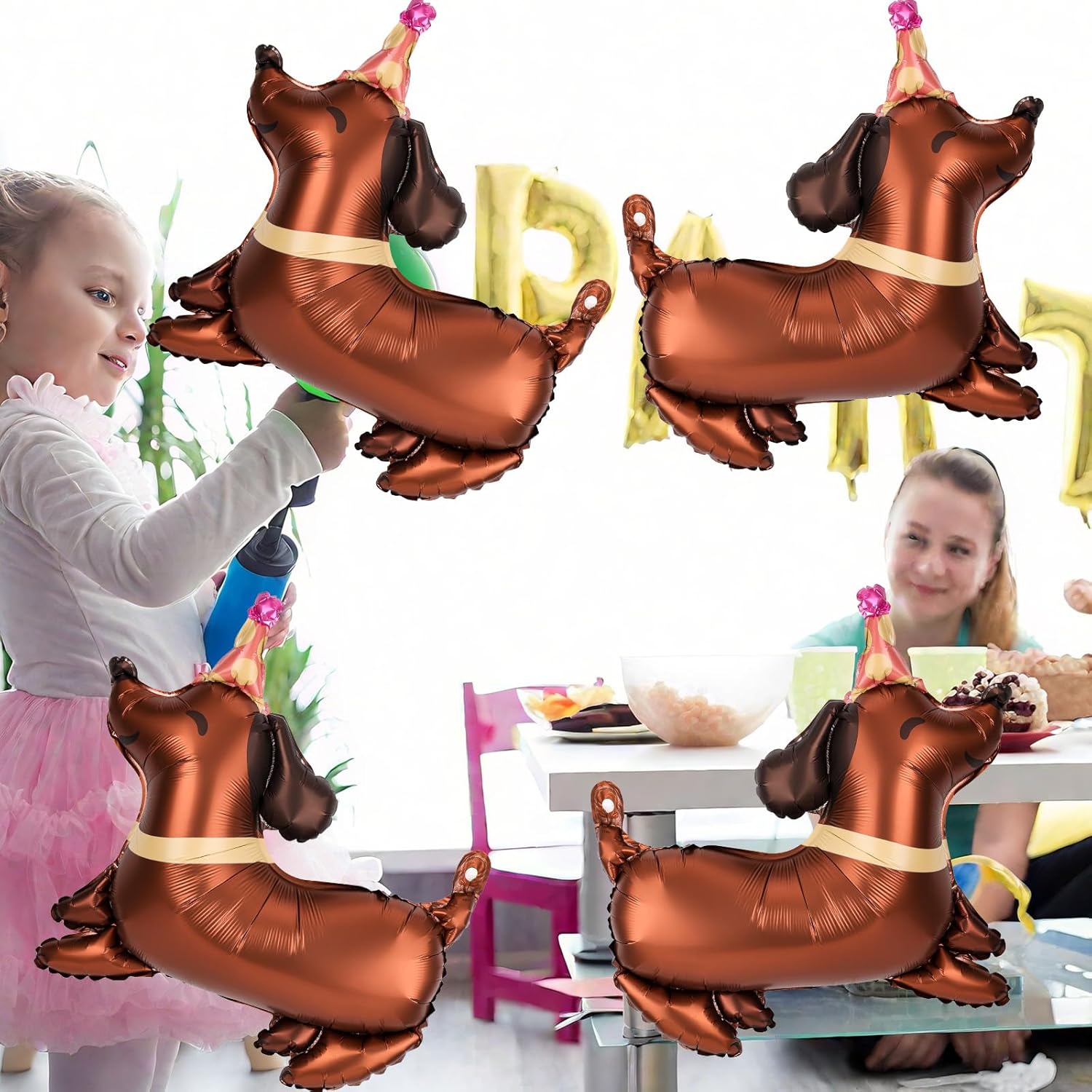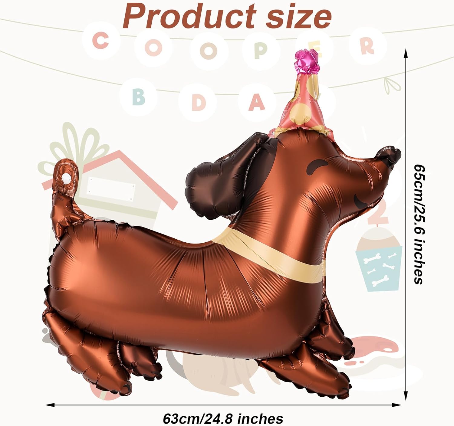 La confezione include: riceverai 6 graziosi palloncini a forma di bassotto, una quantità sufficiente e un design interessante che soddisferanno le tue esigenze di decorazione per la festa e la renderanno più suggestiva. Ampiamente utilizzato: questo palloncino a forma di bassotto è adatto a varie occasioni come decorazione, come feste di compleanno, feste a tema animali domestici e feste per cuccioli, offrendoti un'esperienza di decorazione unica. Materiale fantastico: questo palloncino a forma di bassotto è realizzato principalmente in un affidabile materiale in pellicola di alluminio, che è resistente e durevole, non si strappa facilmente, non ha odori particolari e può essere riutilizzato. Facile da usare: il nostro palloncino a forma di bassotto è molto facile da usare. Basta gonfiarlo fino al 90% circa. Può rimanere gonfio a lungo ed è anche facile da sgonfiare e riporre. Dettagli sulle dimensioni: le dimensioni del palloncino a forma di bassotto sono 65x63 cm, le dimensioni ingrandite possono rendere la tua festa più vivace, leggero, adatto come decorazione per soffitti e come oggetto di scena per foto.