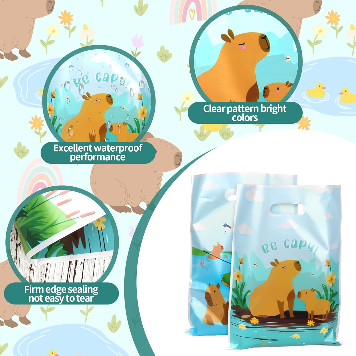 Il pacchetto include: Riceverai sacchetti regalo di capibara da 50 pezzi, la dimensione è 25x18 cm, abbastanza piccola e raffinata da soddisfare le esigenze di utilizzo della festa. Materiale affidabile: queste borse per capibara sono realizzate in plastica di alta qualità, affidabili e prive di odore, impermeabili, antistrappo, non facili da rompere o sbiadire. Puoi usarlo con sicurezza. Design carino: questi sacchetti di plastica sono stampati con motivi di capibara su entrambi i lati, che sono carini, vivaci e interessanti. Aggiungono un'atmosfera gioiosa alla tua festa e sono molto adatti per gli amanti degli animali. Ampie applicazioni: il sacchetto per caramelle Capybara è progettato con una maniglia facile da usare e trasportare. Può contenere una varietà di piccoli regali, torte, caramelle, biscotti, oggetti di artigianato, bamboline, ecc. È bello e pratico. Forniture per feste: le nostre bomboniere Capybara sono adatte per feste di compleanno, baby shower, feste di genere e altre feste a tema Capybara e possono anche essere utilizzate come borse per la vendita al dettaglio, borse premio in classe, ecc.