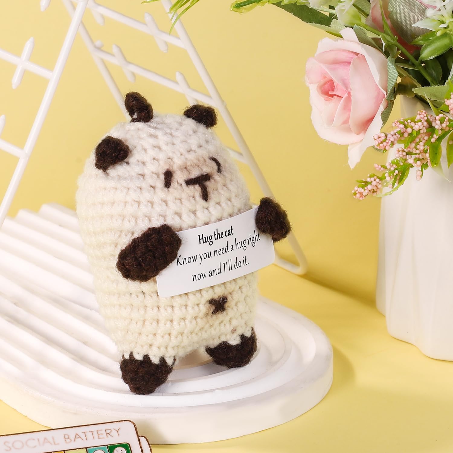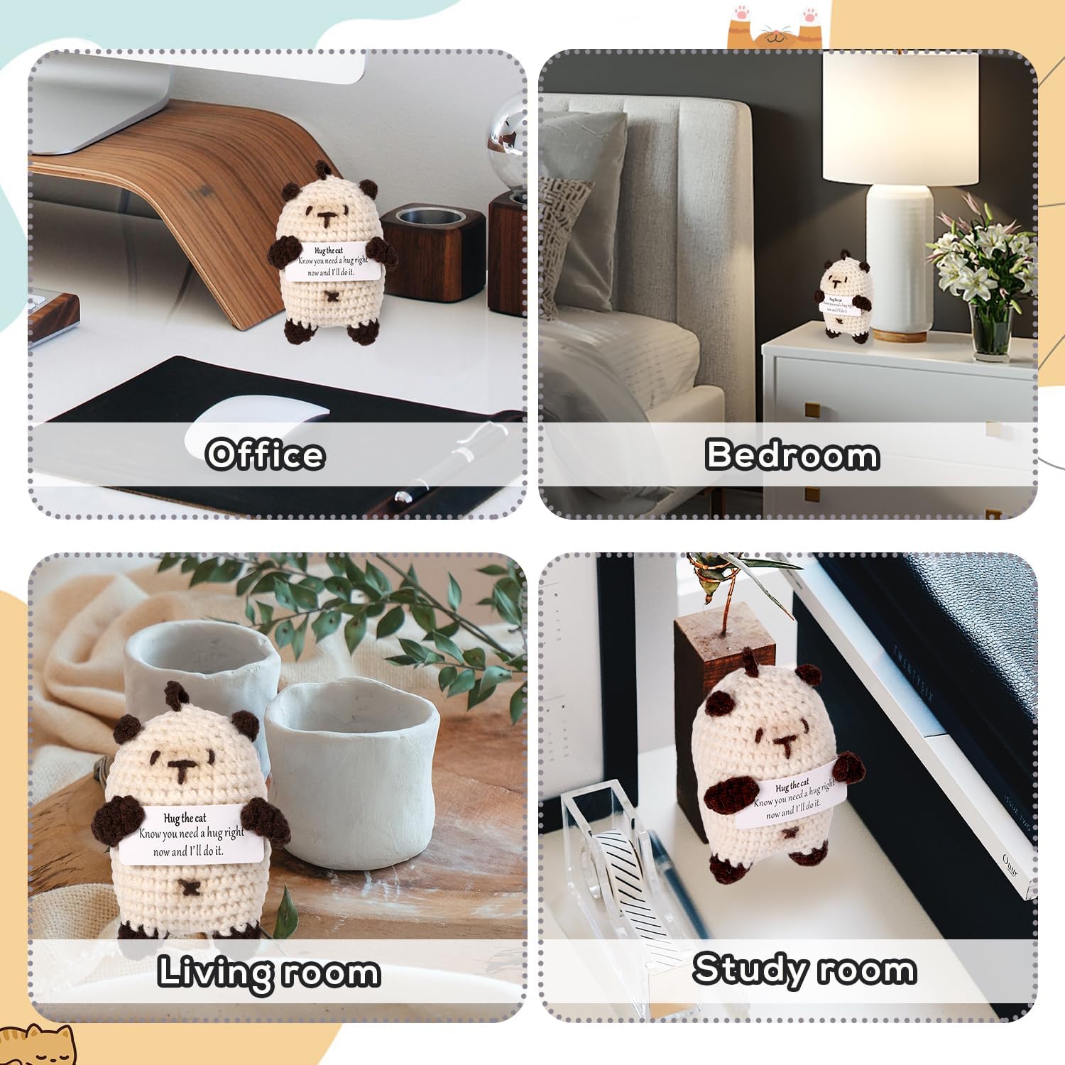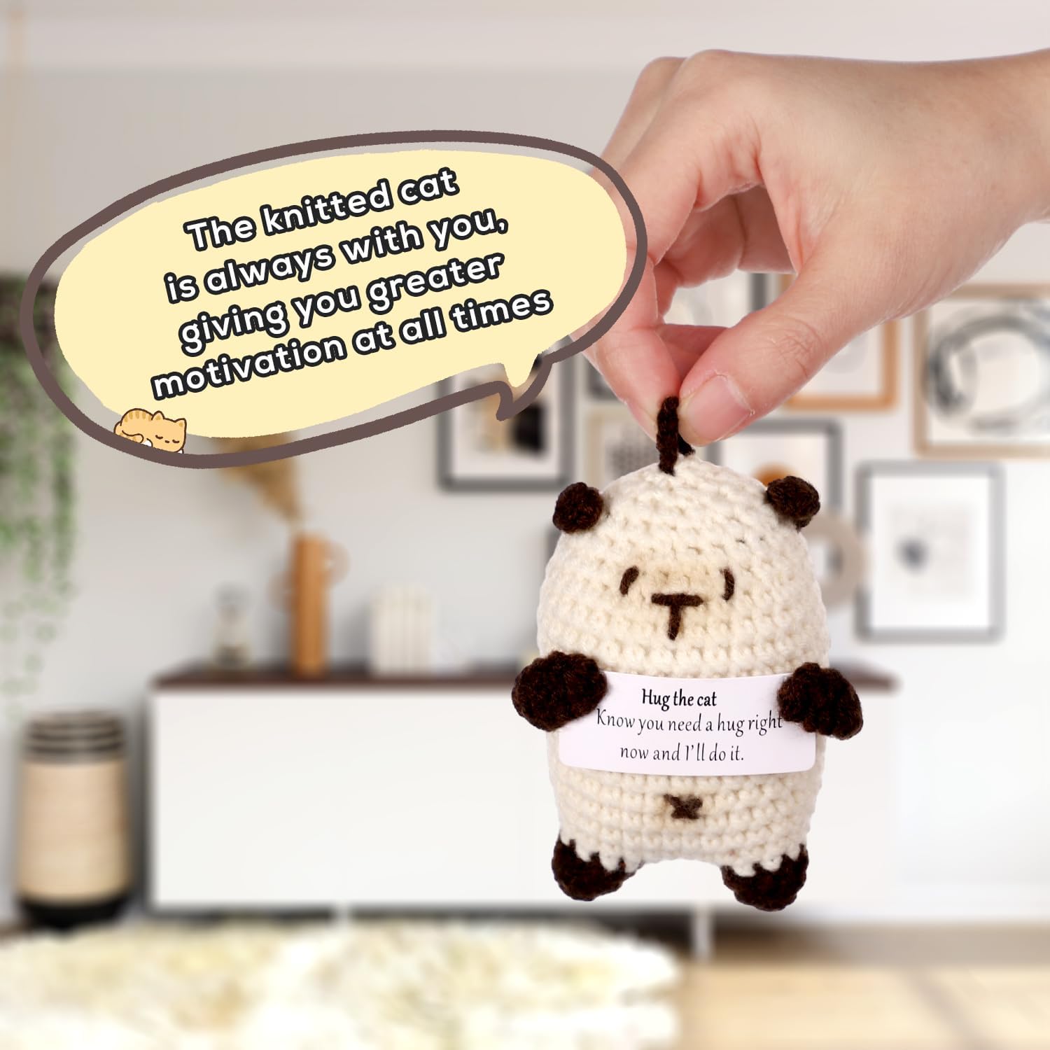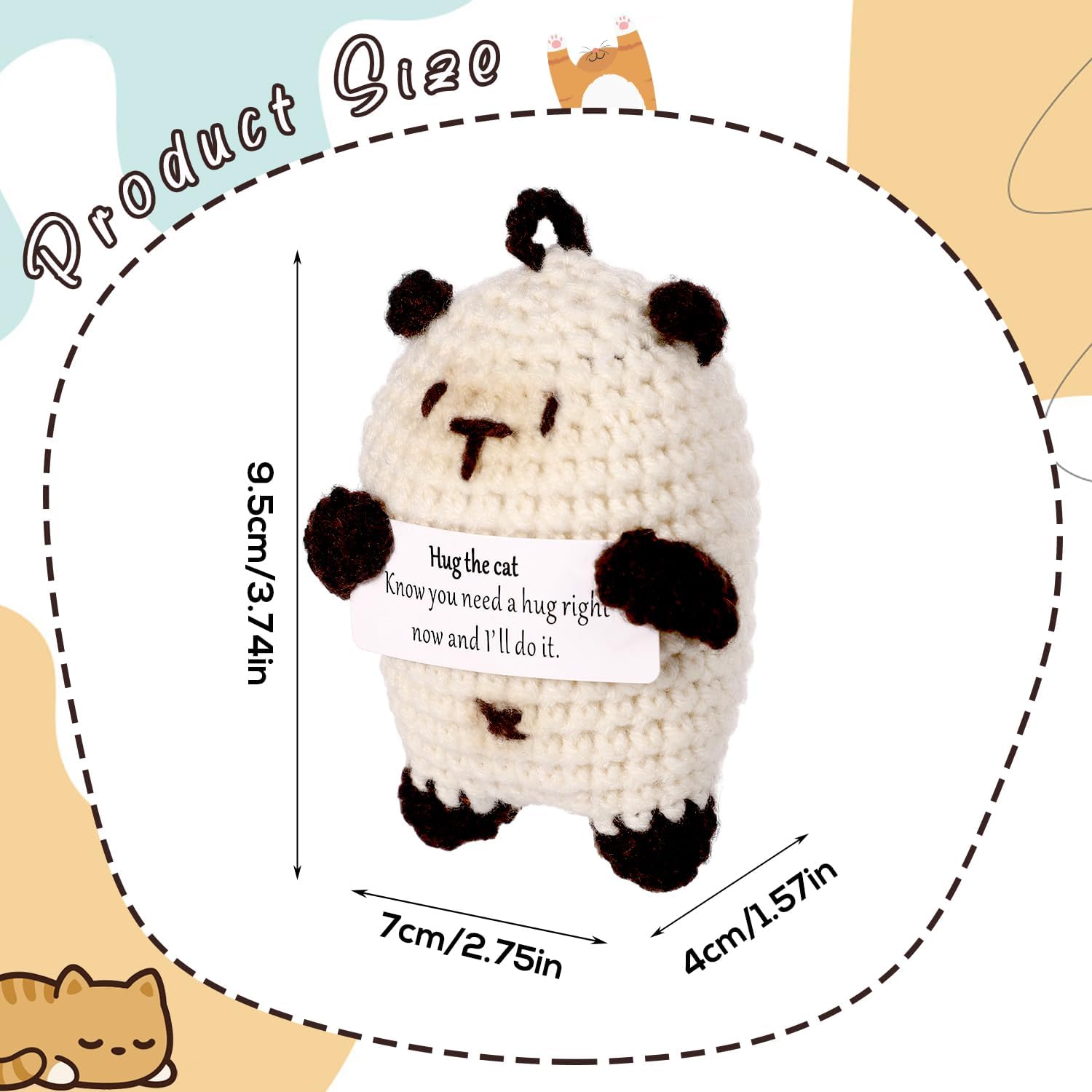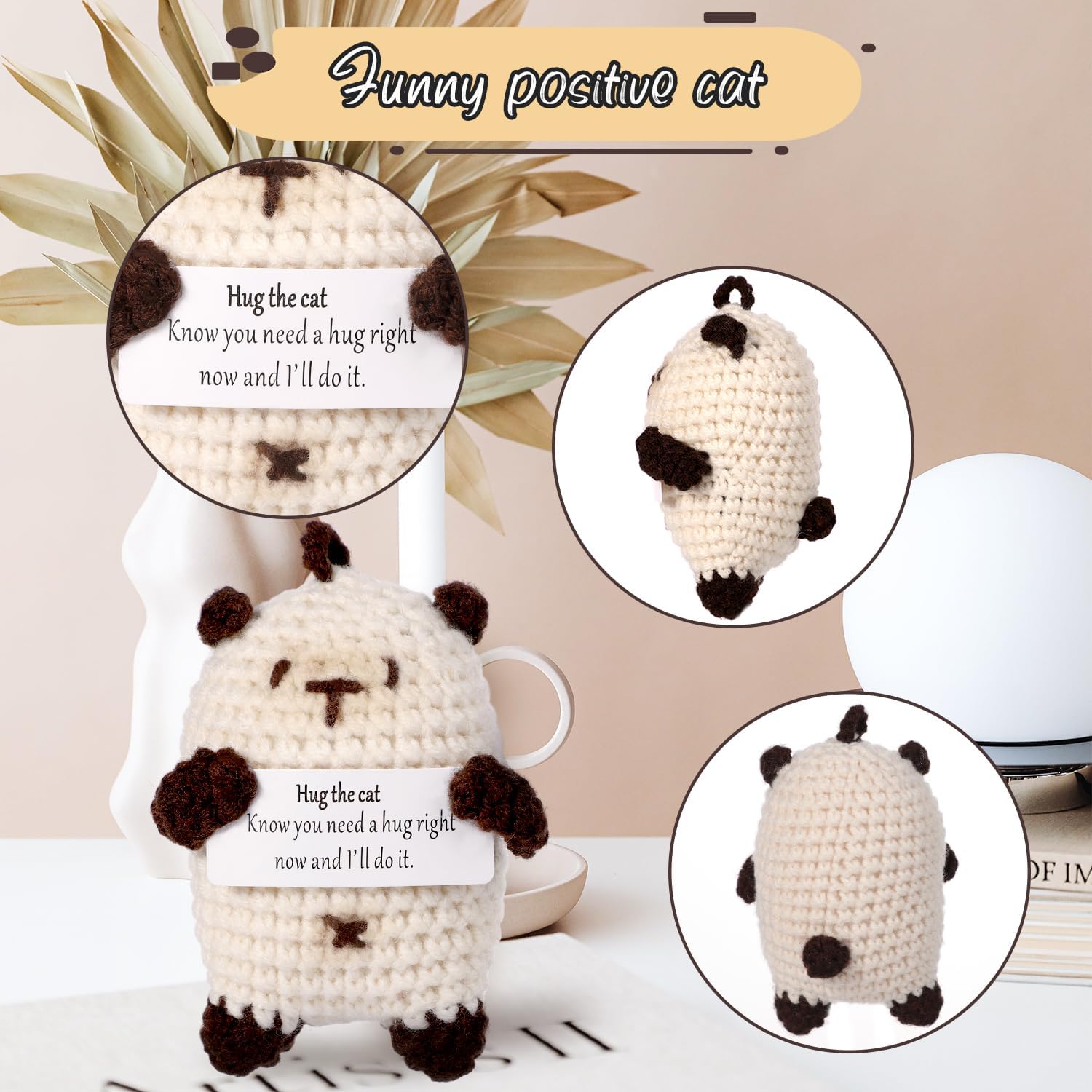 Contenuto del prodotto: riceverai 1 pezzo di gatto positivo con un biglietto con parole calde. Il gancio per gatti è come un amico, porterà incoraggiamento ovunque tu vada, ti porterà conforto e compagnia quando sei frustrato e preoccupato e ti accompagnerà per essere felici insieme quando sei felice. Incoraggiamento positivo: la nostra bambola a forma di gatto lavorata a maglia è così carina e presenta parole motivazionali "Sai che hai bisogno di un abbraccio in questo momento e lo farò". sulla mappa. Ti sentirai rilassato e felice quando li vedrai dopo essere tornato a casa da una dura giornata di lavoro. Materiale premium: il gatto positivo è realizzato in lana lavorata a maglia di alta qualità e cucito a mano per rendere la bambola più rotonda e piena, non facile da sbiadire, morbida e confortevole, delicata al tatto, con eccellente elasticità. Puoi usarla con sicurezza. Ampia applicazione: questa bambola per gatti lavorata a maglia non è solo un regalo divertente, ma può anche essere utilizzata come decorazione per la casa, l'ufficio e le feste. La dimensione adeguata lo rende facile da trasportare, puoi portarlo ovunque tu vada. Bel regalo: la bambola del gatto lavorata a maglia viene fornita con un biglietto di incoraggiamento, un caloroso promemoria per essere positivi e incoraggiare le persone a cui tieni. Può essere un bel regalo per la tua ragazza, fidanzato, marito, moglie, famiglia, figli e amici in occasione di compleanni, anniversari, San Valentino, festa della mamma, festa del papà, feste, festival e altro ancora.