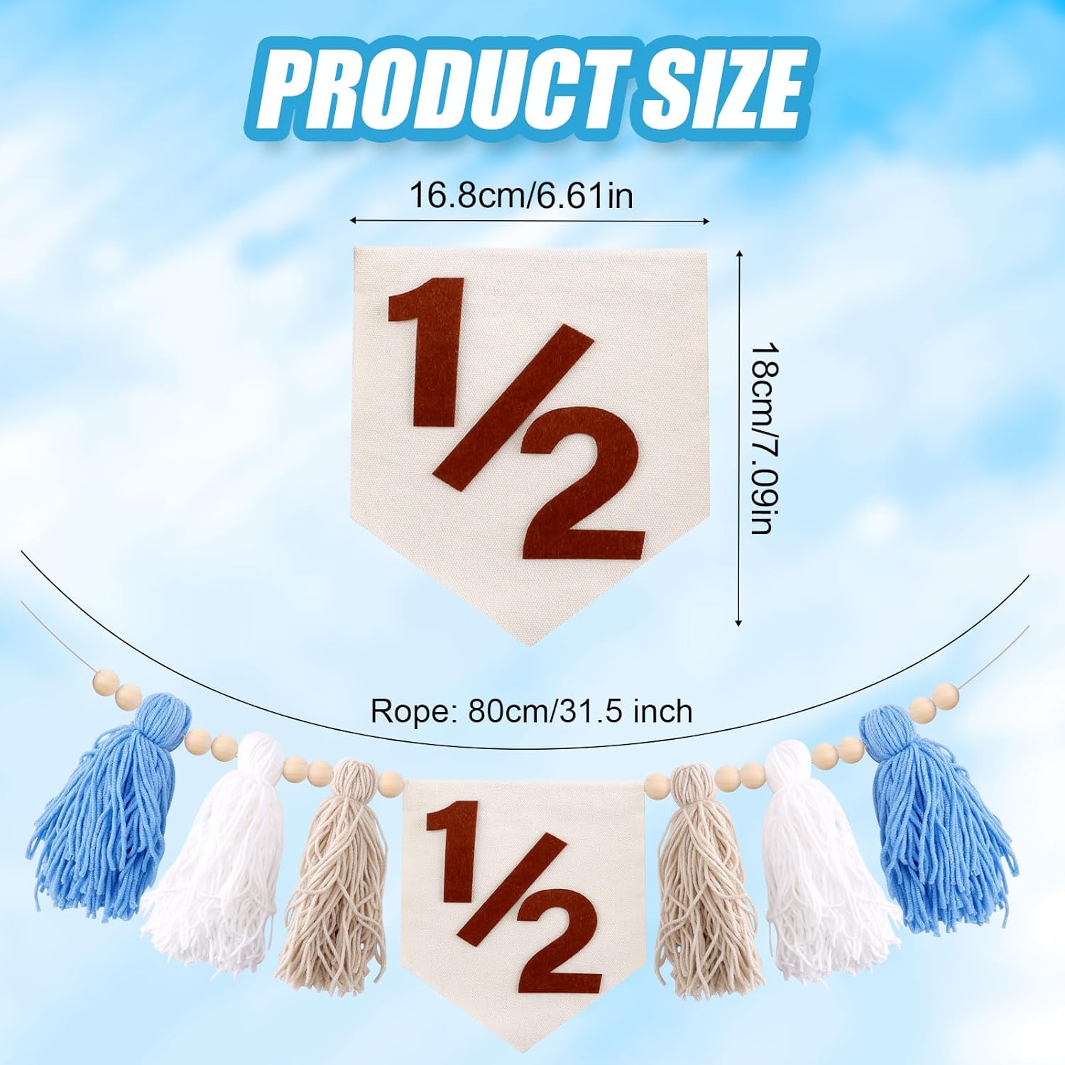 Elenco dei pacchetti: riceverai 1 pezzo di 1/2 Birthday High Chair Banner e 1 Cappello cono di compleanno di 1/2 compleanno, abbastanza per soddisfare le tue esigenze di decorazione. Materiale premium: queste decorazioni sono realizzate in tessuto premium, che è affidabile e resistente, non facile da danneggiare e sbiaditi, facili da pulire e mantenere e possono essere riutilizzate. Design fresco: il banner è realizzato con nappe in tessuto premium con squisita lavorazione.È abbinato ai colori blu, bianco e kaki.È semplice e bello ed è l'abbellimento perfetto per le feste di compleanno. Facile da decorare: questo banner non richiede l'assemblaggio, basta estrarlo, organizzarlo e appenderlo su un seggiolone, un muro o una finestra, una porta o in qualsiasi altro luogo che desideri decorare. Decorazioni perfette: i nostri stendardi di compleanno sono adatti per decorare seggioloni, finestre, pareti o come oggetti di fondo fotografici, adatti per i layout della festa di mezzo compleanno di vari ragazzi a tema e possono creare un'atmosfera vivace per feste.