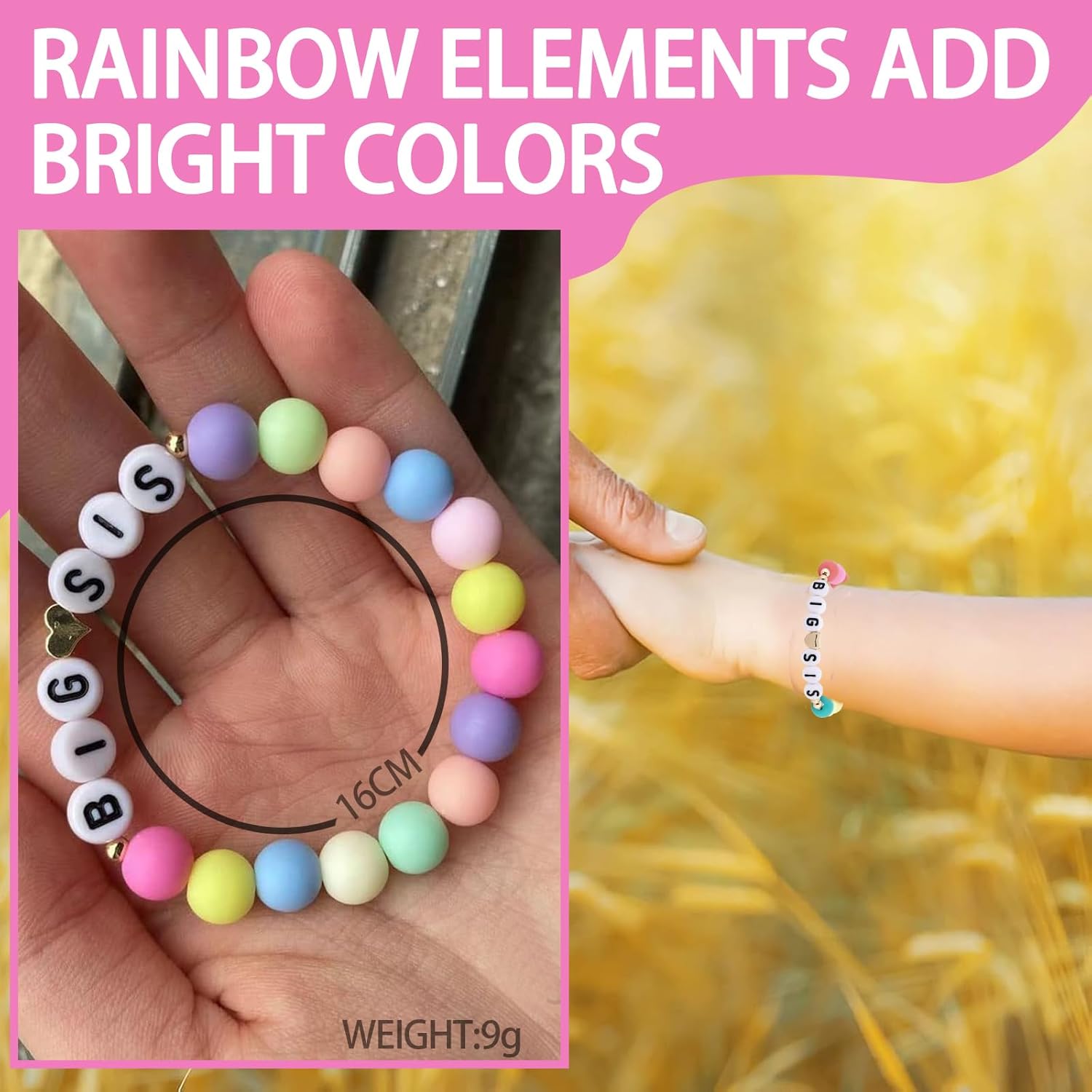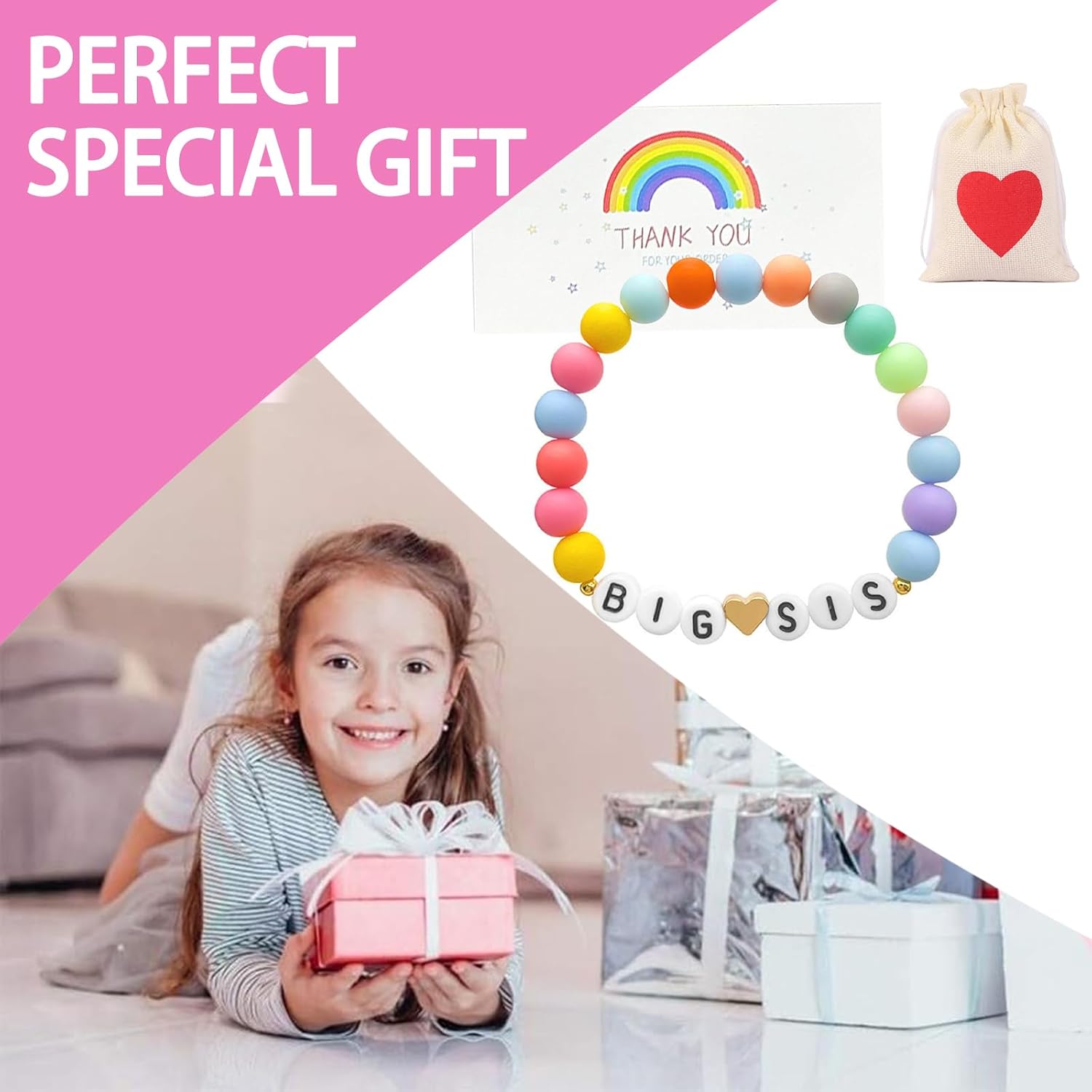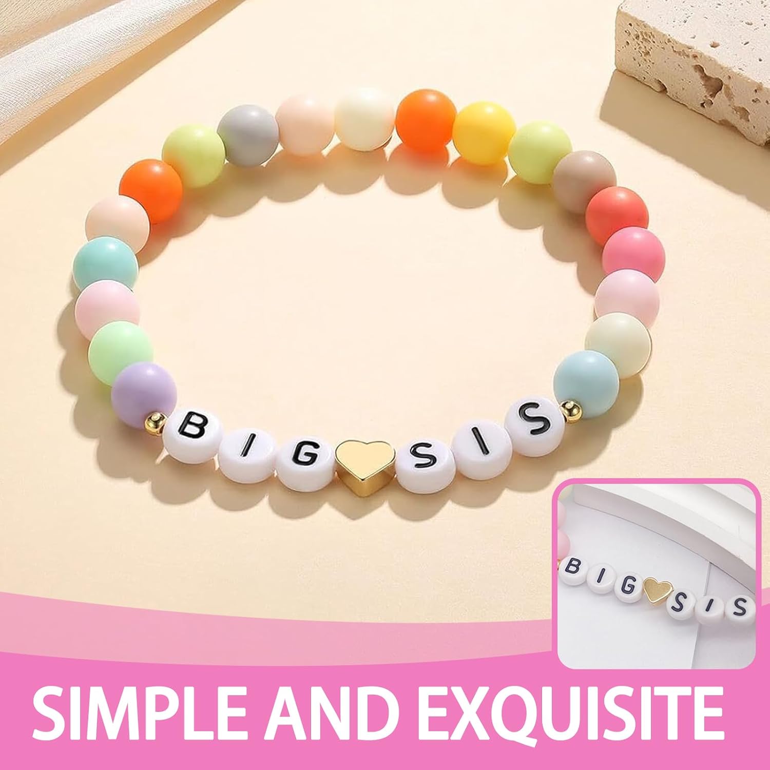REGALO PERFETTO PER LA SORELLA GRANDE: questo braccialetto è il regalo ideale per una nuova sorella maggiore. Ti ricorda il tuo ruolo importante e il legame speciale con tuo fratello. REGALO GRANDE SORELLA: Con la scritta incisa ""Big Sister"" questo braccialetto sorella squisitamente realizzato è elegante ed elegante. È l'accessorio perfetto per le ragazze. TAGLIA REGOLABILE: Con una comoda lunghezza di 16 cm, questo braccialetto elastico si adatta facilmente alla maggior parte delle ragazze. È semplicissimo da indossare e da togliere senza doversi preoccupare di trovare la taglia giusta. BELLISSIMA CONFEZIONE: ogni regalo per sorella maggiore viene fornito con un biglietto dal design accattivante. Esprime calorose congratulazioni e incoraggiamento per la sorella maggiore. La confezione premurosa aggiunge una dose extra di amore ed eccitazione. Le tue figlie lo adoreranno. IDEA REGALO VERSATILE: questo regalo per sorella maggiore è adatto non solo per annunciare un nuovo fratello, ma anche per annunci di gravidanza e rivelazioni sul genere. Celebra il legame tra sorelle e porta gioia in ogni occasione speciale