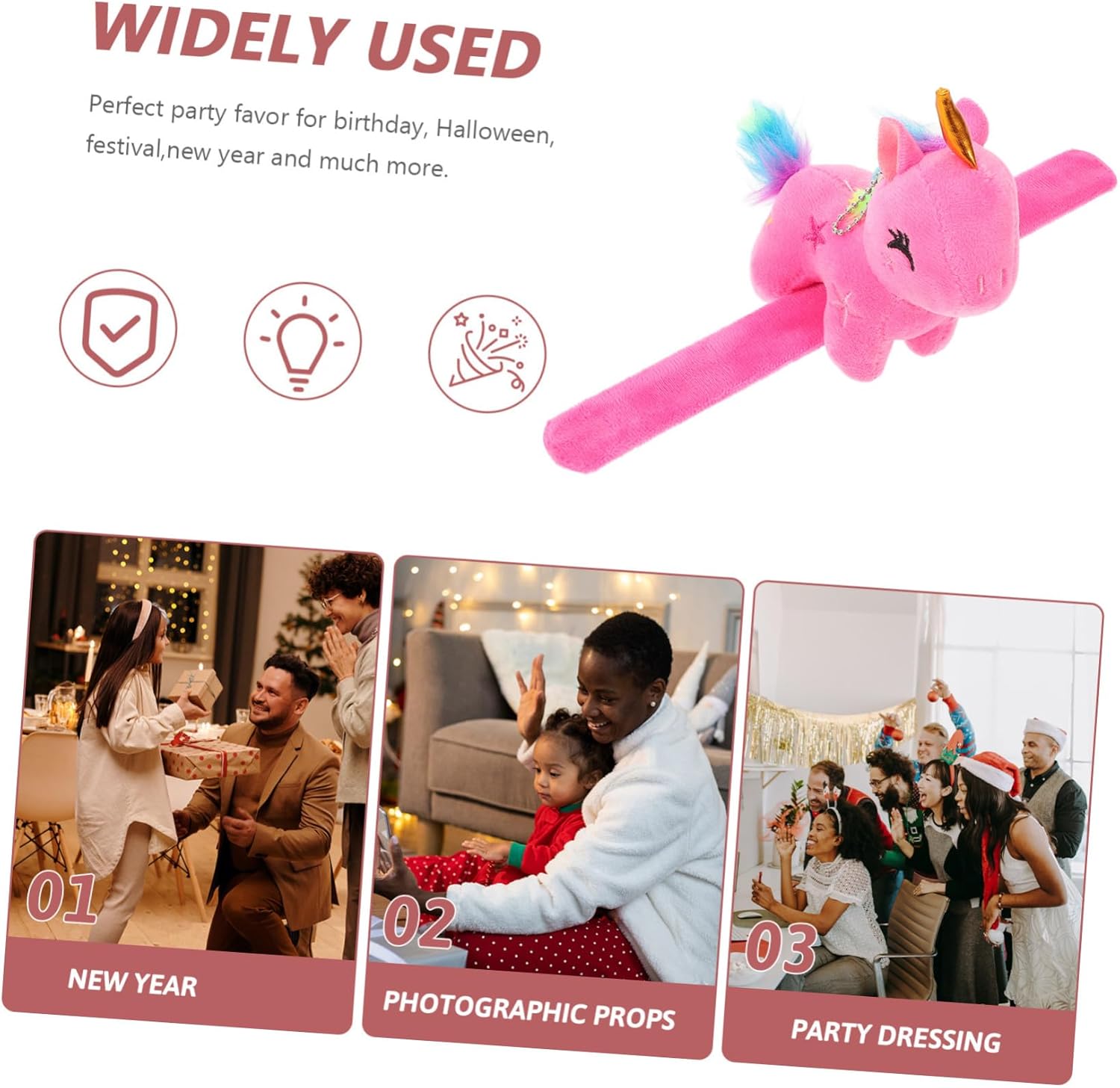 Peluche animali: regalo perfetto per feste di compleanno, Halloween, Natale, Pasqua, Capodanno e altro ancora, braccialetti schiaffo per feste Bracciale rigido unicorno: progettato con un decoro di unicorno imbottito, questo braccialetto a battitore è carino e carino e ha buoni effetti decorativi Braccialetti decorativi: il braccialetto a battitore può essere facilmente avvolto attorno al polso con un battitore, facile e comodo da usare, braccialetto con animali di peluche
