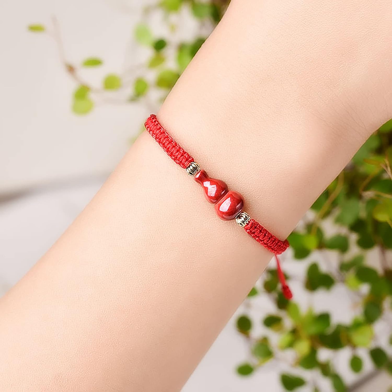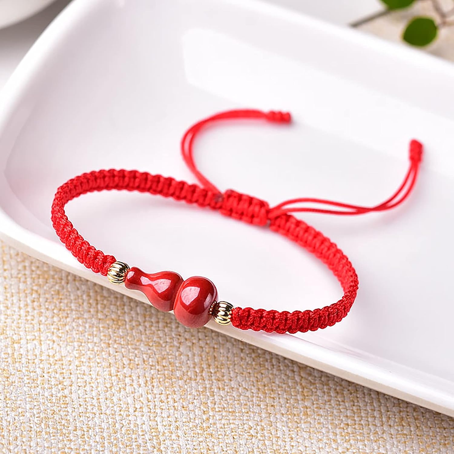 Bracciale Bracciale Ricchezza Bracciale Corda Rossa Bracciale Pietra Cinnabro Naturale Bracciale Intrecciato Wu Lou/Zucca Bracciale Buddista Fatto A Mano Talismano Regolabile Attirare Buona Fortuna Cinnabro Cinnabro