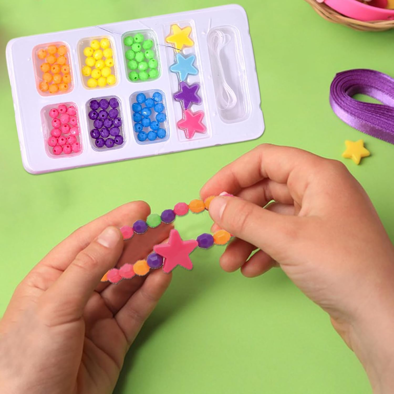 Creative Skill Builder: The Elastic String Bracciale Design promuove il miglioramento delle abilità motorie fine mentre bambini e adulti vengono coinvolti in gioco creativo con una selezione diversificata di perle colorate per perfezionare efficacemente le loro capacità di abbinamento del colore Facilità d'uso per tutte le età: dotate di una guida illustrativa dettagliata, queste perle consentono la facilità senza strumenti e l'apprendimento rapido delle competenze, offrendo un'esperienza creativa che aumenta la fiducia perfetta per i giovani artigiani di età pari o superiore a 3 e oltre Design per bambini: con particolare attenzione ai colori vibranti e all'estetica giocosa, queste perle sono realizzate per soddisfare le esigenze di abbigliamento quotidiano mentre incoraggiano le interazioni sociali attraverso la creatività condivisa nella creazione di braccialetti Presente adatto: progettato per coinvolgere giovani menti, le perle vantano stile giocoso e sono conservate in compartimenti ordinati, offrendo un fascino per bambini istantaneo e fungendo da un delizioso regalo per le vacanze pronto per esperienze di fabbricazione memorabili Standard di sicurezza approvati dai genitori: ingegnerizzati con proprietà resistenti ai e superfici raffinate, queste perle per i braccialetti consentono l'usabilità estesa e favoriscono la fiducia nei genitori sulla sicurezza dei loro figli durante la manipolazione