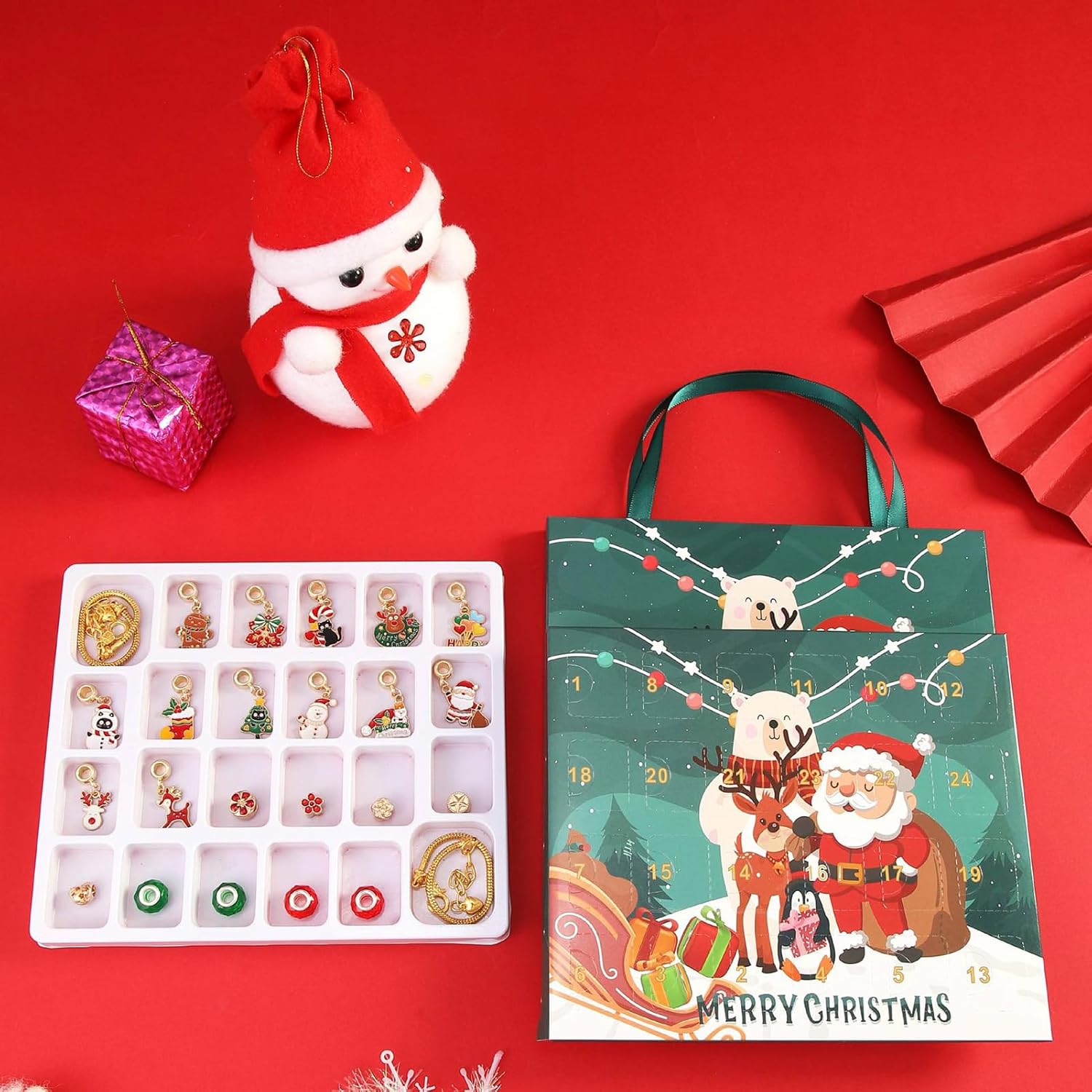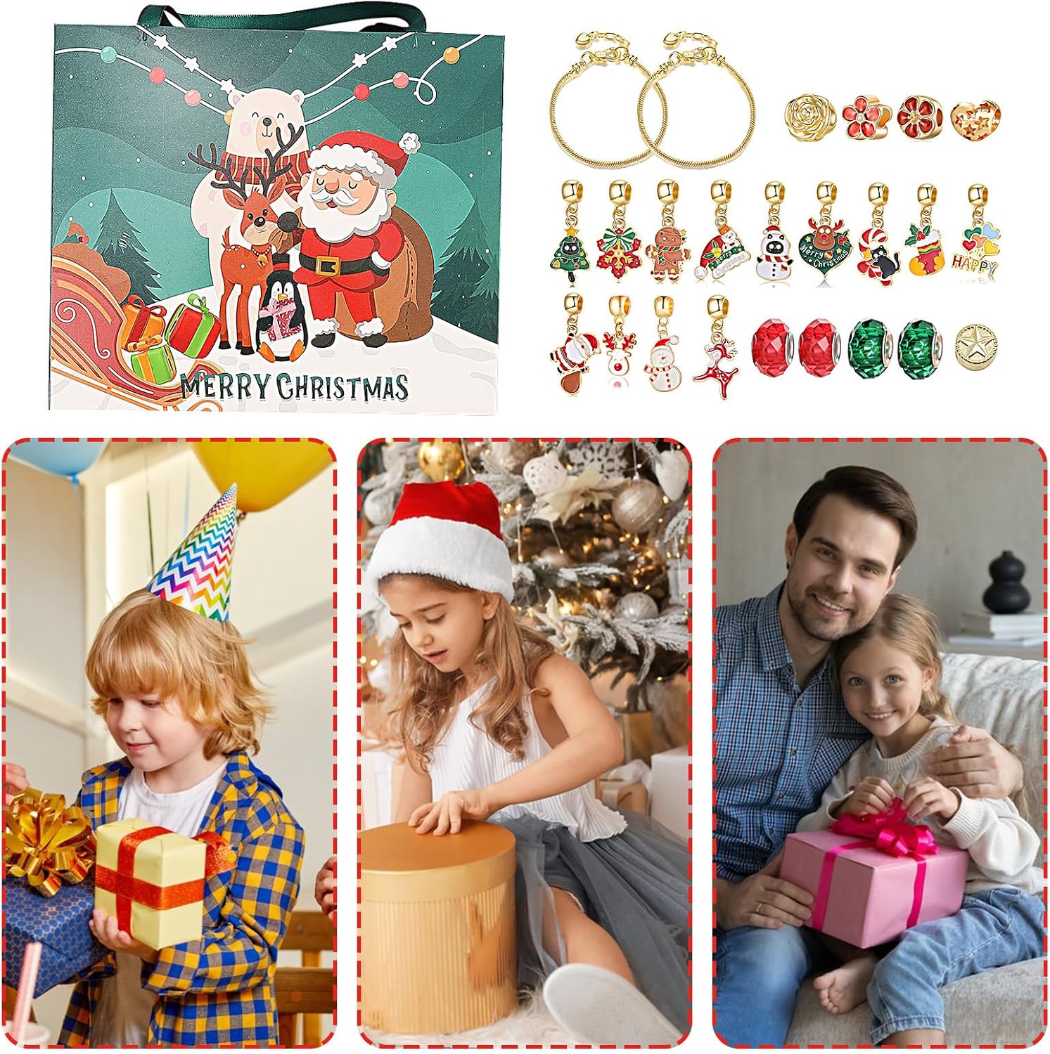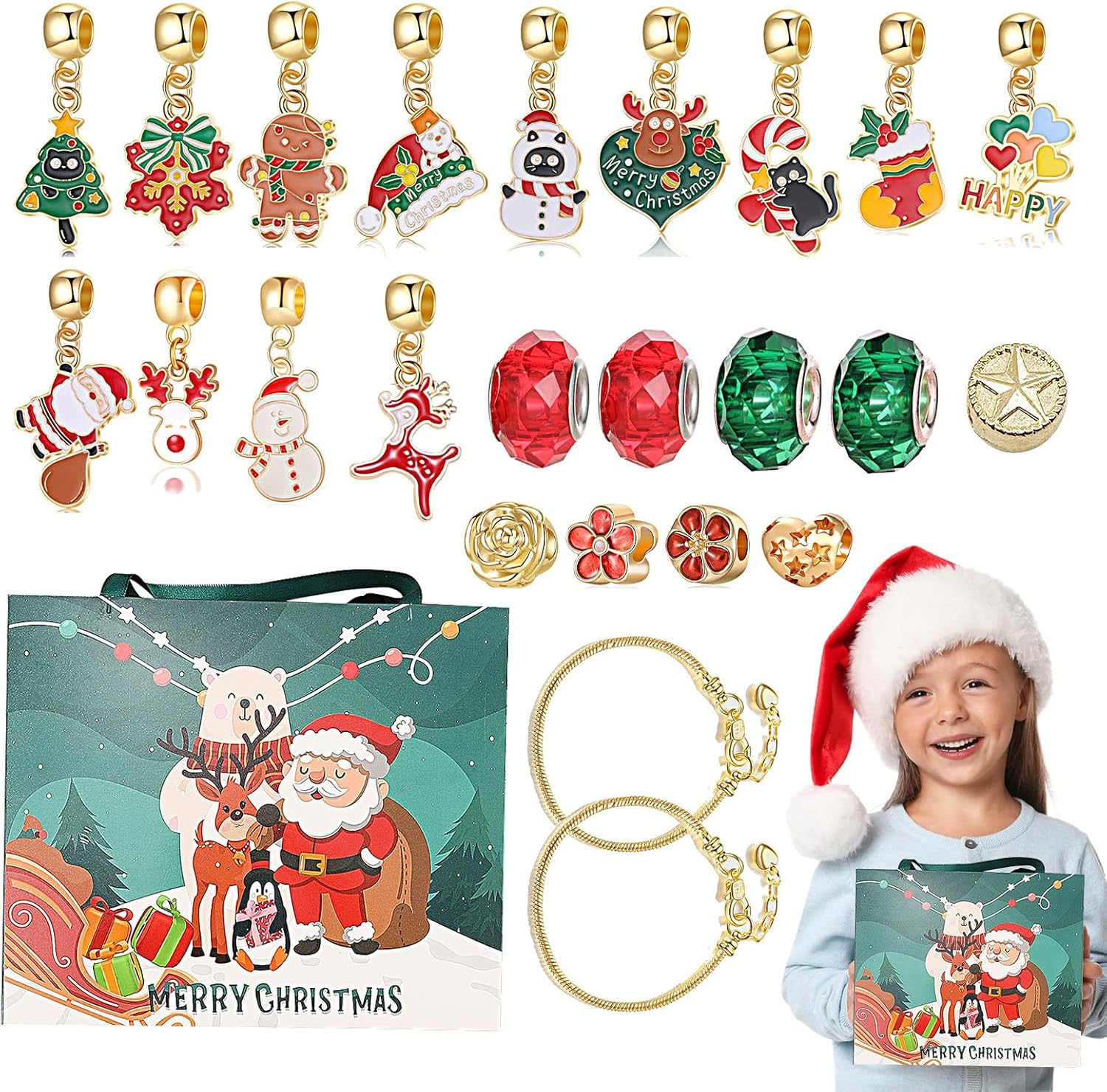 Aumenta la creatività: trasforma i momenti di legame con la famiglia in attività creative e significative. Crea fantastici accessori fatti a mano con il nostro braccialetto con calendario natalizio ed espandi la tua immaginazione per progettare vari ciondoli e collane Offre molteplici caratteristiche: aggiungi gioia alle tue celebrazioni di conto alla rovescia di Natale con un fantastico e splendido gioiello, rendendo ogni giorno speciale mentre ti avvicini a Natale Un set completo: con un set completo di 22 accessori con motivi natalizi, il braccialetto del calendario natalizio ti consente di aggiungere un tocco festivo e creare il tuo fantastico braccialetto. Abbinalo ai 2 braccialetti forniti e migliora il tuo gioco di moda per le vacanze come mai prima d'ora Facile da trasportare: il nostro braccialetto con calendario natalizio è sapientemente realizzato con un materiale leggero, che lo rende facile da indossare e trasportare ovunque il bambino vada. Lascia che brillino luminosi durante le festività natalizie Resistente all'usura e agli strappi: realizzato in lega, questo braccialetto sicuro e regolabile è liscio, inodore e robusto, garantendo che rimanga un accessorio prezioso durante le festività natalizie