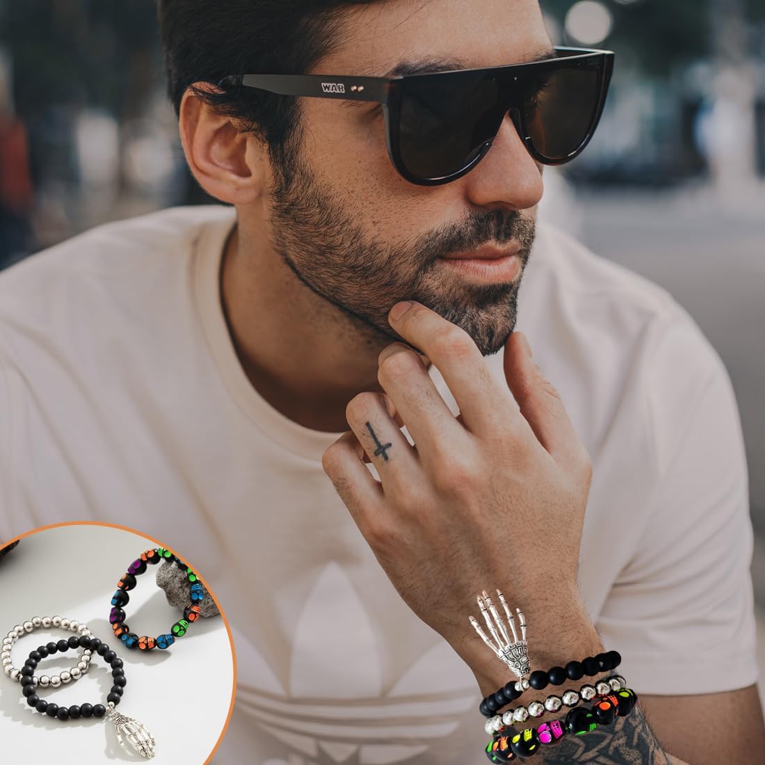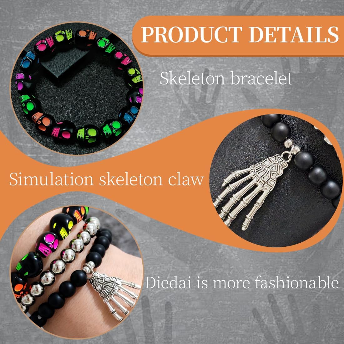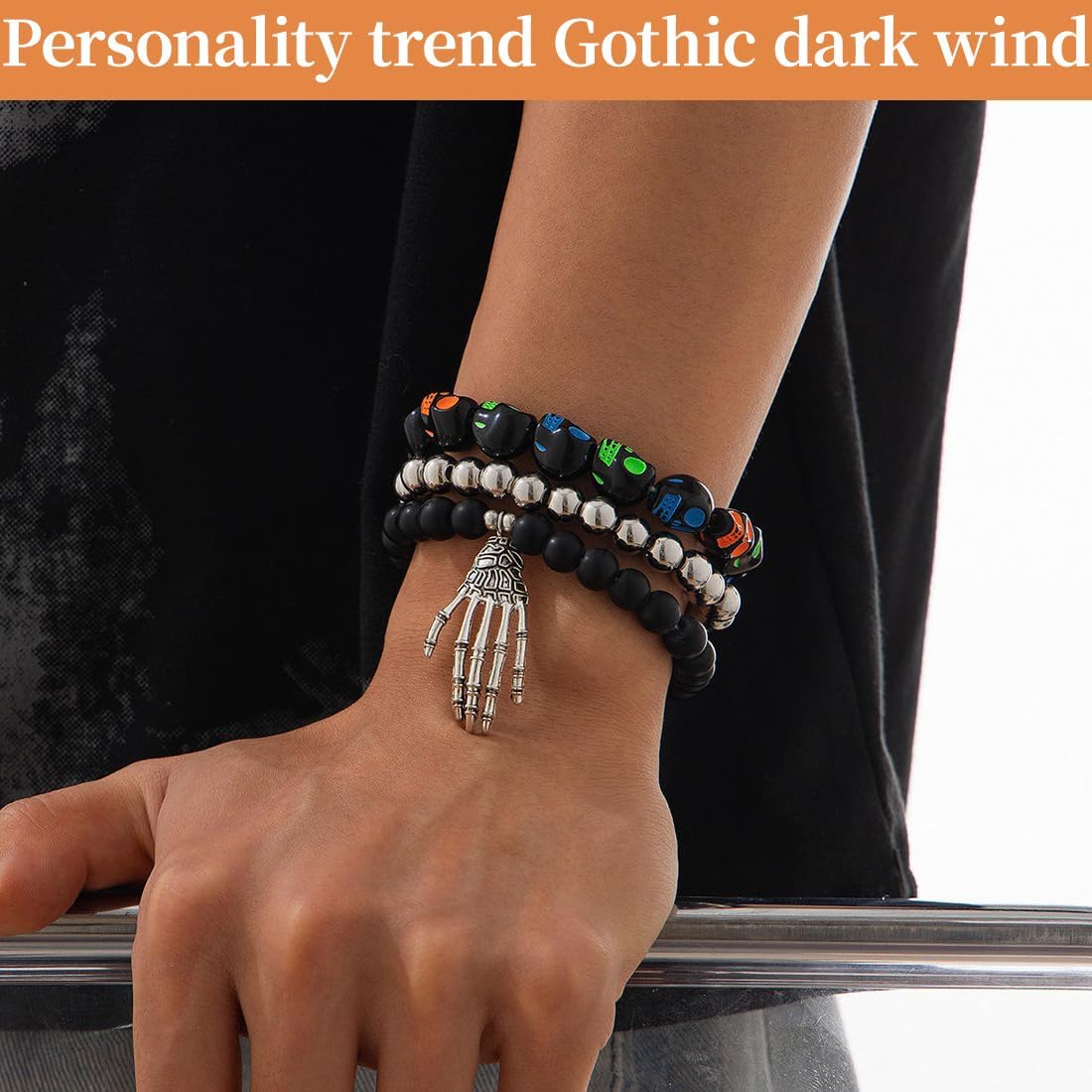 Design unico: questo braccialetto presenta un design accattivante con un teschio elegante, aggiungendo un tocco di personalità al tuo look. È perfetto per chi cerca accessori originali e distintivi, soprattutto durante la stagione degli accessori di Halloween. Materiale ipoallergenico: realizzato in filato acrilico elastico, questo braccialetto è ipoallergenico e resistente all'appannamento. Pensato per essere indossato a lungo senza provocare irritazioni alla pelle, è ideale anche per i più piccoli, come braccialetto per bambini. Versatilità d'Uso: Adatto a tutte le occasioni, il bracciale può essere indossato sia durante eventi formali che durante le uscite quotidiane. Si abbina perfettamente sia ad outfit casual che eleganti, rendendolo un accessorio versatile da avere nel guardaroba. Regalo perfetto: questo braccialetto è la scelta ideale per sorprendere tua moglie, fidanzata o migliore amica in occasioni speciali come San Valentino, Natale, compleanni o anniversari. Il suo design unico farà sicuramente scalpore! Stile accattivante: il nostro braccialetto con teschio si abbina facilmente a vari stili di abbigliamento, rendendolo un accessorio molto attraente per ogni amante della moda. Che sia per un look casual o per uno stile più elaborato, questo braccialetto non passerà inosservato.