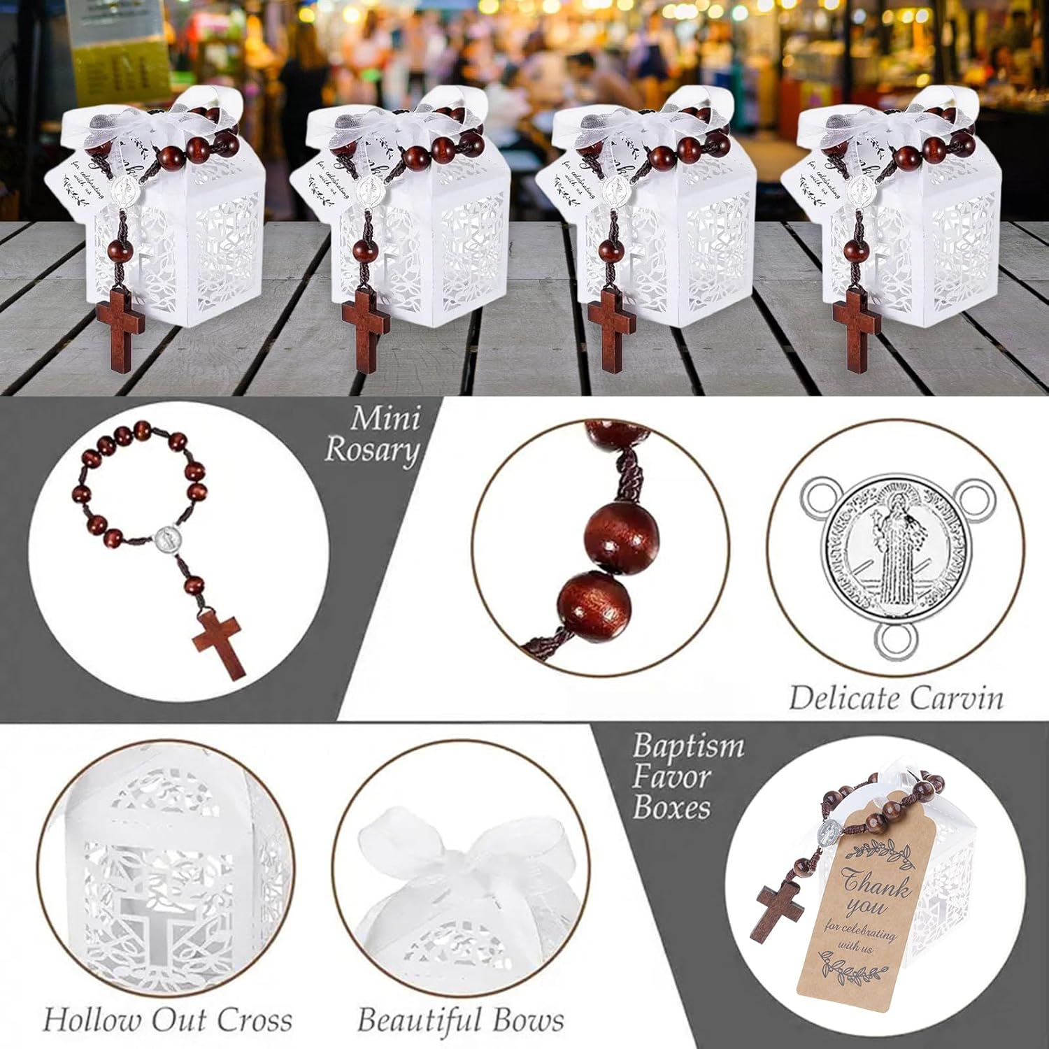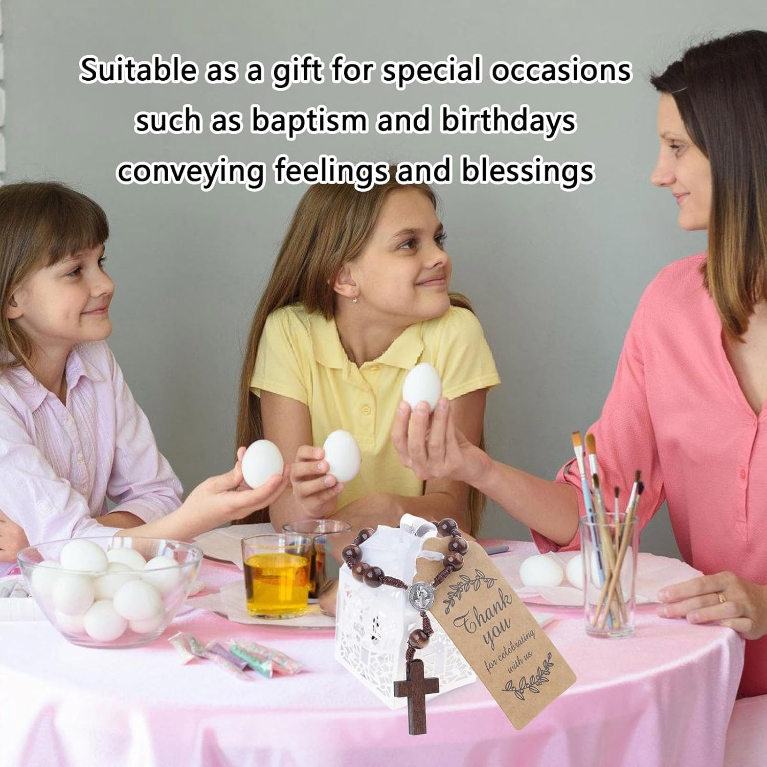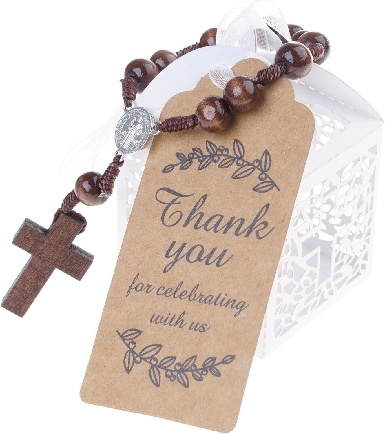 Adatto alle persone che frequentano le cerimonie dei battesimi o cercano un regalo speciale per i per i loro compleanni o eventi speciali Ideale per i credenti cristiani che celebrano i battesimi, le conferme o i devozionali quotidiani, questi braccialetti unisex servono come ringraziamento personalmente e un dono religioso Le perle legno artigianali incrociano i braccialetti che combina un comfort leggero con simbolismo religioso, presenta materiali naturali e un design intricato Questi set possono indossare durante la cerimonia dei battesimi o come accessori quotidiani, aggiungendo un tocco carineria all'outfit del bambino. La scatola splendidamente confezionata è conveniente per trasporto e la conservazione delicato pattern croci, perle legno e imballaggi pronti per regalo qualità (scatola carta Hollowout, buste organza, carta ringraziamento) accessori spirituali significativi