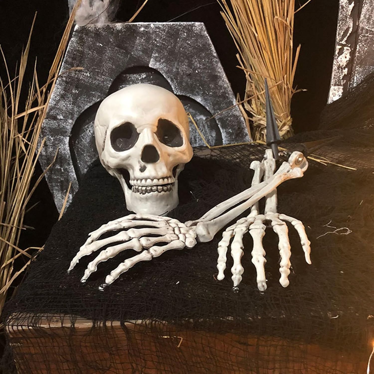 3. Materiale durevole: realizzati in plastica di alta qualità, questi oggetti di scena sono robusti e resistenti alle intemperie, garantendo un uso duraturo sia all'interno che all'esterno. 1. Design realistico: il nostro set di puntelli per scheletro di Halloween presenta una cornice scheletro in plastica realistica con un inserto a terra, creando un'atmosfera per le tue decorazioni di Halloween. 2. Versatile: utilizzare questi oggetti di scena scheletro come scenario decorativo o ornamenti per feste di Halloween, case o esposizioni in cortile. Sono perfetti per creare un osso.