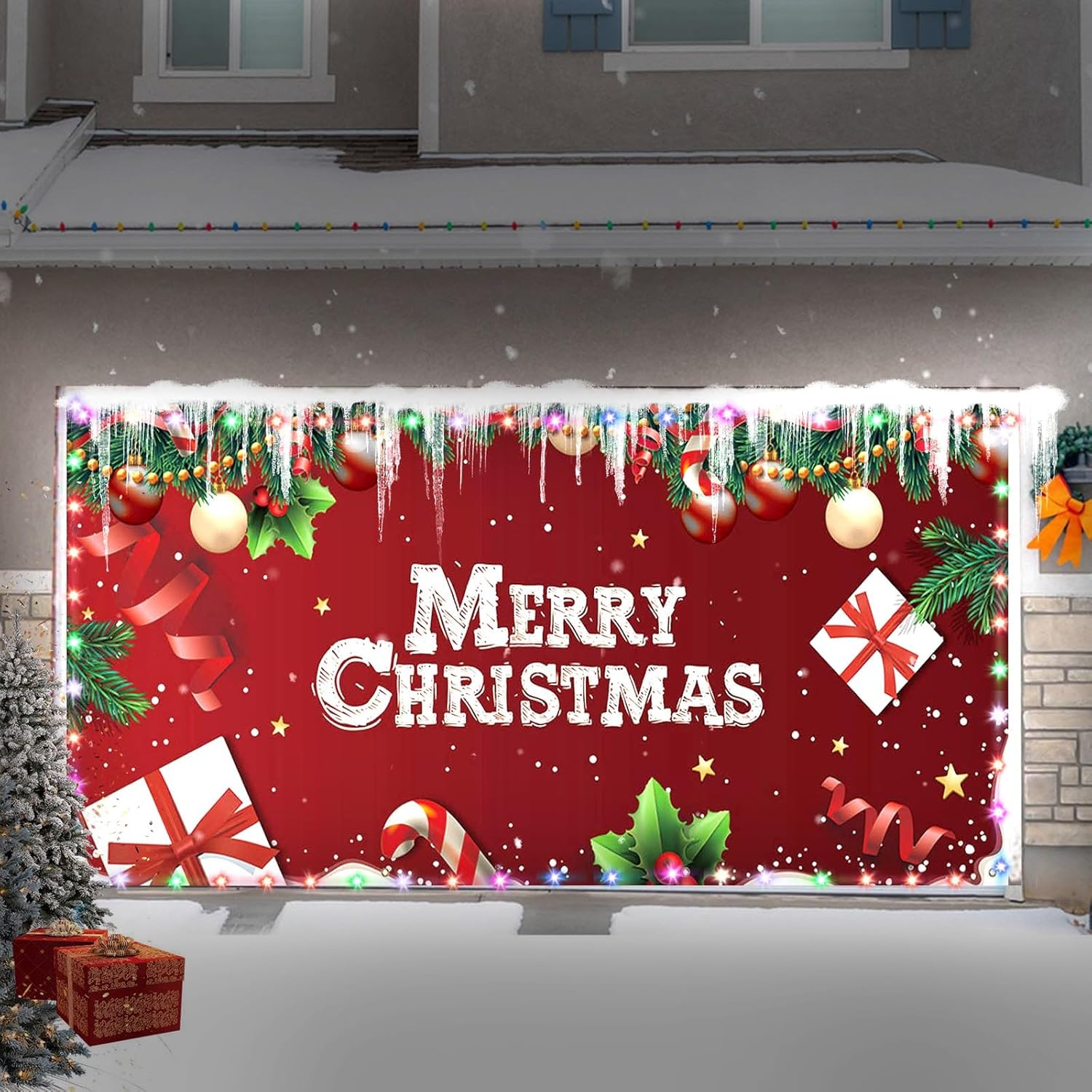 Durevole e: realizzato con materiali di alta qualità, il nostro striscione natalizio per porta del garage è progettato per resistere a varie condizioni meteorologiche e durare per tutta la stagione delle vacanze. Festività festive: trasforma la porta del tuo garage con il nostro striscione natalizio per porta del garage da 18 x 4,2 m con un design a forma di gnomo natalizio. Inverno: crea un inverno stravagante con questa grande decorazione natalizia, perfetta per aggiungere un tocco festivo alla tua casa. Luci a LED incluse: il nostro Natale viene fornito con luci a LED, fornendo un bagliore magico per un'atmosfera festosa e incantevole. Facile installazione: basta appendere il banner sulla porta del garage utilizzando i ganci e l'adesivo inclusi, consentendo una rapida e semplice installazione.
