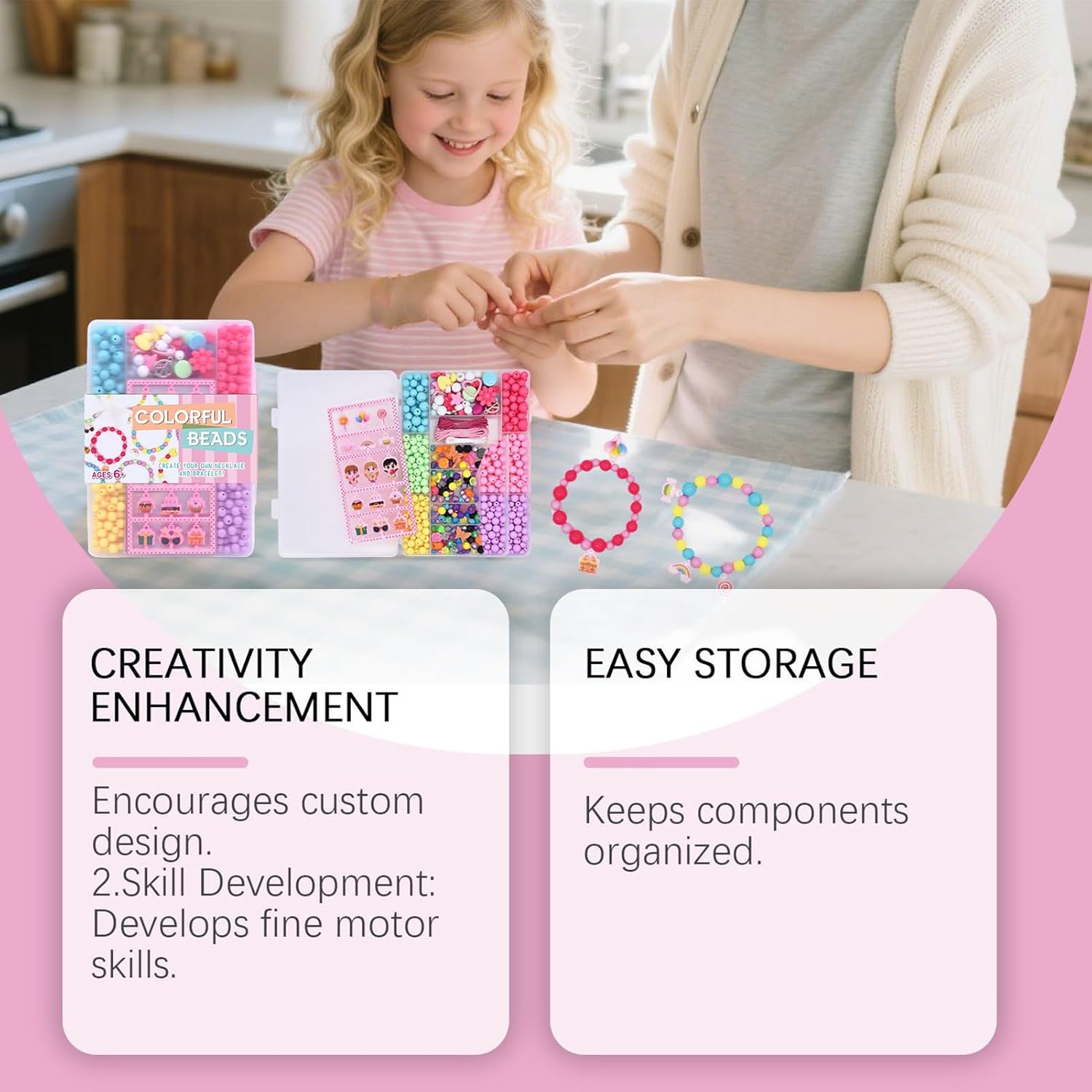 Varietà di colori per i disegni: le perline per braccialetti aprono possibilità artistiche con la loro ricca selezione di colori, ideali per la creazione di gioielli a tema che evidenzia gli stili speciali durante le feste allegre Gestione intelligente delle perle: la scatola portaoggetti progettata elimina il caos e consente un rapido accesso agli accessori per gioielli per un'esperienza di bricolage fluida in qualsiasi luogo della casa Strumento di apprendimento creativo: questo set di perline da polso favorisce la coordinazione occhio-mano attraverso attività coinvolgenti come il filo delle perline, consente ai bambini di migliorare le capacità motorie e il riconoscimento dei modelli in un ambiente divertente e creativo, ideale per giochi al chiuso e progetti educativi Accattivanti progetti artigianali: fili di nylon morbidi e perline grandi ideali favoriscono mani calme e concentrazione, offrono un metodo stimolante per sviluppare la pazienza e i bambini mentre creano accessori speciali per la casa o gli eventi scolastici Regalo creativo fatto a mano: i braccialetti con perline consentono a chi lo indossa di esprimere emozioni attraverso disegni creativi e migliorare le connessioni personali in occasioni festive mentre si adattano perfettamente alle diverse atmosfere di festa per uno sviluppo della coscienza condivisa