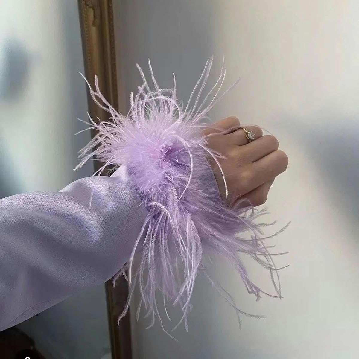 Braccialetto con Piume di Struzzo, Polsini a Maniche Lunghe in Pelliccia con Piume per Abbigliamento da Festa da Donna, Moda, Polsini con Piume Vere-BORDEANGO-Solo Uno