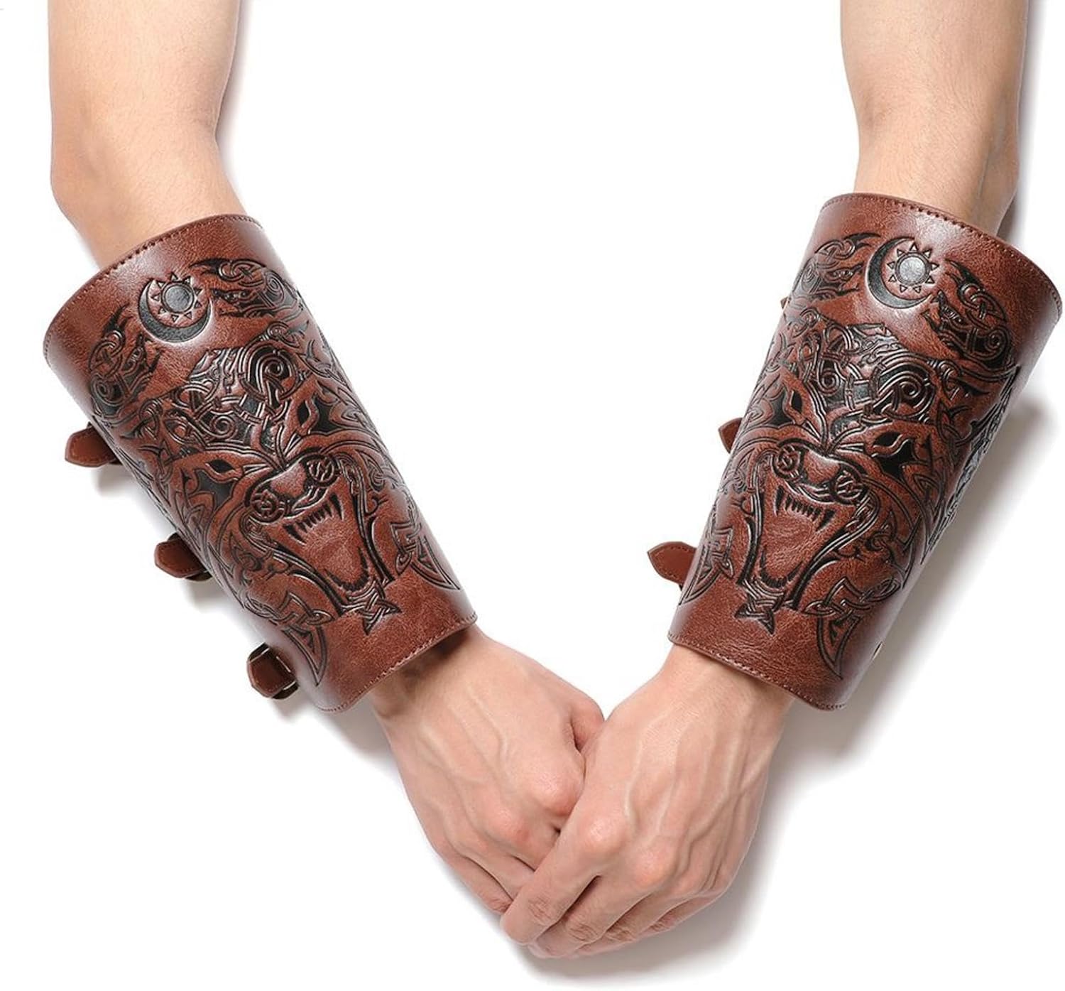 Bracciali medievali, 1 paio di bracciali da cavaliere per cosplay, in pelle PU, larghezza regolabile, in rilievo, per costume rinascimentale