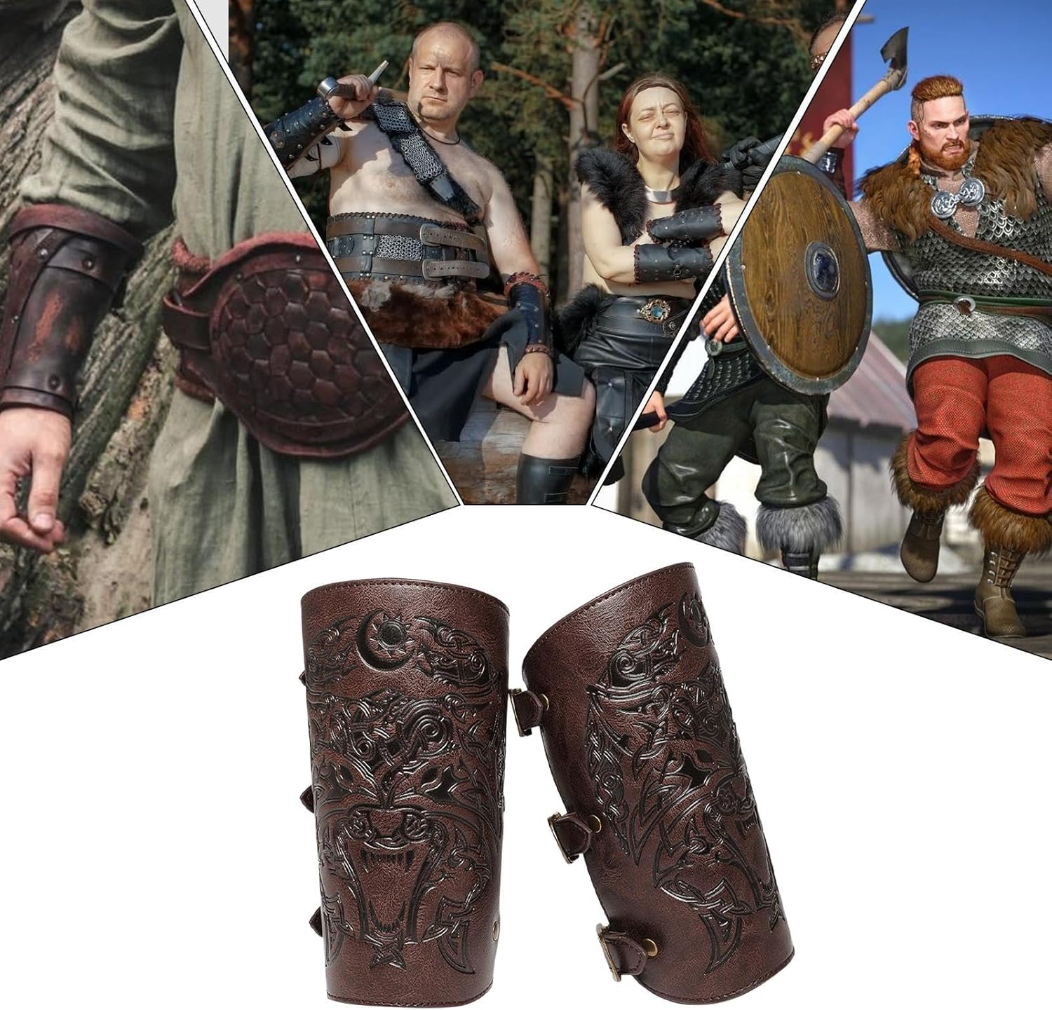 Bracciali medievali, 1 paio di bracciali per cosplay in pelle PU, stile vintage, larghezza regolabile, in rilievo, per costume rinascimentale