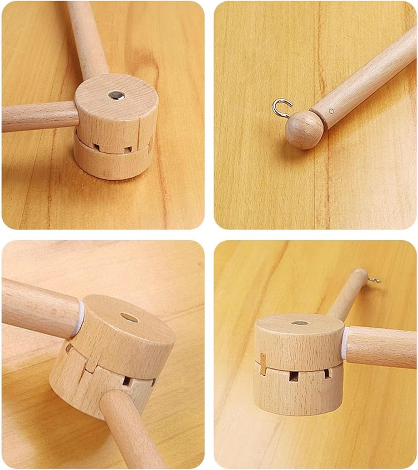 Questo supporto per giostrina per culla è realizzato in legno di faggio, levigato liscio, naturale, non verniciato. È 100% ecologico, legno biologico e sarà una bella aggiunta al set della culla del tuo bambino. Questo supporto è appositamente progettato per culle senza sponde laterali, non è limitato dalla distanza tra le sponde, può essere fissato solo sul bordo del letto. . La parte superiore dell'appendiabiti è stata aggiornata a una rotazione orizzontale e verticale di 360°, per soddisfare le esigenze dei diversi spazi. È possibile ritrarlo per riporlo in modo compatto quando non è in uso. Facile da installare: le nostre mani sono gli strumenti migliori! Questo appendiabiti mobile per culla è incredibilmente facile da collegare e assemblare in pochi minuti. . Basta ruotarlo, fissarlo alla base del supporto e utilizzare la manopola per fissare il braccio mobile della culla al lato del letto. Non c'è bisogno di strumenti complicati!.
