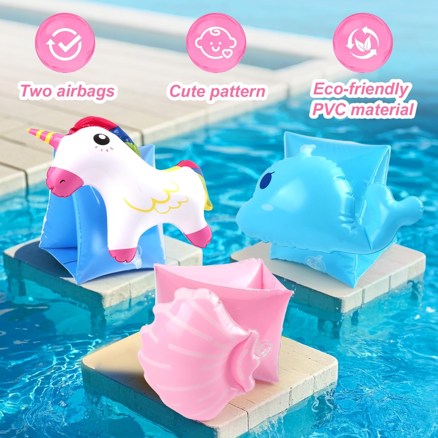 Aiuto al galleggiamento sicuro: il nostro aiuto al galleggiamento per bambini è una soluzione sicura sviluppata per bambini di età compresa tra 3 e 6 anni. Adotta materiali atossici per garantire la sicurezza e la salute del tuo bambino. Doppie camere d'aria per la massima sicurezza: I nostri braccioli sono dotati di due camere d'aria indipendenti per garantire la massima galleggiabilità. Mantiene il 50% di galleggiabilità anche in caso di malfunzionamento, il che lo rende un aiuto al galleggiamento ideale per i principianti. Design confortevole e delicato sulla pelle: la tecnologia delle cuciture lisce Braccioli evita l'attrito, il materiale traspirante garantisce il massimo comfort e i bordi morbidi aumentano il comfort. Lasciate che i bambini si divertano: le simpatiche immagini dei nostri braccioli acquatici stupiranno i bambini mentre nuotano. Due valvole di sicurezza impediscono la perdita d'aria. Il braccioli bambini è anche pieghevole, perfetto per i viaggi. Capacità di carico: questo ausilio al galleggiamento è stato testato e si è rivelato adatto a bambini di età compresa tra 3 e 6 anni (meno di 30 kg). I braccioli crescono con il bambino, garantendogli una vestibilità perfetta e un sostegno al galleggiamento.