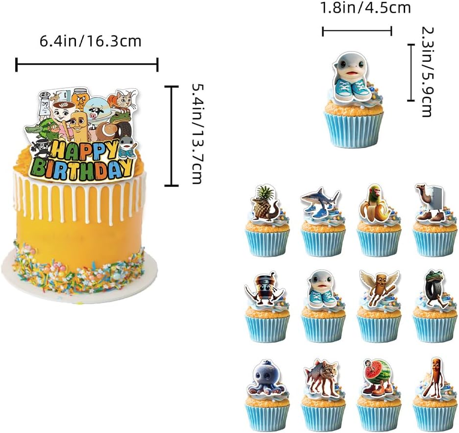 La confezione include: 1 set di banner, 1 topper per torte, 16 palloncini in lattice, 12 topper per cupcake Materiali: i nostri palloncini di compleanno sono realizzati in lattice, molto resistenti e sicuri, striscioni e decorazioni per torte sono realizzati in cartoncino riutilizzabile e resistente Design unico: presenta elementi colorati e divertenti a tema animali Brainrot. Tutti gli accessori sono progettati esclusivamente. Il tuo piccolo lo adorerà ed è sicuro di essere un successo Suggerimento: si consiglia di gonfiare il palloncino in lattice dell'80%. L'eccessiva inflazione può causare l'esplosione del palloncino. Forse ci sarà un odore unico di lattice, metterlo in un luogo ventilato per 1-2 giorni e sarebbe meglio Bomboniere perfette per feste: adatte per feste di compleanno, feste di amici e occasioni di festa, queste decorazioni per feste possono portare gioia alla tua festa preparata con cura