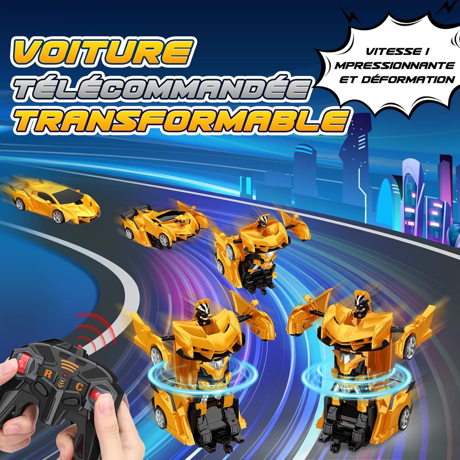 👍【2,4 GHz per precisione e portata ottimali】 Goditi un controllo ultra reattivo con il nostro telecomando da 2,4 GHz, che offre una portata di 50 metri e una potente tecnologia anti-interferenza. Ideale per i giochi indoor e outdoor, garantisce un divertimento fluido e senza interruzioni, anche in prossimità di altri dispositivi elettronici. 🤖【Trasformazione istantanea con una sola pressione】 Lascia che la magia accada! Con un solo tocco, la nostra auto trasformabile passa facilmente dalla modalità auto telecomandata alla modalità robot, aggiungendo un tocco di eccitazione al gioco. I bambini adoreranno questa transizione senza sforzo e le possibilità fantasiose che offre. 🌞【Rotazione a 360° e spettacoli acrobatici】 Progettato per chi ama il brivido! Le sue ruote multidirezionali consentono una rotazione a 360°, per trick spettacolari e movimenti agili. Sia in modalità auto che robot, l'azione non si ferma mai! 💖【Costruzione in ABS resistente per la massima sicurezza】 Realizzata in plastica ABS di alta qualità con pneumatici in gomma ammortizzanti, questa macchina trasformabile resiste agli urti e al gioco intenso. I suoi bordi lisci e il design robusto garantiscono sicurezza ottimale e ore di gioco senza preoccupazioni per i bambini dai 3 ai 12 anni. 🎁【Regalo Ideale per Giovani Avventurieri】 Un regalo ideale per ragazzi dai 3 ai 12 anni, da regalare per un compleanno o per le vacanze! Combinando innovazione, durata e interattività, questa macchina trasformabile stimola la creatività e offre ore di divertimento. Vedrai i loro occhi illuminarsi quando padroneggeranno trasformazioni e acrobazie!