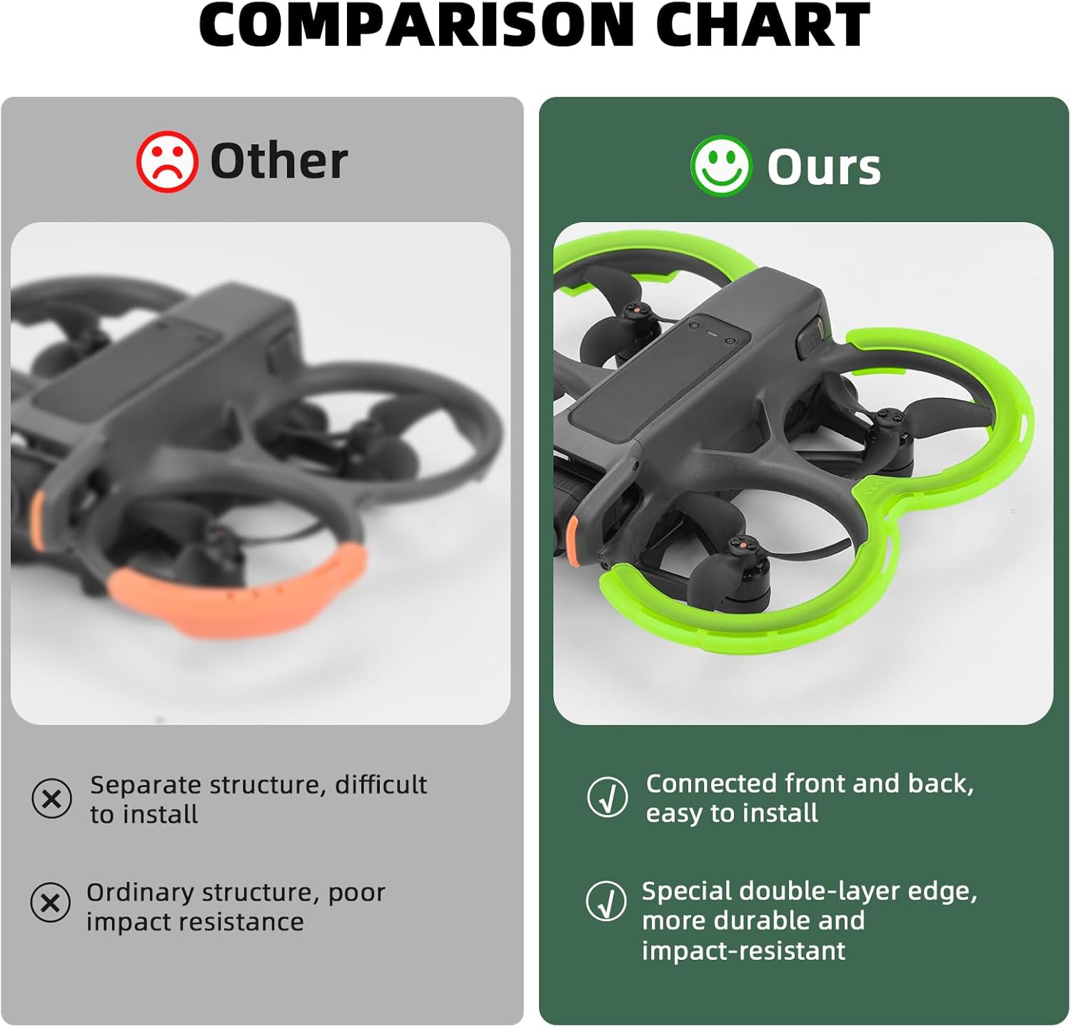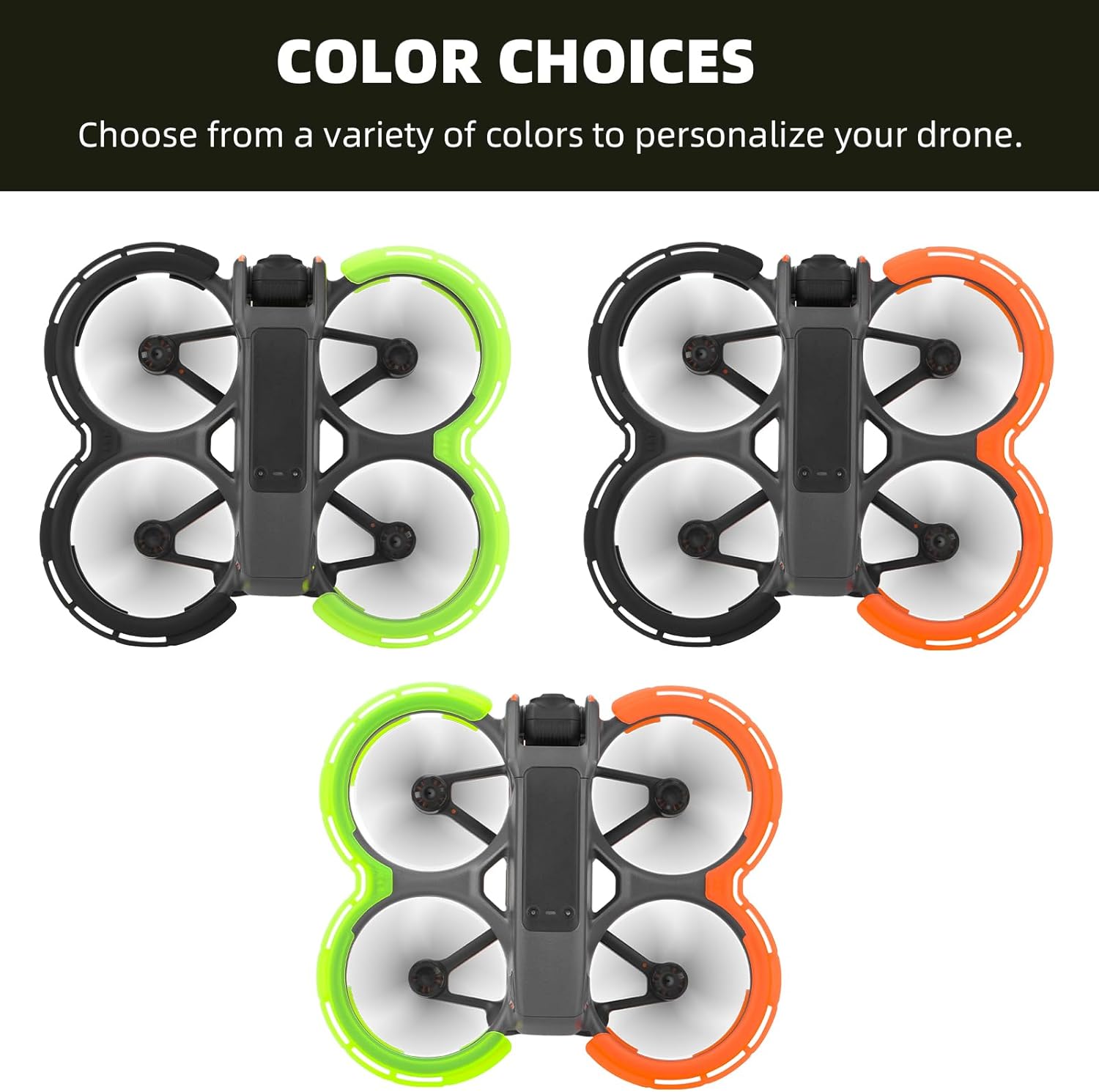 Protezione insuperabile per Avata 2 - Progettate appositamente per Avata 2 Fly More Combo, queste protezioni per eliche Avata 2 prevengono danni ai droni dovuti a collisioni, ne prolungano la durata e forniscono la massima protezione di sicurezza. Tecnologia dei materiali avanzata: le nostre protezioni per paraurti avata 2 sono realizzate in TPU resistente con una struttura del bordo a doppio strato che assorbe efficacemente gli urti. Queste protezioni cardaniche Avata 2 forniscono una protezione impareggiabile, prevenendo danni da collisioni accidentali con alberi, muri o altri ostacoli, rendendoli un accessorio essenziale per i principianti. INSTALLAZIONE IN UN UNICO PASSAGGIO SENZA ATTREZZI - Installa le nostre protezioni per eliche sul tuo Avata 2" in pochi secondi. Queste protezioni sono dotate di chiare istruzioni di montaggio e si fissano perfettamente senza graffiare il corpo del drone o danneggiare il copriobiettivo e altri componenti. Design ultraleggero, nessun impatto sul volo - Il design leggero garantisce un volo più libero e agile senza sottoporre il drone Avata 2 a sforzi aggiuntivi. Non influisce sul tempo di volo e garantisce stabilità ed elevata resistenza agli urti, rendendo il volo più confortevole e senza preoccupazioni. Integrazione, maggiore durata: le nostre protezioni per paraurti Avata 2 presentano un design coerente anteriore e posteriore che non solo è facile da installare, ma migliora anche la resistenza e la stabilità complessive della configurazione del tuo drone in modo da poter volare con sicurezza. Scegli tra una varietà di colori per un'esperienza di volo personalizzata
