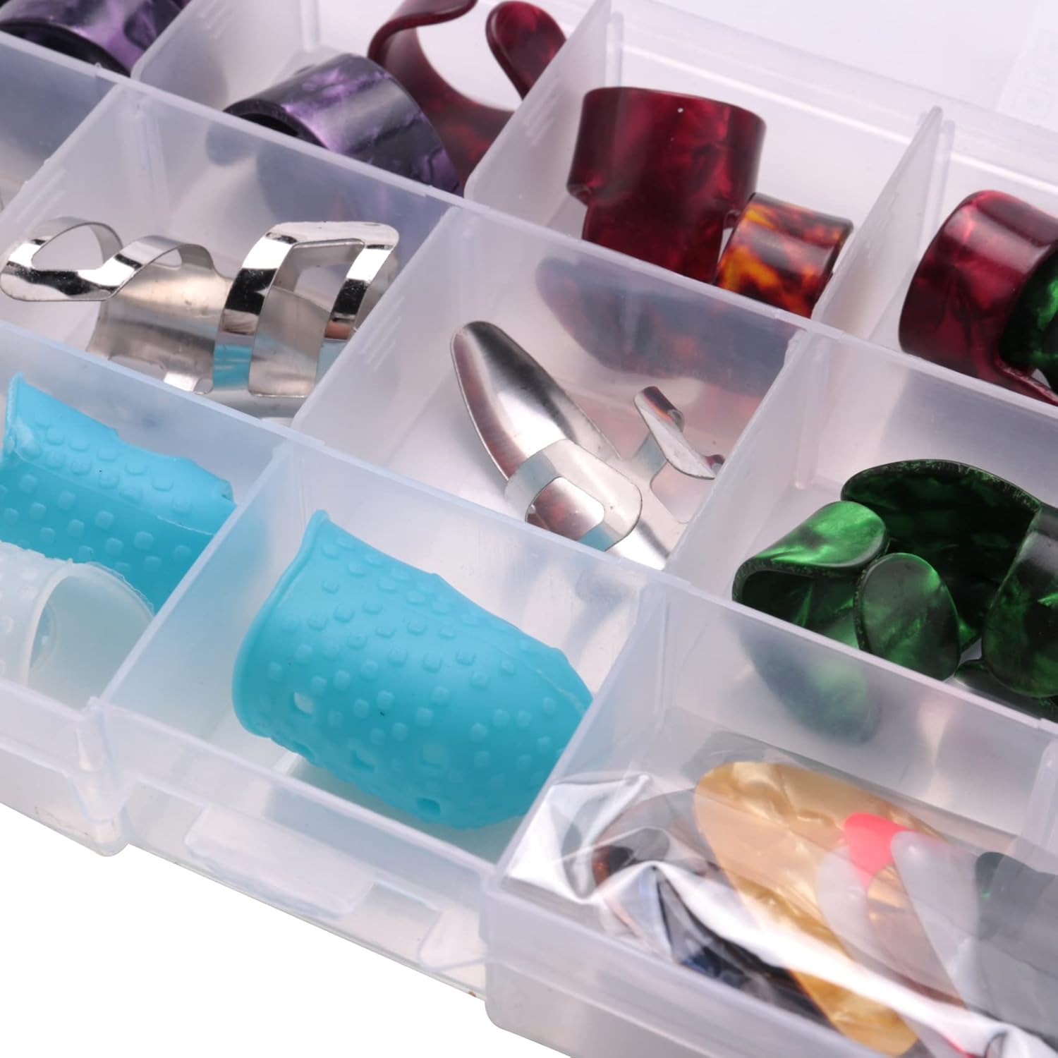 [PELLS DI CHITARRA CELLULOIDE e COPERTURE DI PROTEZIONE FINGERTIP] - La plettro colorato per chitarra ha bordi lisci, resistenti all'usura, durevoli, leggeri e confortevoli; 8 protezioni per le in silicone sono robuste e resistenti allo strappo, in di offrire un'esperienza di morbidezza. [AMPIO USO] - I kit di accessori per chitarra sono adatti per chitarra acustica, chitarra classica, basso, ukulele, banjo, risonatore e altri strumenti a corda; Rilascia le dal dolore e dal callo di suonare la chitarra. Un regalo di compleanno perfetto per il chitarrista. [THUMB e FINGER PICKS] - Esistono scelte per pollice e , possono soddisfare le tue esigenze professionali e suonare la chitarra e proteggere facilmente il tuo dito, sono tutti di dimensioni universali per gli amanti della musica, assicurano un suono e una durata eccezionali. [CONVENIENTE DA TRASPORTARE] - Viene fornito con una scatola di plastica bianca da 1 pezzo per in ordine e in ordine questi accessori per chitarra; Sono tutti in formato mini, molto comodi da via, per spettacolo in qualsiasi momento.