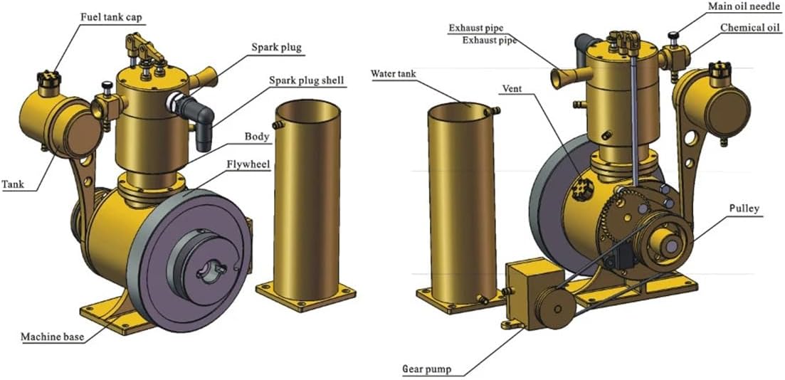 Lavorazione precisa e durevolezza: realizzato in ottone di alta qualità e acciaio inossidabile, il motore M18 offre un'eccellente stabilità e resistenza alla corrosione. La struttura robusta garantisce prestazioni affidabili in diverse condizioni Sistema di raffreddamento ad acqua Stirling avanzato: dotato di serbatoio dell'acqua integrato e pompa di circolazione a cinghia per una dissipazione efficiente del calore, ideale per lunghi periodi di funzionamento e funzionamento stabile anche sotto carichi elevati Design compatto e ad alte prestazioni: nonostante le sue dimensioni ridotte, M18 convince con le sue potenti prestazioni. Montato su una solida base in legno, è ideale per la scrivania, per l'integrazione del modello o come oggetto di visualizzazione meccanica Pronto all'uso e multiuso: completamente preassemblato e pronto all'uso. Supporta sia l'avvio della perforazione che l'avvio manuale per un'esperienza meccanica autentica, ideale per appassionati di tecnologia e modellisti Portatile e flessibile da utilizzare: grazie al design compatto, facile da trasportare – perfetto per mostre di modellismo, laboratori tecnici o uso domestico. Tecnica da asporto per tutti coloro che apprezzano la precisione
