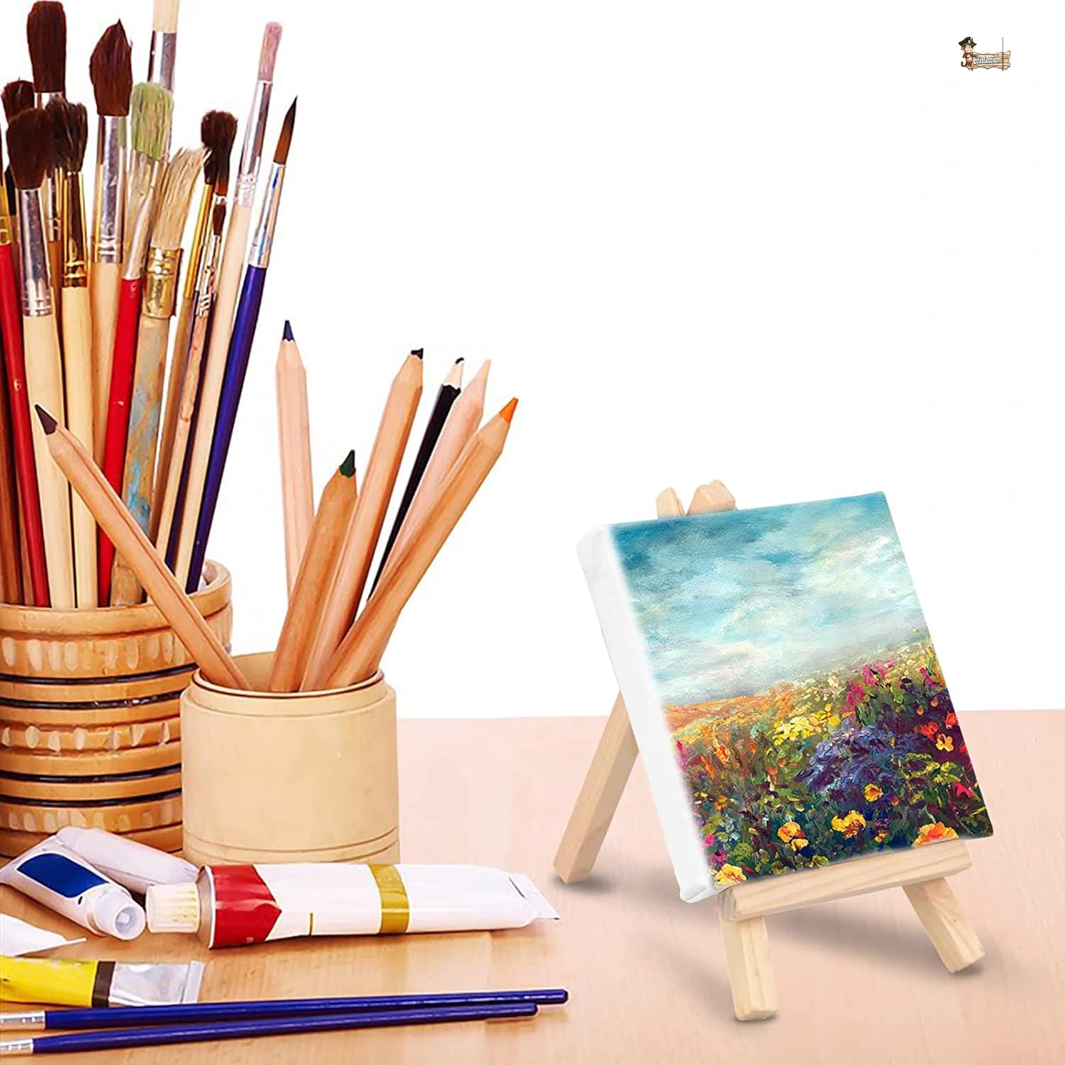 BricoLoco. Kit artigianali, set pittura tela e cavalletto per dipingere 15 x 15 cm. Cavalletto da tavolo. Pittura per bambini e adulti