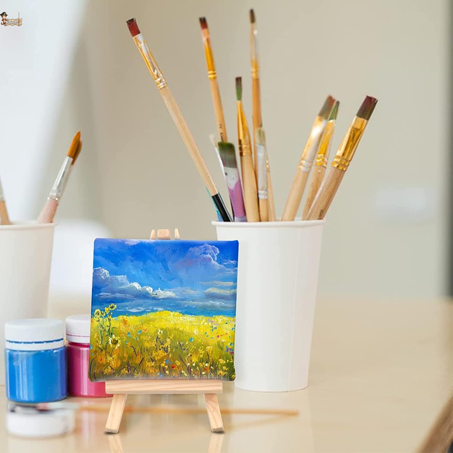 ◆ Set di mini fermaglio con tela 15 x 15 cm. Tela in 280 g/m² realizzata in tessuto di cotone 100% testato sovradosaggio di legno e graffatura per un migliore fissaggio. Indicato per la pittura ad olio e acrilico. Sapete quali sono i vantaggi di dipingere e disegnare? Dipingere e disegnare aiuta i più piccoli a familiarizzare con i colori, promuove anche la creatività, migliora la comunicazione, riduce i livelli dello stress e crea un'atmosfera di divertimento e intrattenimento. ◆ Questo set di piccole tele con cavalletto è indicato per l'uso di pittura a olio, a base d'acqua e acrilico. Possono essere personalizzate utilizzando perline, glitter e ciò che ti succede. I cavalletti possono anche essere tinti, verniciati e verniciati. ◆ Dimensioni: 15 x 15 cm Età consigliata: a partire dai 3 anni.