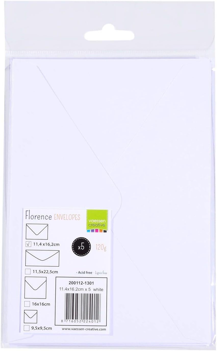 BUSTE VERSATILI: invia i tuoi biglietti nelle buste Florence. Utilizza queste buste semplici per biglietti, lettere, foto e le tue creazioni. Aggiungi versatilità al tuo set di creazione di biglietti FINITURA PREMIUM: Florence ti offre buste dalla finitura liscia e pulita, adatte a ogni occasione. Utilizzabili per progetti creativi, come buste per doni in denaro o per conservare dei semi STRISCIA ADESIVA: queste buste sono dotate di una comoda striscia adesiva, che garantisce la sicurezza del contenuto senza bisogno di colla o nastro adesivo, rendendole ideali per tutti i creativi QUALITÀ DUREVOLE: queste solide buste sono realizzate con carta di alta qualità da 120 g e offrono durata e un aspetto professionale, perfette per documenti importanti o progetti creativi CONTENUTO: questa confezione contiene 5 buste Florence da 120 g bianco in una pratica scatola di stoccaggio, disponibile in formato 11,4 x 16,2 cm (C6). Ideale per tutti i tuoi progetti creativi