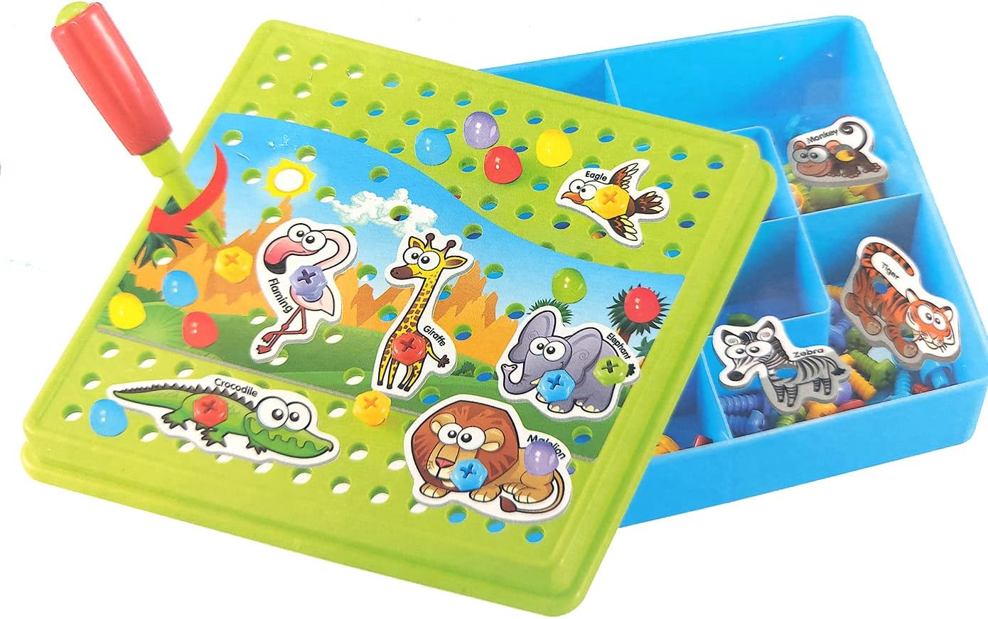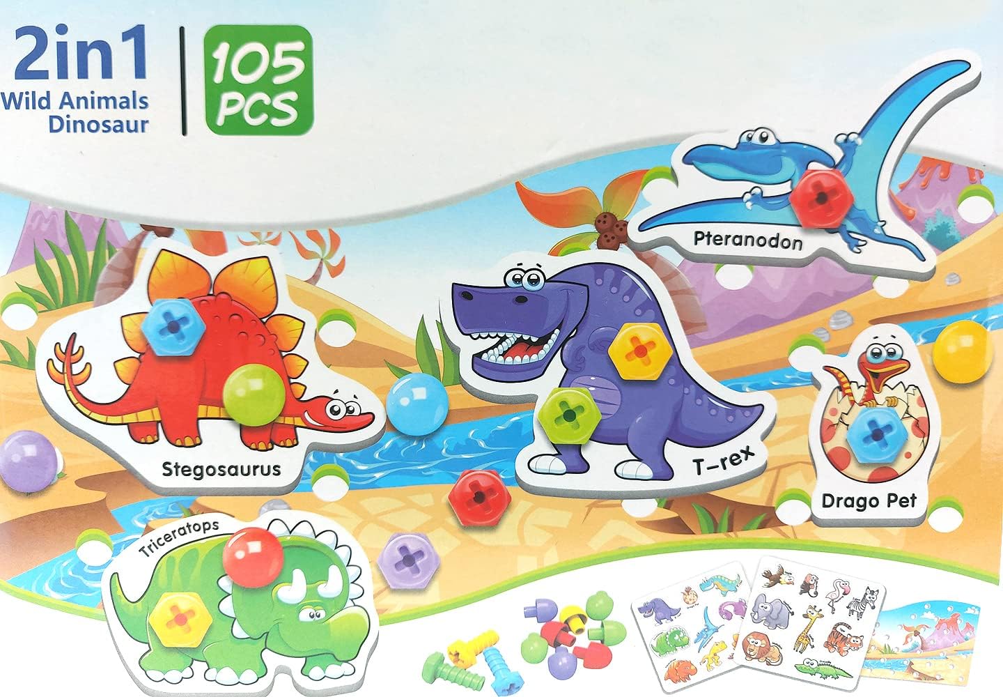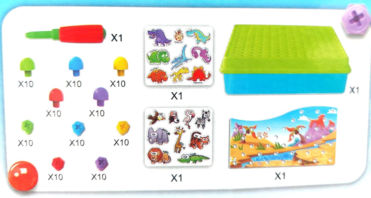 Fantastico set fai da te per i bambini: con questo gioco di motricità 2 in 1 è possibile avvitare sul piatto sia dinosauri che animali dello zoo, proprio come richiedono le vostre idee. Giocattolo ideale per le abilità motorie: crea le tue storie emozionanti disponendo le perline di conseguenza. Custodia per viti e bricolage 2 in 1 con 105 pezzi, giochi per bambini dai 2 anni in su. Gioco plug-in Montessori per promuovere le capacità motorie e il pensiero logico. Gioco da tavolo per bambini con perline plug-in