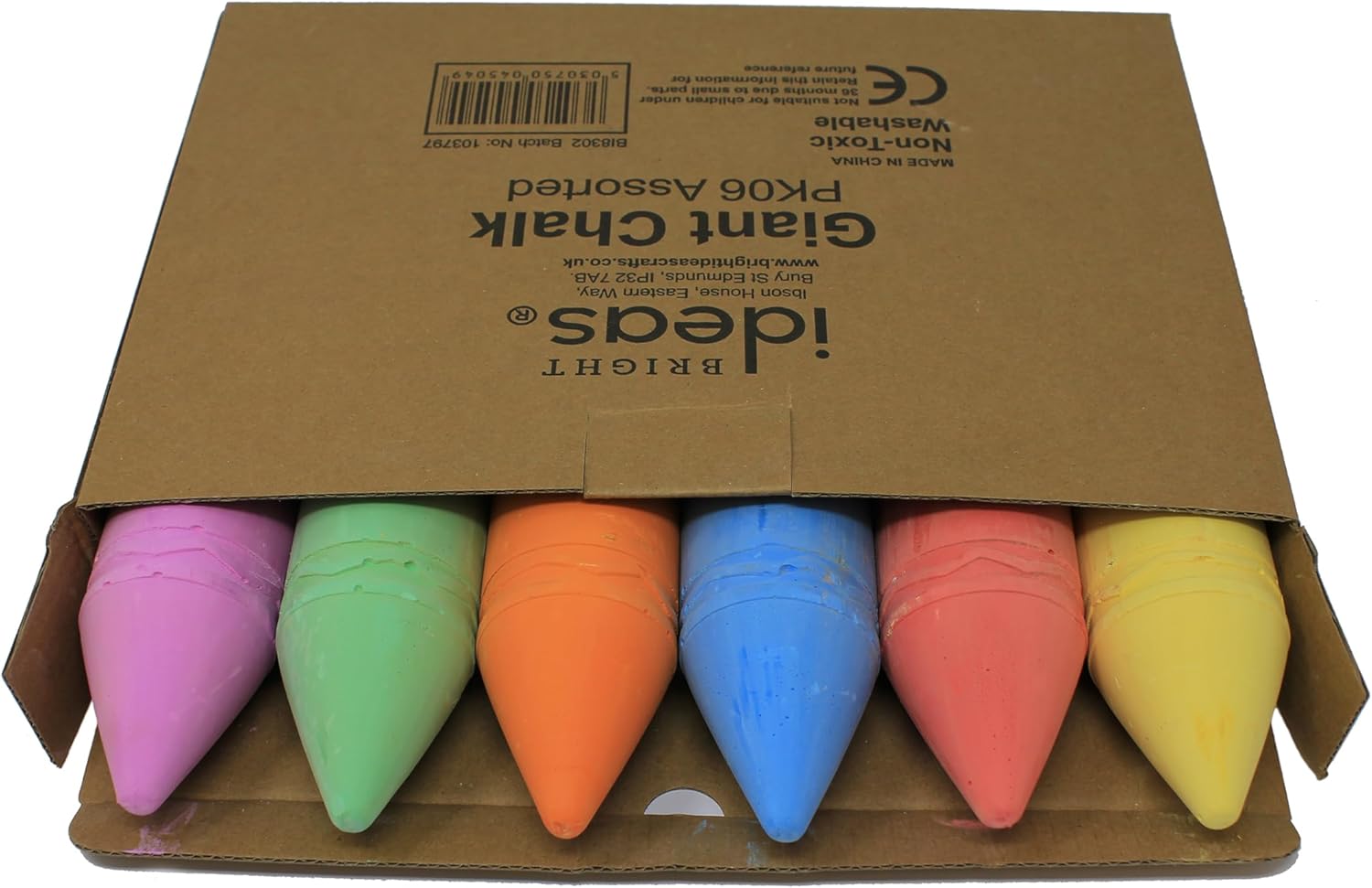 Bright Ideas I gessetti giganti sono forniti in una robusta scatola di cartone semplice per una maggiore protezione da polvere e umidità. Si prega di notare che il colore del prodotto può variare leggermente a causa dell'illuminazione fotografica Ogni bastoncino gigante misura circa 19 cm di lunghezza e 5 cm di diametro per una migliore presa in ogni confezione si ottiene 1 dei seguenti colori: blu, rosso, verde, giallo, viola e arancione Adatto per esterni come il parco giochi, vialetti o marciapiedi. Questi sono anche buoni per lavagne e uso aziendale. Si lava via facilmente, da usare su patio, marciapiedi, vialetti e pareti Ore di divertimento per mantenere i bambini tranquilli e intrattenuti per loro per creare disegni di marciapiedi di dimensioni giganti e giocare come hopscotch - apri la loro immaginazione con disegni colorati Bright Ideas Il gesso è sicuro per i bambini, non tossico e non contiene caseina che è una proteina del latte. Meno polvere e può essere facilmente rimosso con un panno umido o spruzzi d'acqua dopo l'uso dei bambini