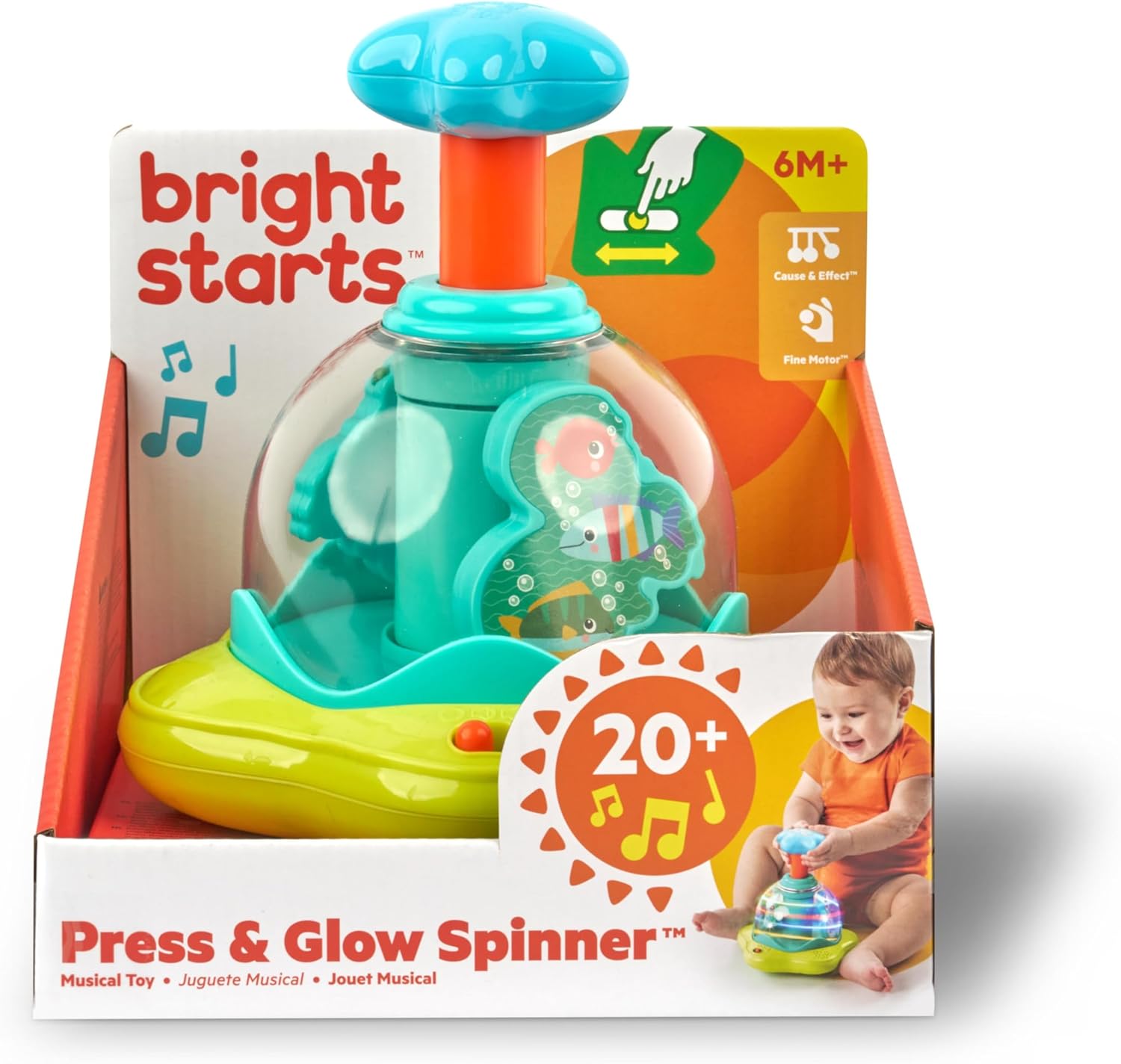 Affascina il tuo bambino con luci lampeggianti e melodie. Premere per attivare la musica e gli effetti luminosi. Permette di apprendere causa ed effetto in modo giocoso e allo stesso tempo allena le capacità motorie.