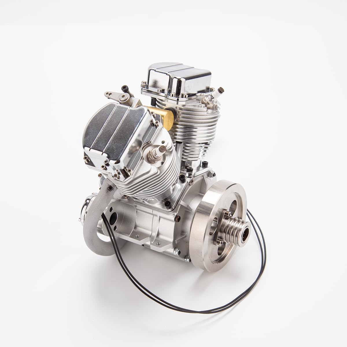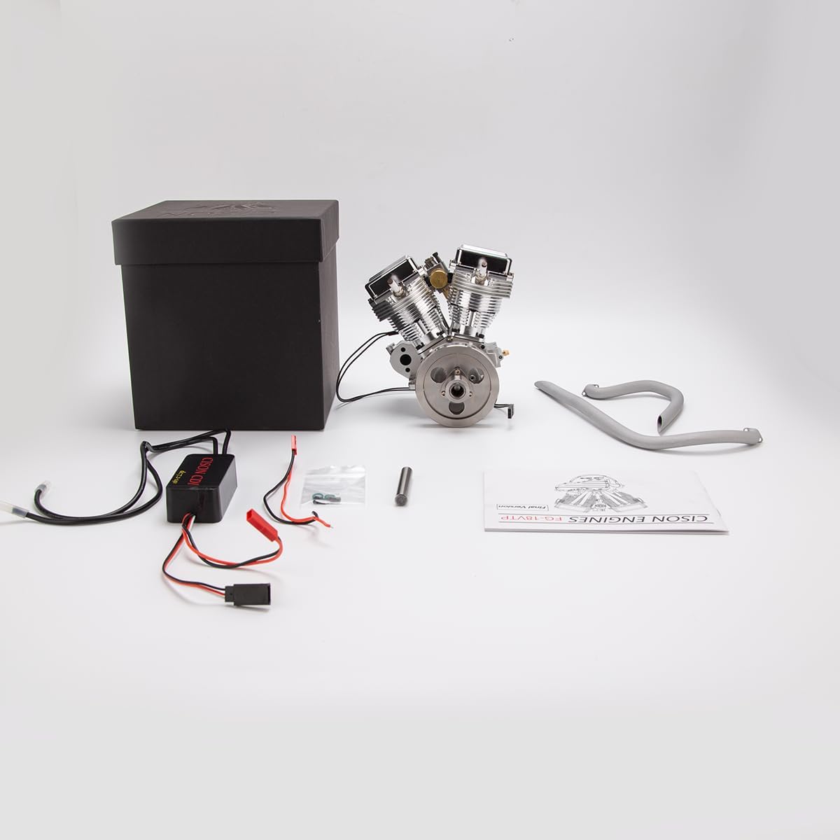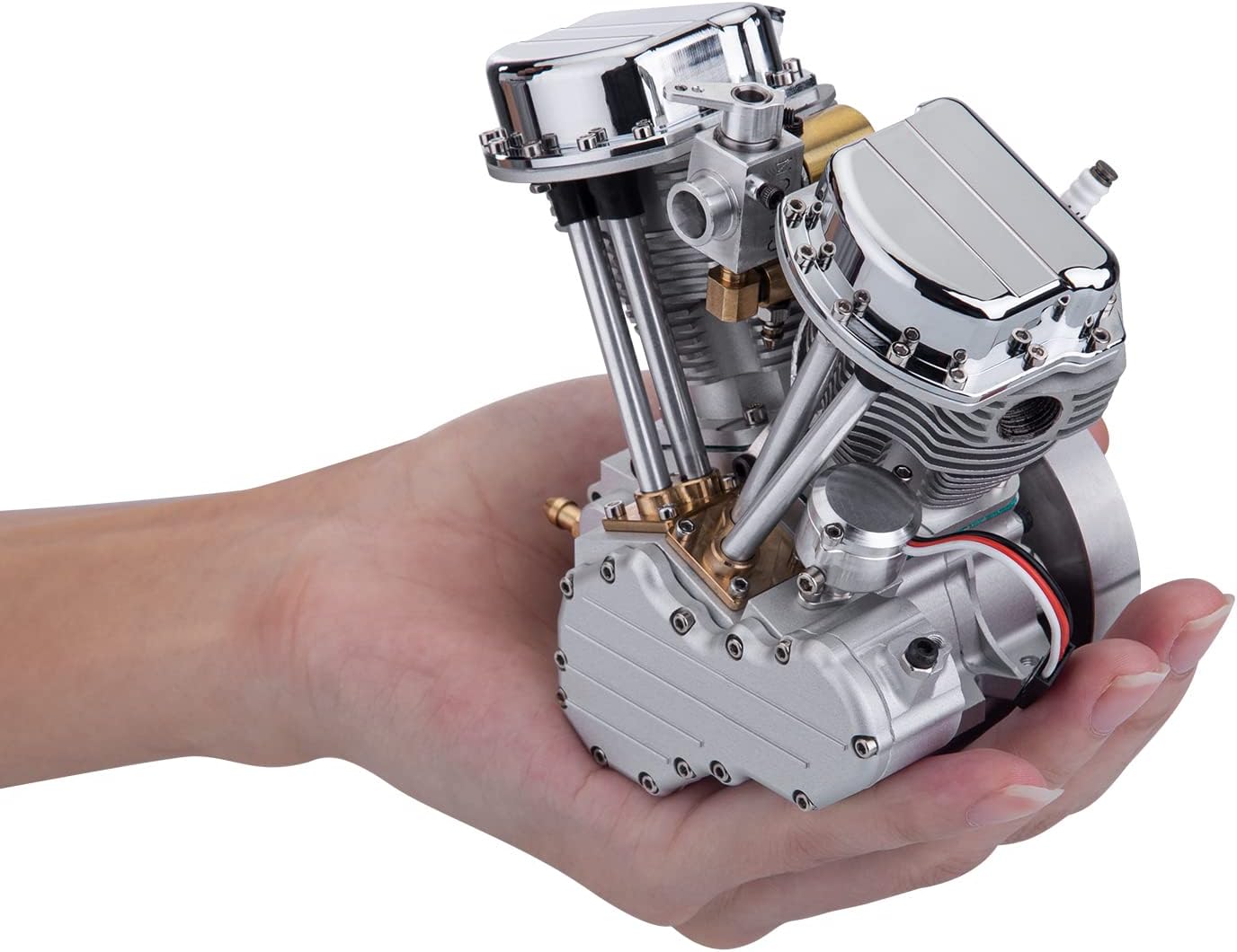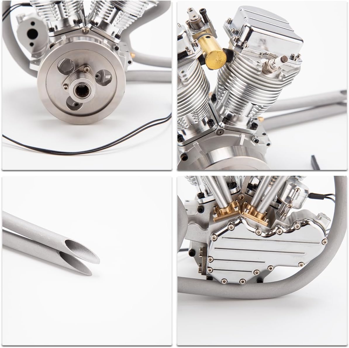 Design realistico ad alto grado di simulazione: il FG-18VTP colpisce per il suo aspetto dettagliato di un classico motore da moto. L'elegante finitura argentata e la caratteristica struttura V-Twin danno un'autentica sensazione di moto in formato miniatura. Perfetto come modello funzionale o come espositore decorativo per collezionisti e appassionati di tecnologia. Controllo valvola OHV di alta qualità per prestazioni affidabili: con un moderno controllo valvola OHV (overhead valve), disposizione dei cilindri a 45° V e due valvole per cilindro, questo modello garantisce un controllo preciso dell'aria/carburante. L'aspirazione separata e la guida dello scarico, combinata con una regolazione fine di leve basculanti e bielle, garantisce prestazioni precise e un funzionamento regolare. Lavorazione eccellente e materiali pregiati: il corpo del motore è realizzato in alluminio lavorato a CNC per una maggiore resistenza. Due collettori di scarico in rame e blocchi cilindrici anodizzati e coperchi per valvole cromati sottolineano l'aspetto di alta qualità. Questo modello di motore non è solo potente, ma anche un vero e proprio colpo d'occhio in ogni collezione. Design raffreddato ad aria per un funzionamento continuo stabile: FG-18VTP è dotato di ampie alette di raffreddamento che consentono un efficace raffreddamento ad aria per garantire la stabilità operativa anche in caso di lunghi periodi. La risposta dell'acceleratore sensibile tramite un singolo carburatore e l'intervallo di velocità di 1800-6000 giri/min offrono condizioni ottimali per applicazioni dinamiche. Versatile e modificabile – ideale per i ventilatori: sia come azionamento RC funzionale, come motore modellino o come elemento decorativo – questo modello convince in ogni modo. Grazie alle numerose possibilità di messa a punto preparate, offre molto spazio per gli appassionati di modifiche. Un regalo perfetto per gli amanti dei motori, appassionati di tecnologia e modellisti con elevate esigenze.